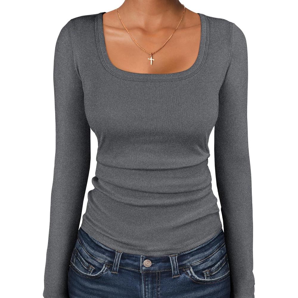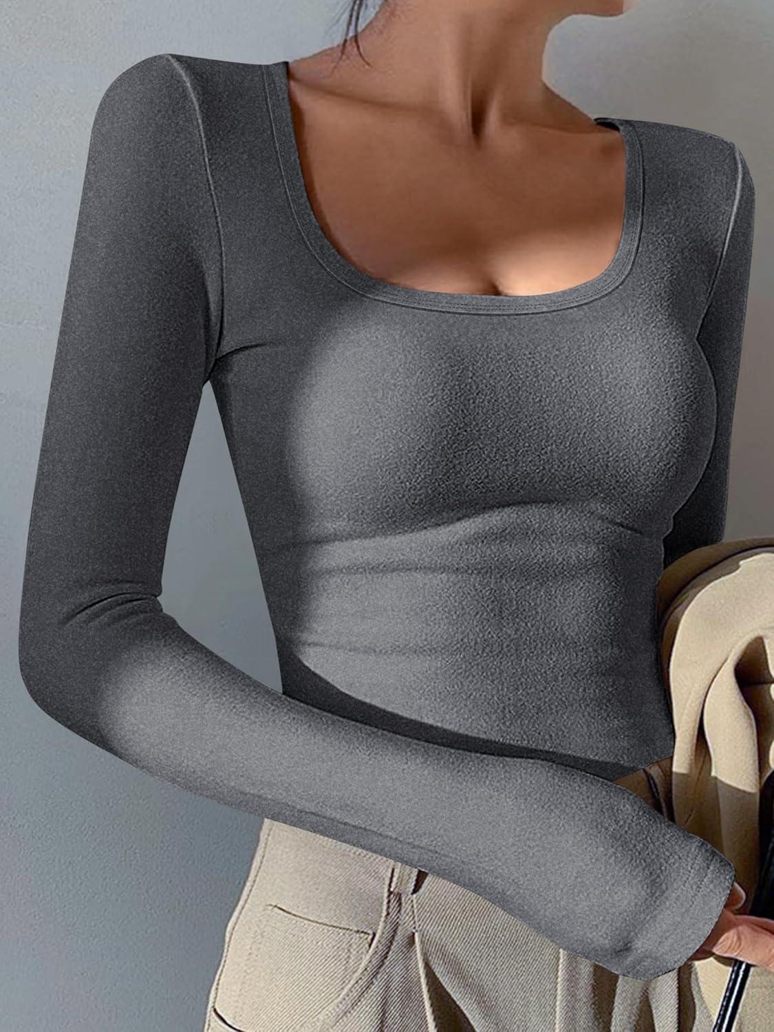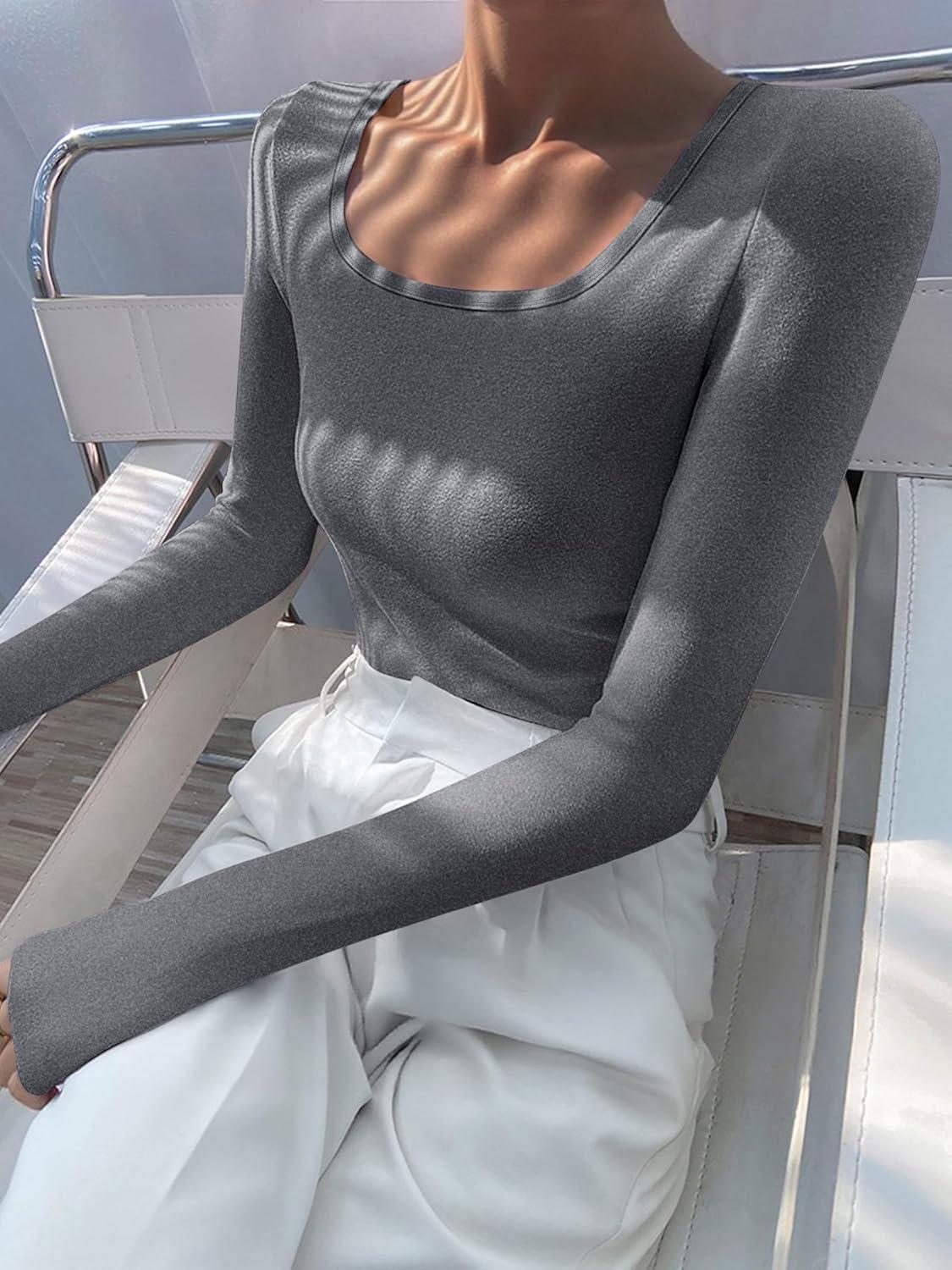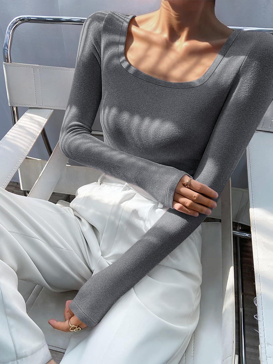 ANRABESS Women Long Sleeve Thermal Top Scoop Neck Slim Fit Fleece Shirts Basic Tee Casual 2025 Fall Winter Warm Undershirts(Dark Grey)