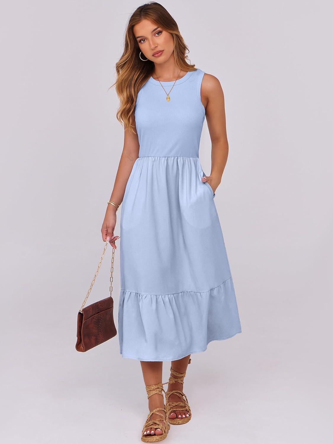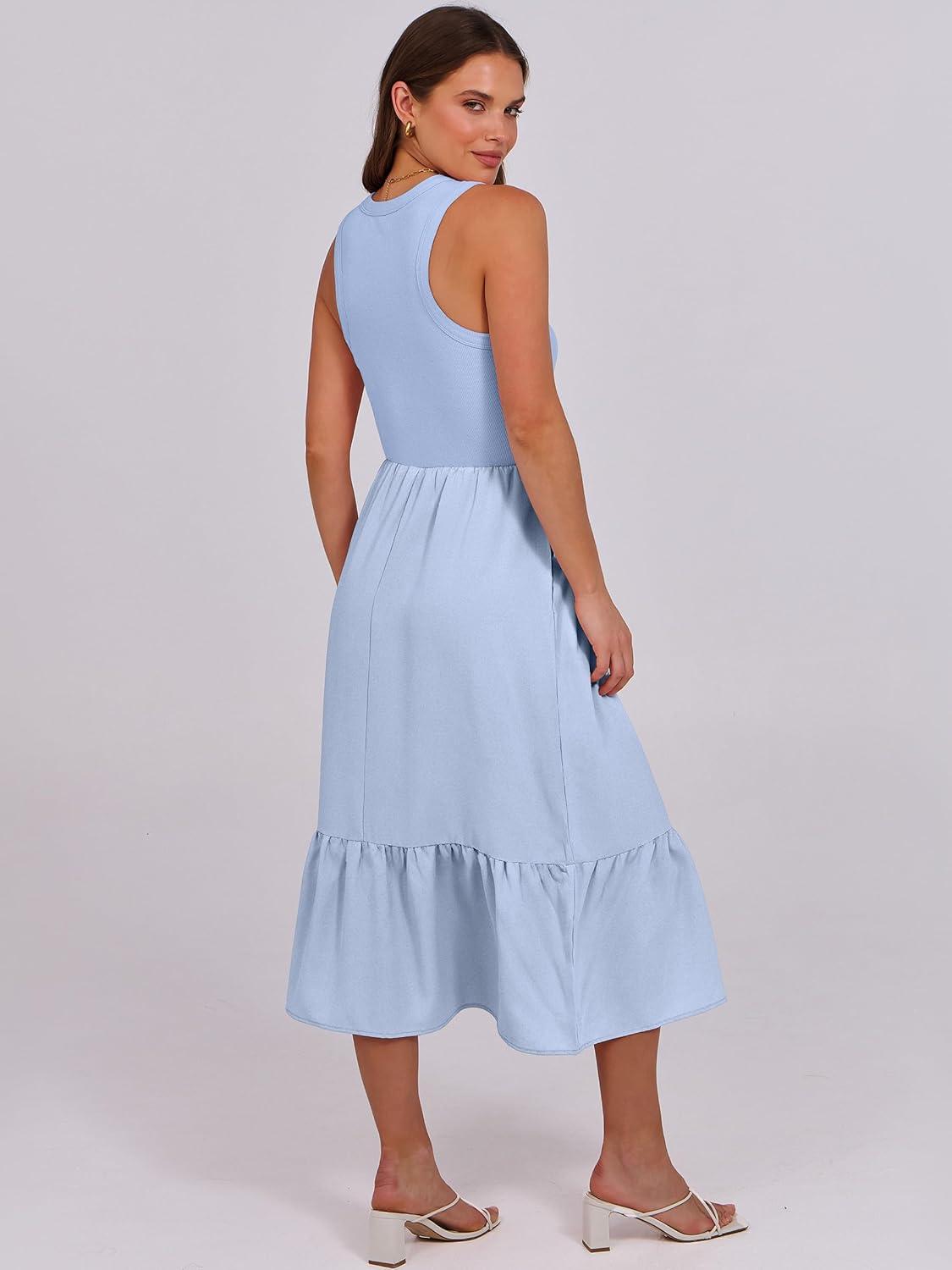 ANRABESS Women Midi Dresses 2025 Summer Casual Sleeveless Sundress High Neck Tank Top Racerback Flowy Beach Dress & Pockets(Sky Blue)