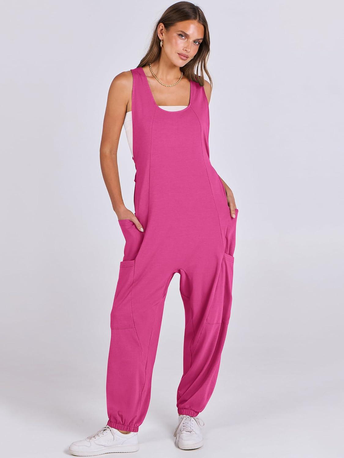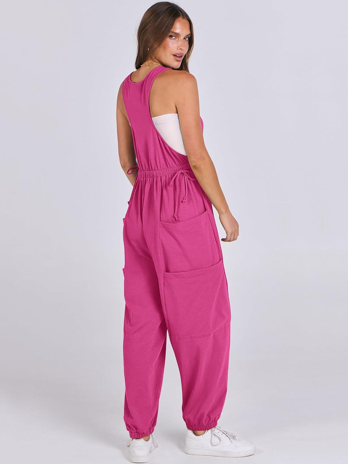ANRABESS Women Overalls Jumpsuits Loose Casual Dressy Sleeveless Baggy Harem Pants Romper Jumpers 2025 Trendy Summer Outfits(Hot Pink)