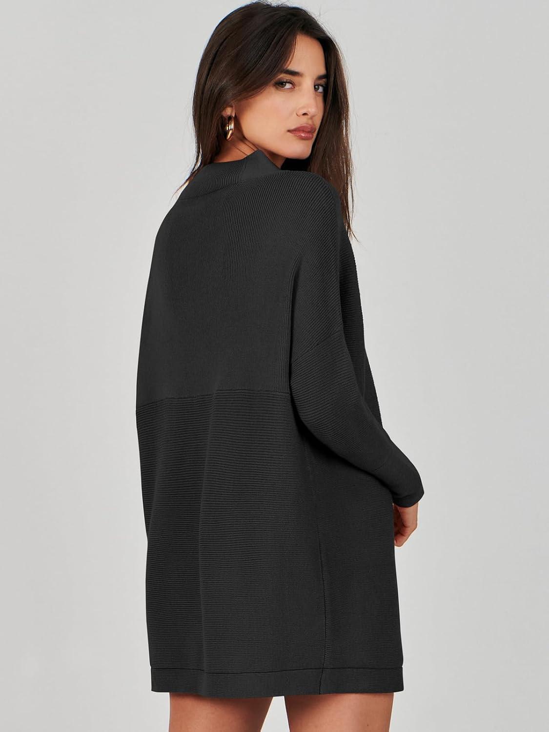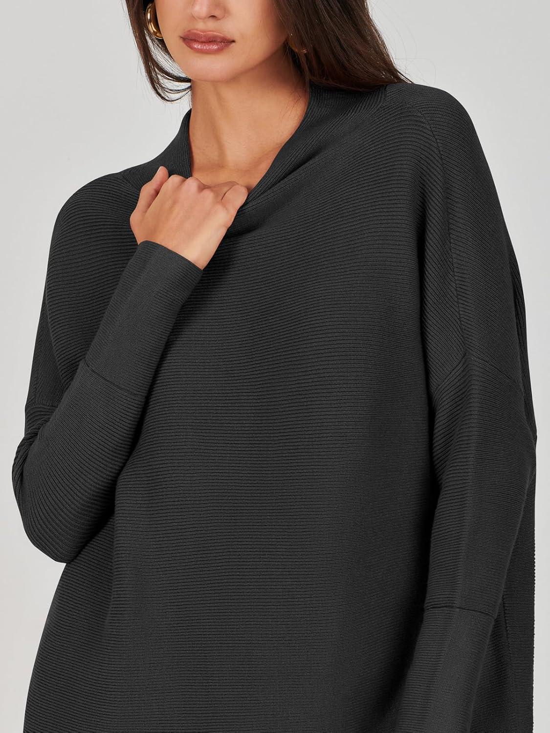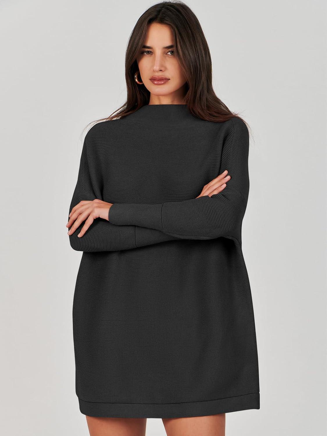 ANRABESS Women Oversized Casual Loose Turtleneck Long Sleeve Slouchy Baggy Knit Tunic Sweaters Pullover 2025 Fall Outfits(Black)