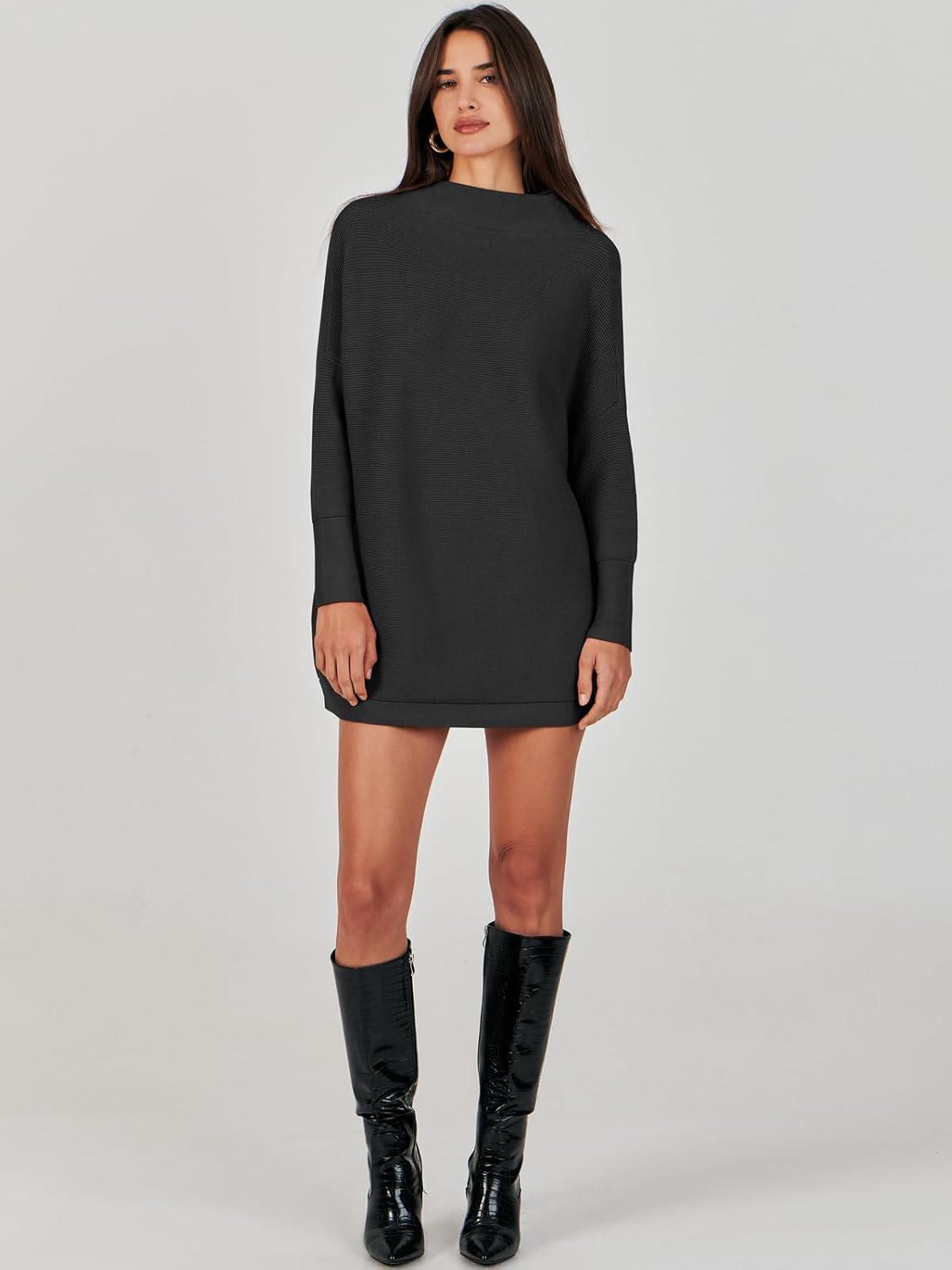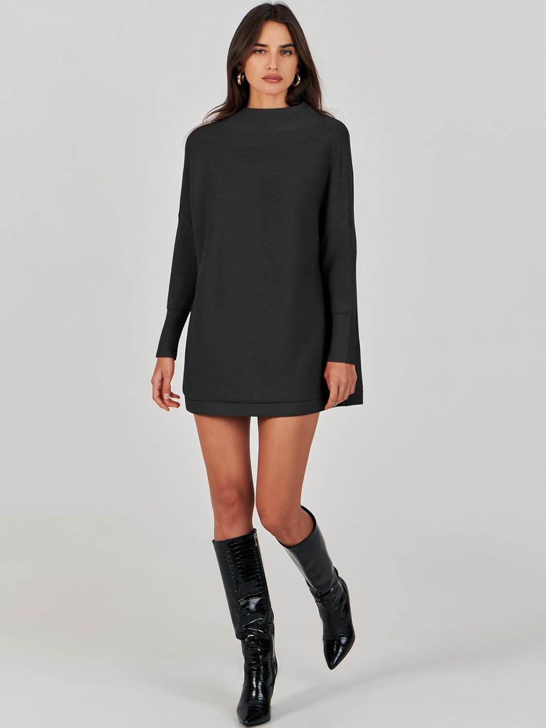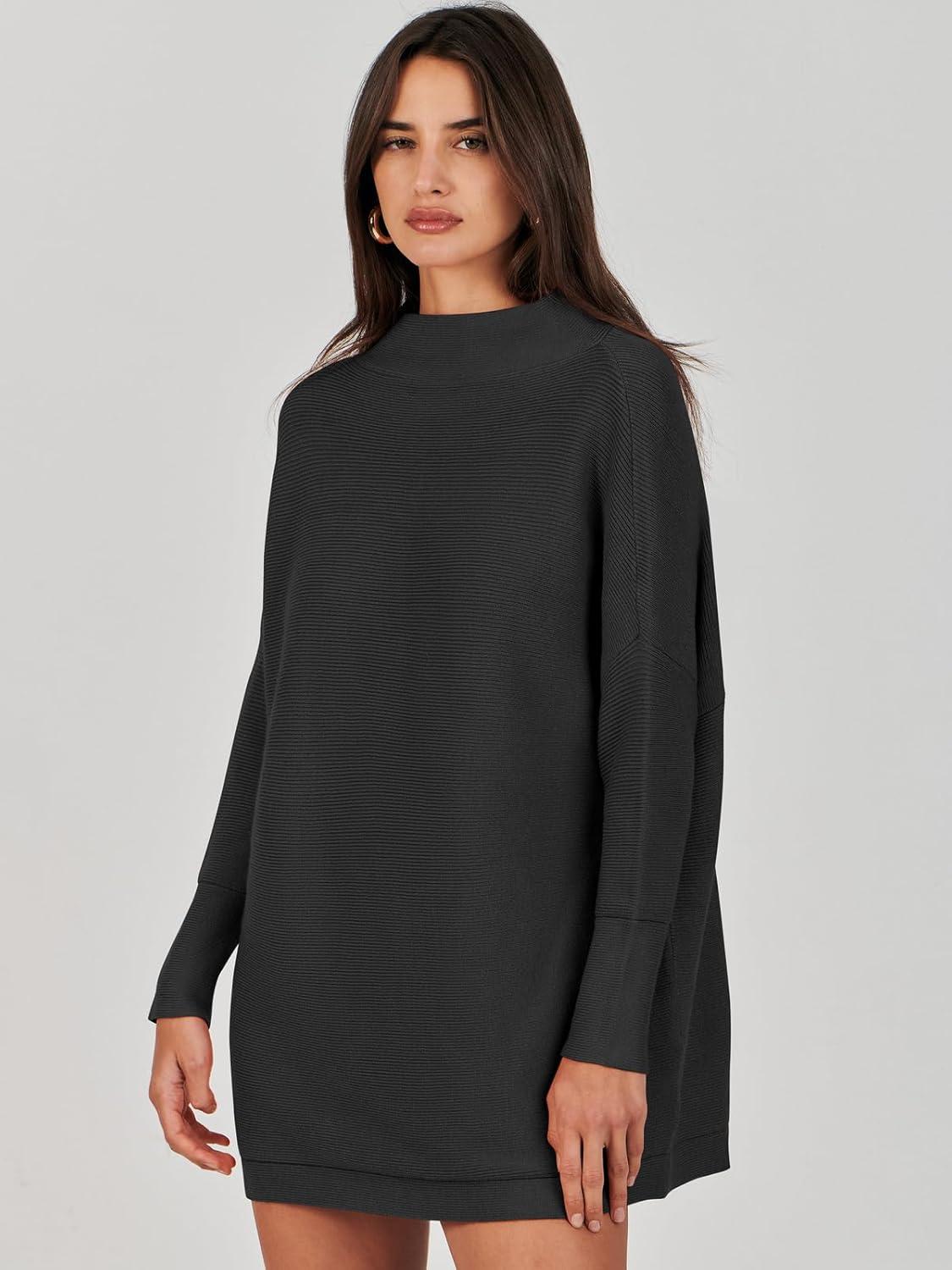 ANRABESS Women Oversized Casual Loose Turtleneck Long Sleeve Slouchy Baggy Knit Tunic Sweaters Pullover 2025 Fall Outfits(Black)