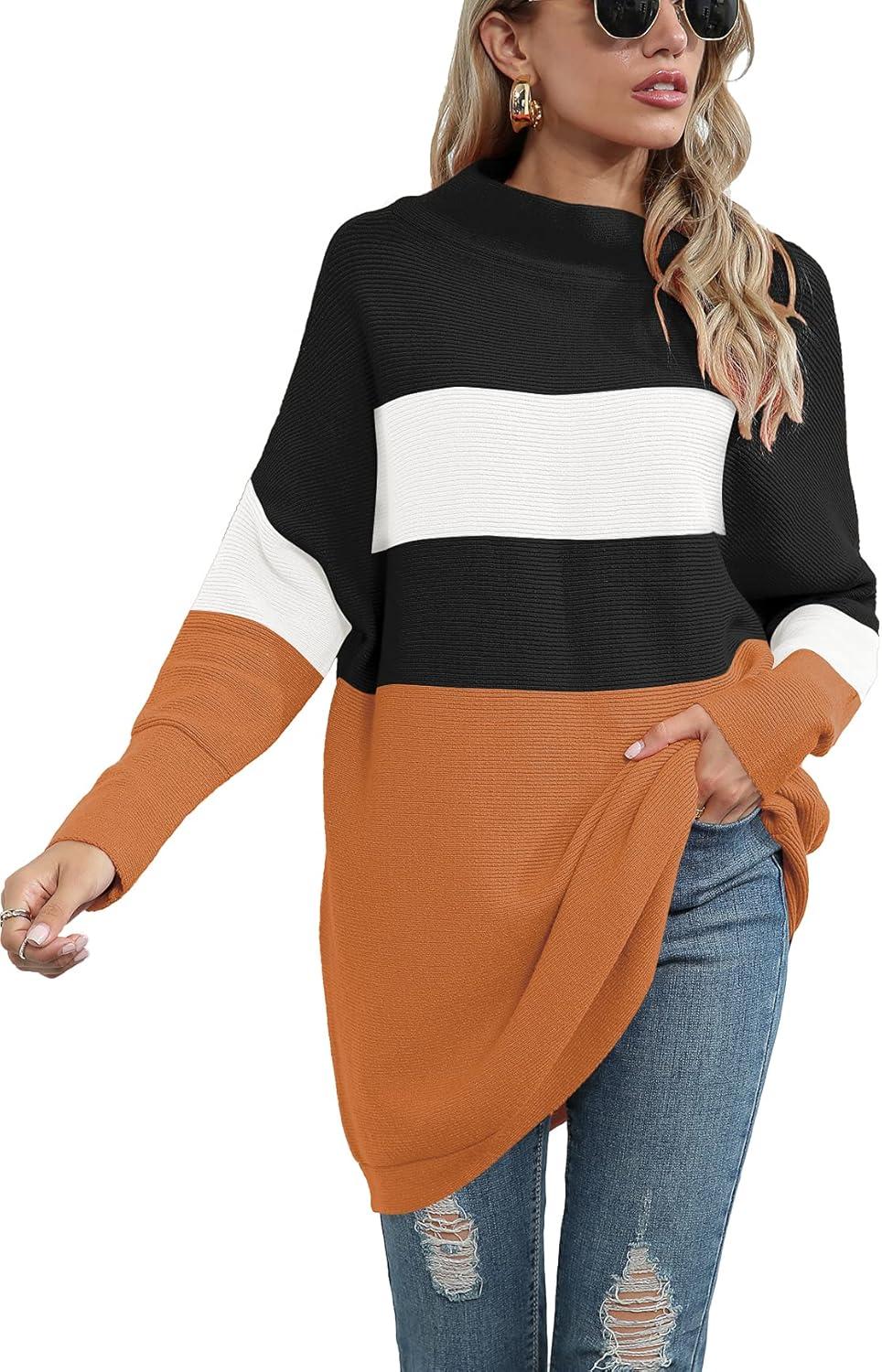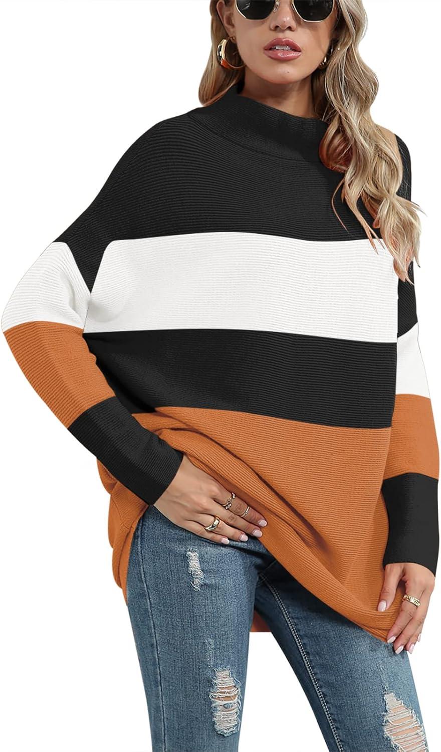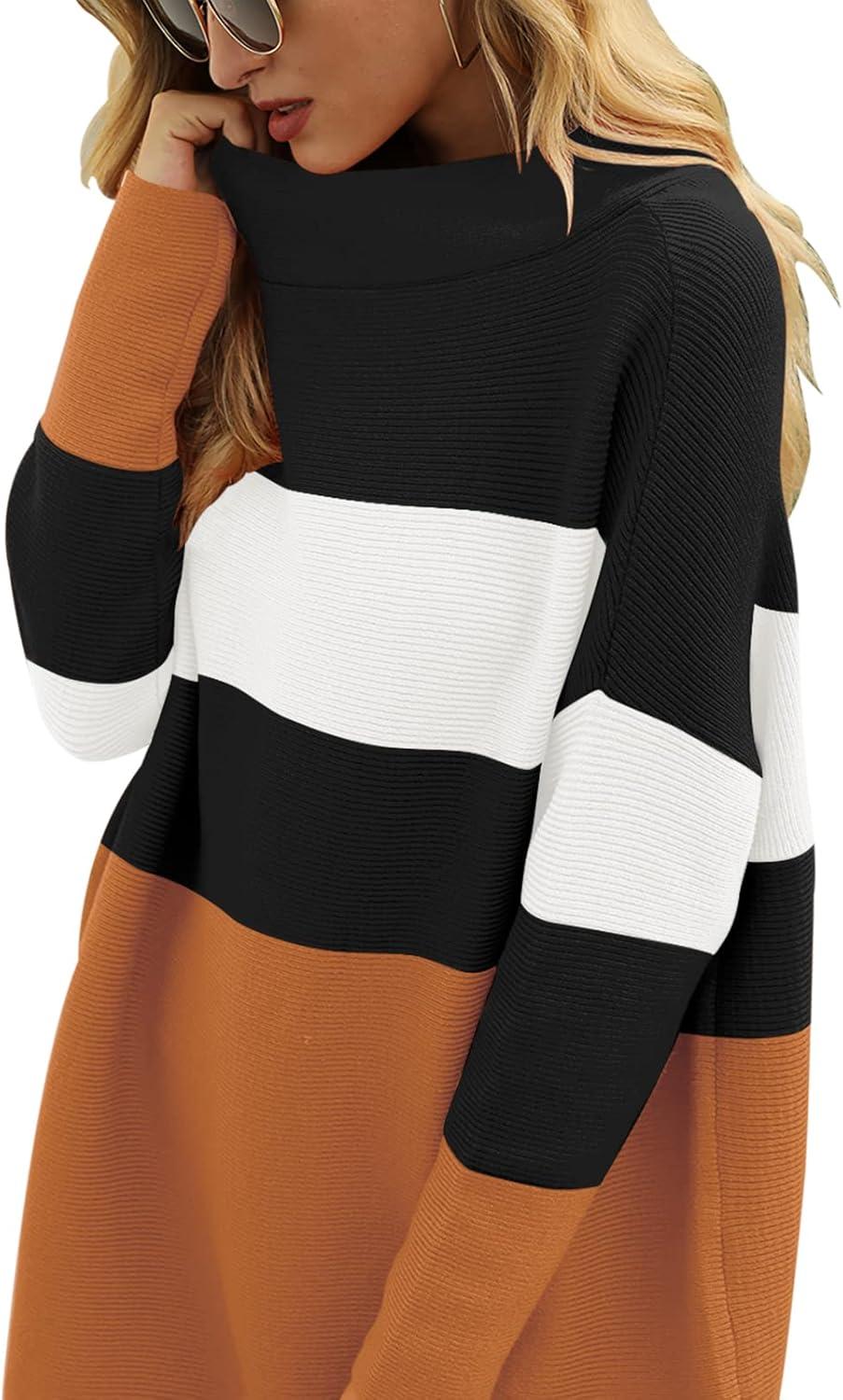 ANRABESS Women Oversized Casual Loose Turtleneck Long Sleeve Slouchy Baggy Knit Tunic Sweaters Pullover 2025 Fall Outfits(Stripe Orange)