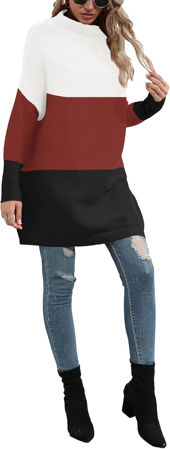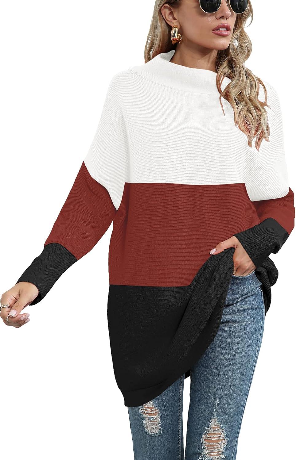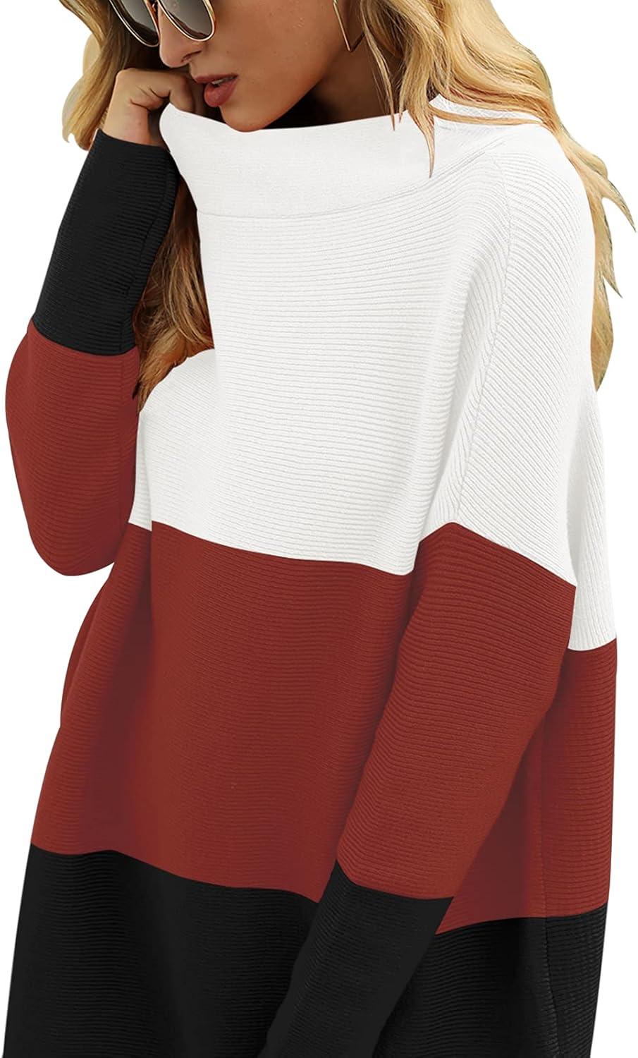 ANRABESS Women Oversized Casual Loose Turtleneck Long Sleeve Slouchy Baggy Knit Tunic Sweaters Pullover 2025 Fall Outfits(White Red)