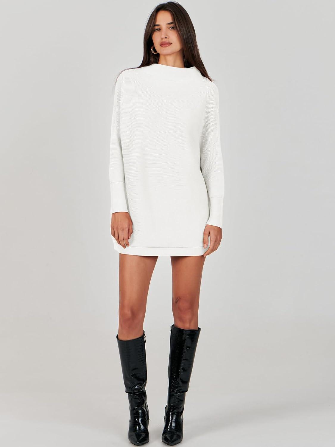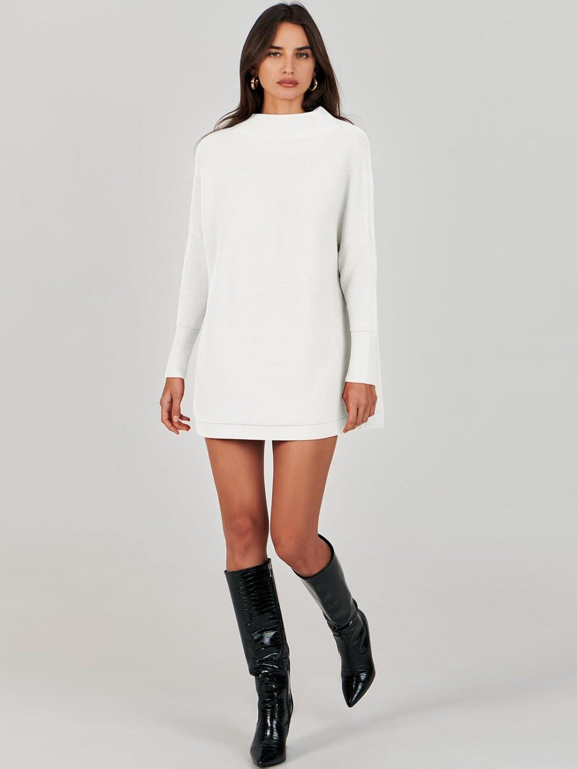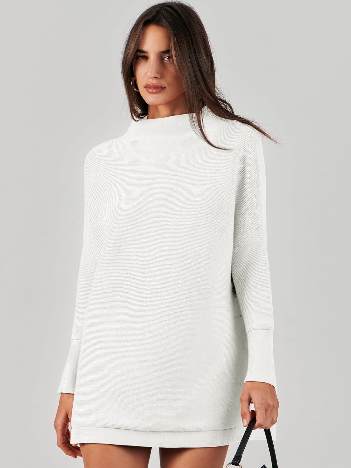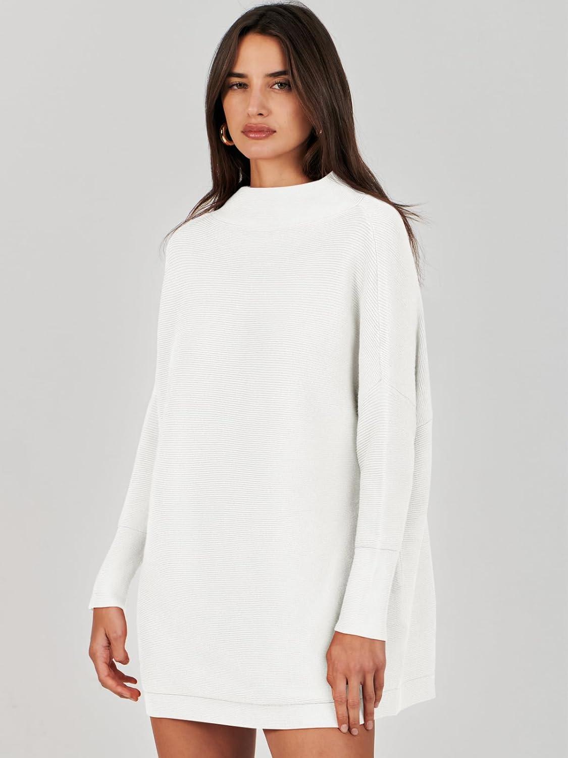 ANRABESS Women Oversized Casual Loose Turtleneck Long Sleeve Slouchy Baggy Knit Tunic Sweaters Pullover 2025 Fall Outfits(White)