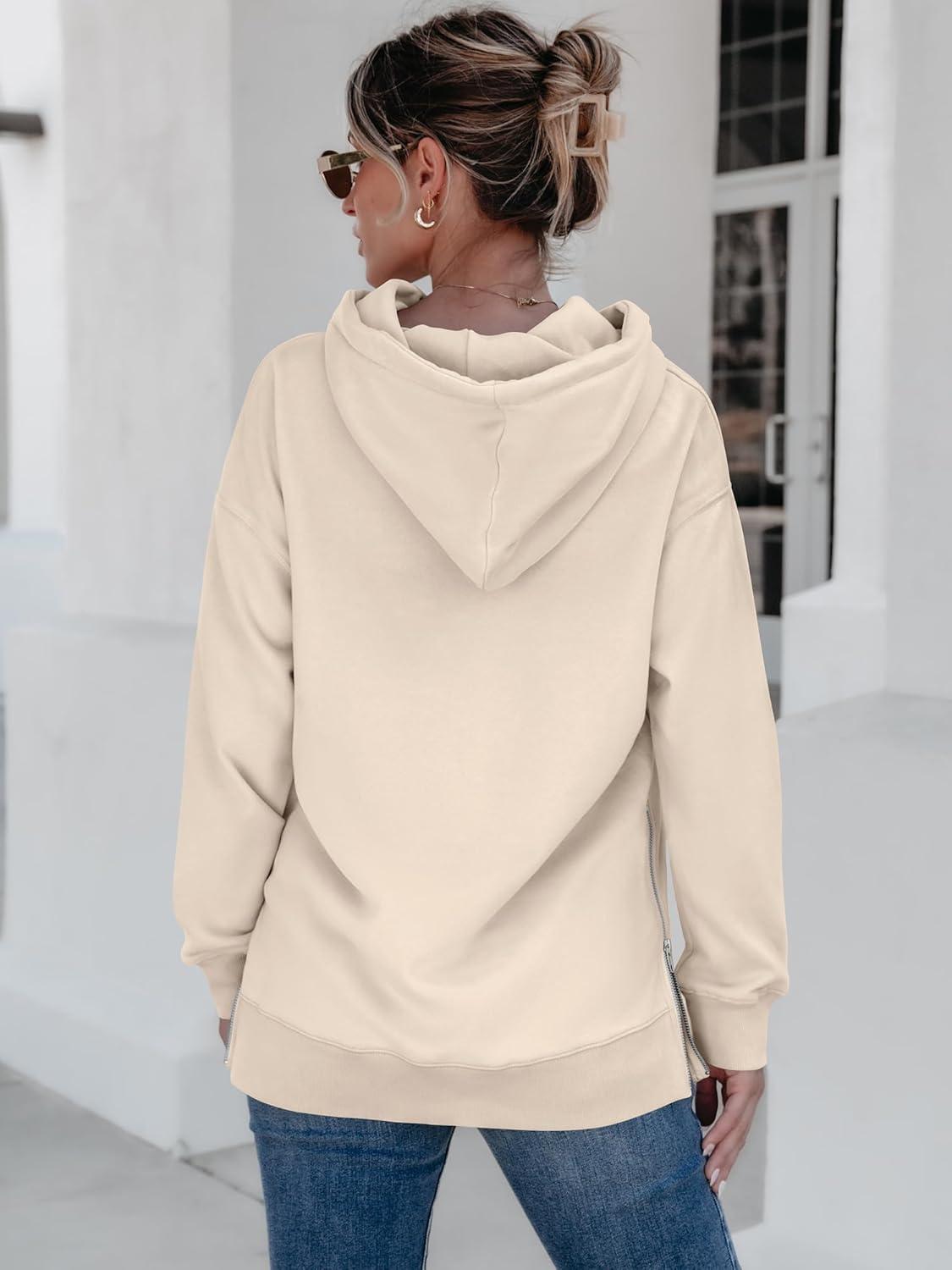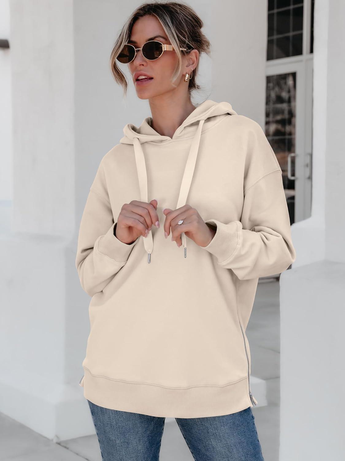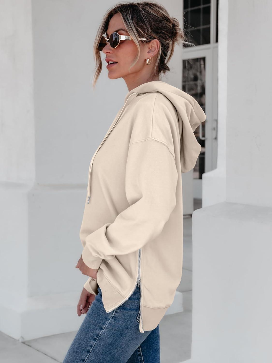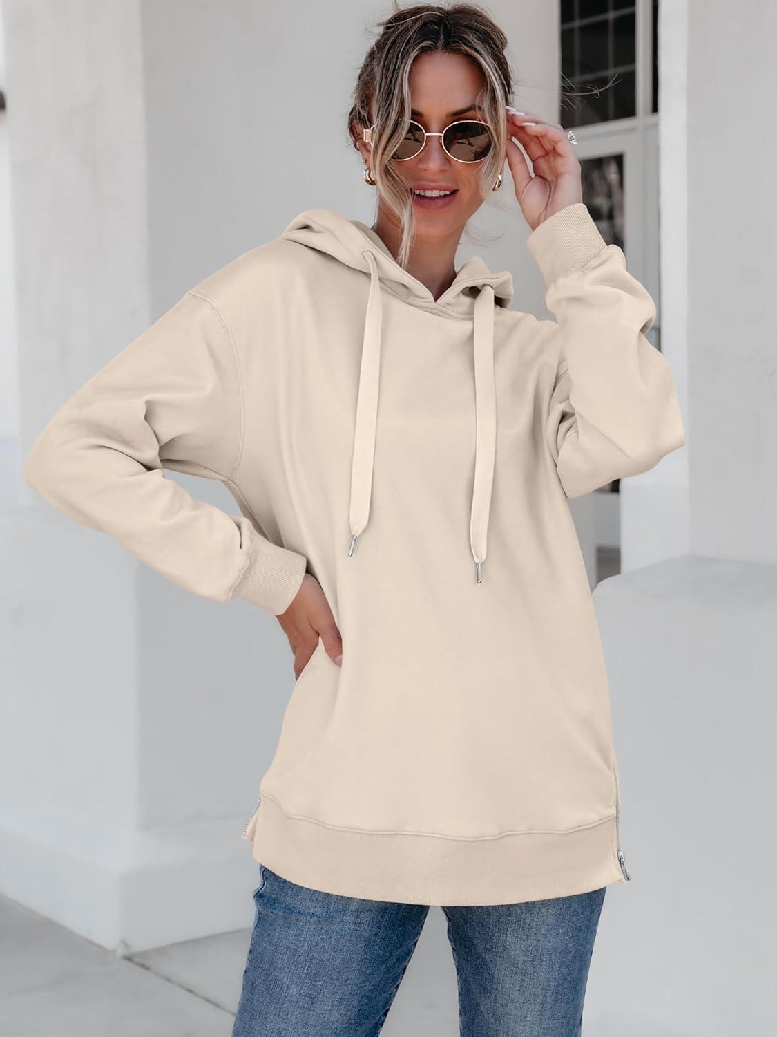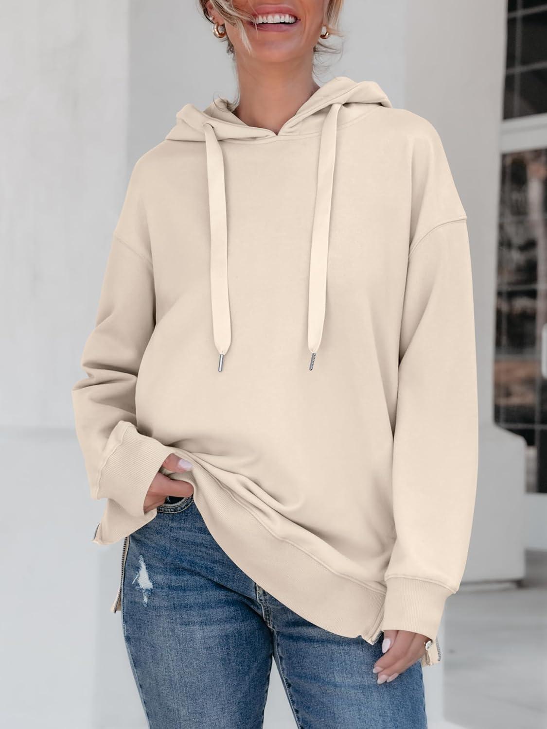 ANRABESS Women Oversized Hoodies Side Zipper Fleece Long Sweatshirts Lightweight Tunic Pullover 2025 Fall Trendy Clothes(Apricot)