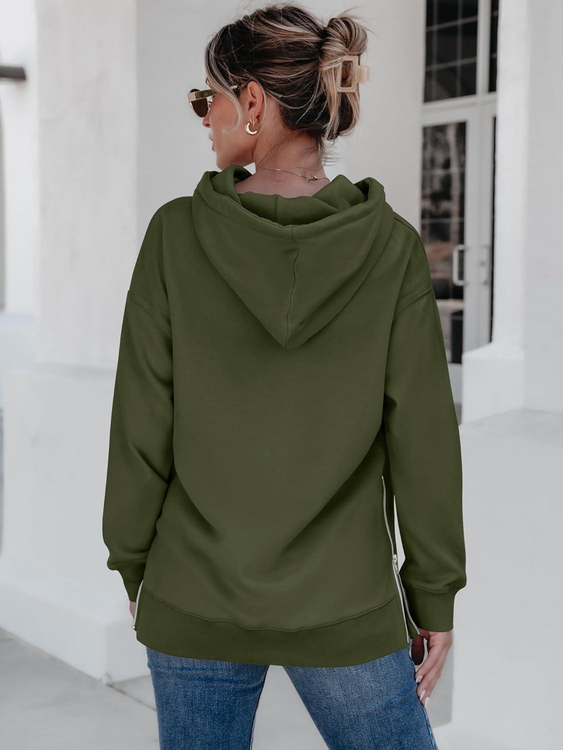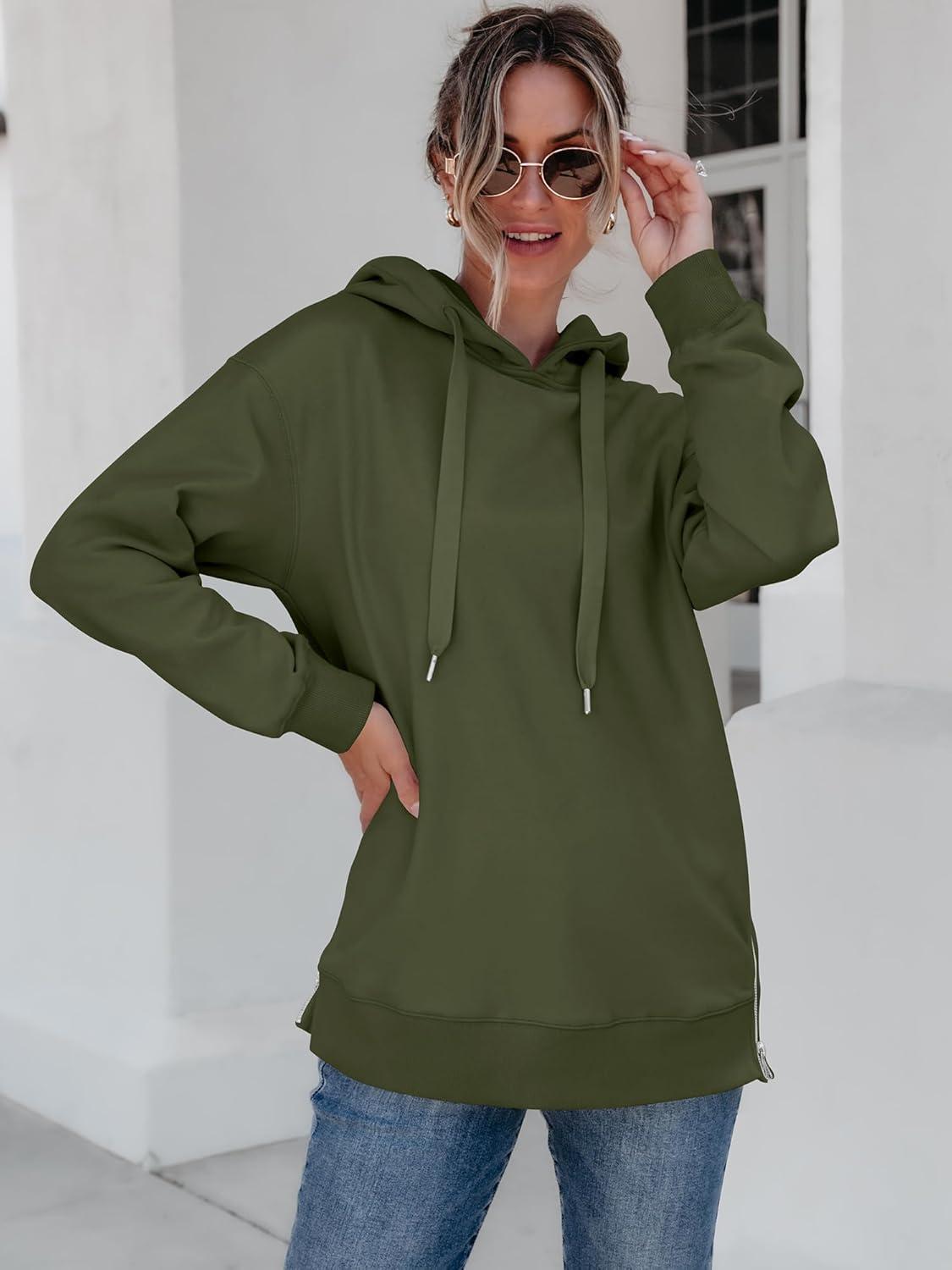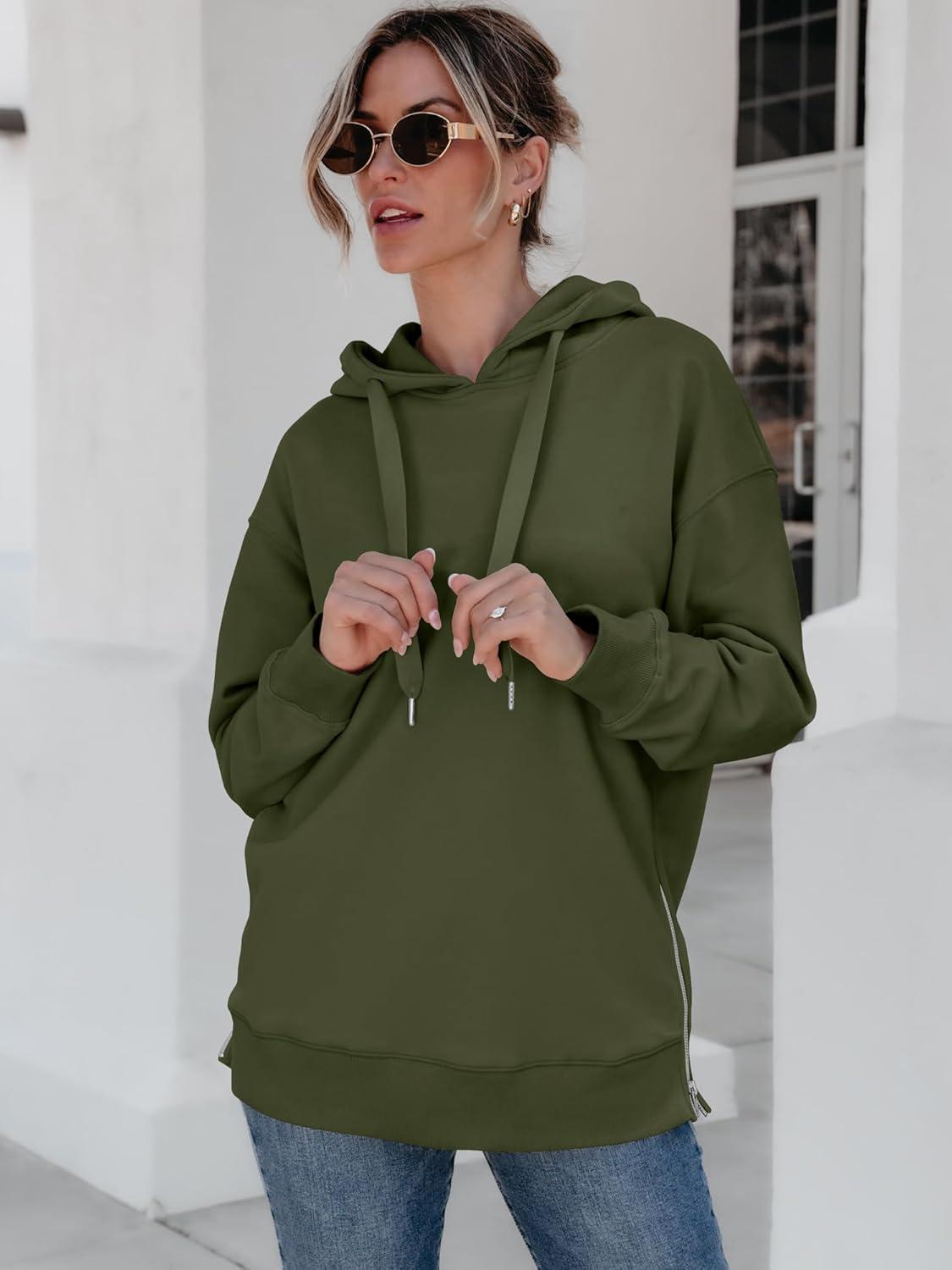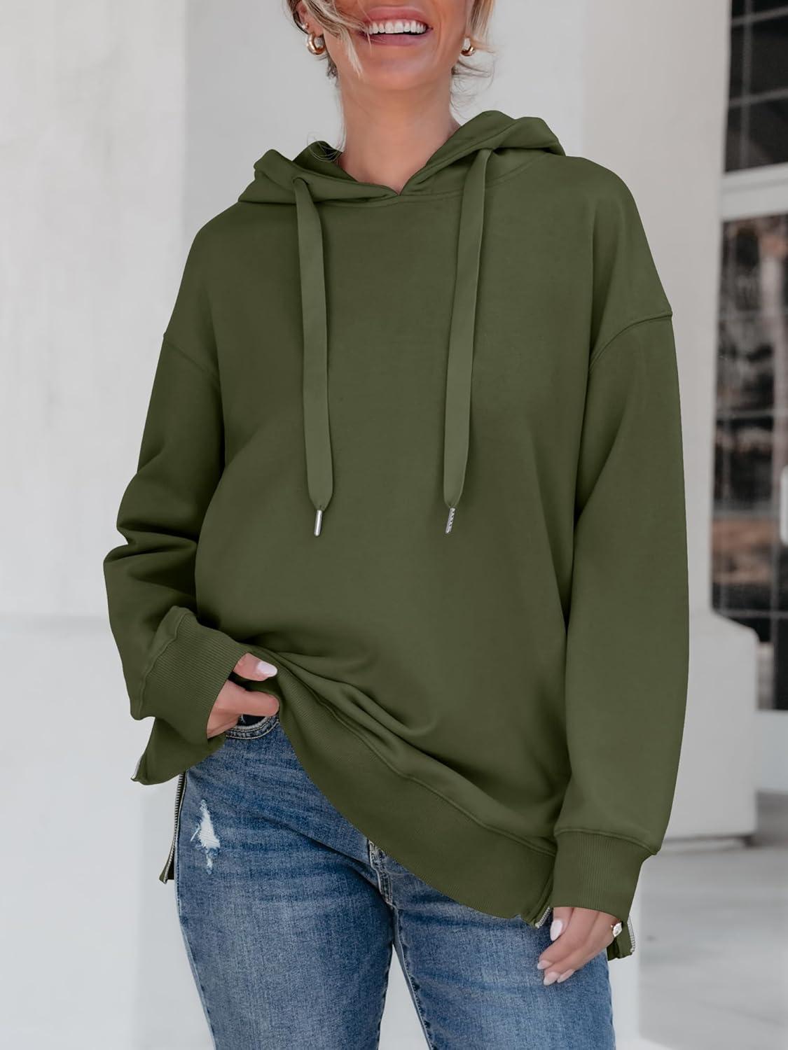 ANRABESS Women Oversized Hoodies Side Zipper Fleece Long Sweatshirts Lightweight Tunic Pullover 2025 Fall Trendy Clothes(Army Green)