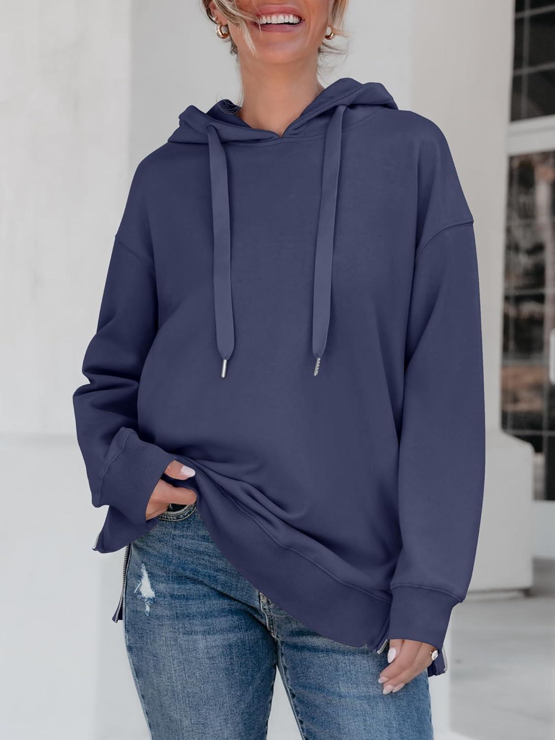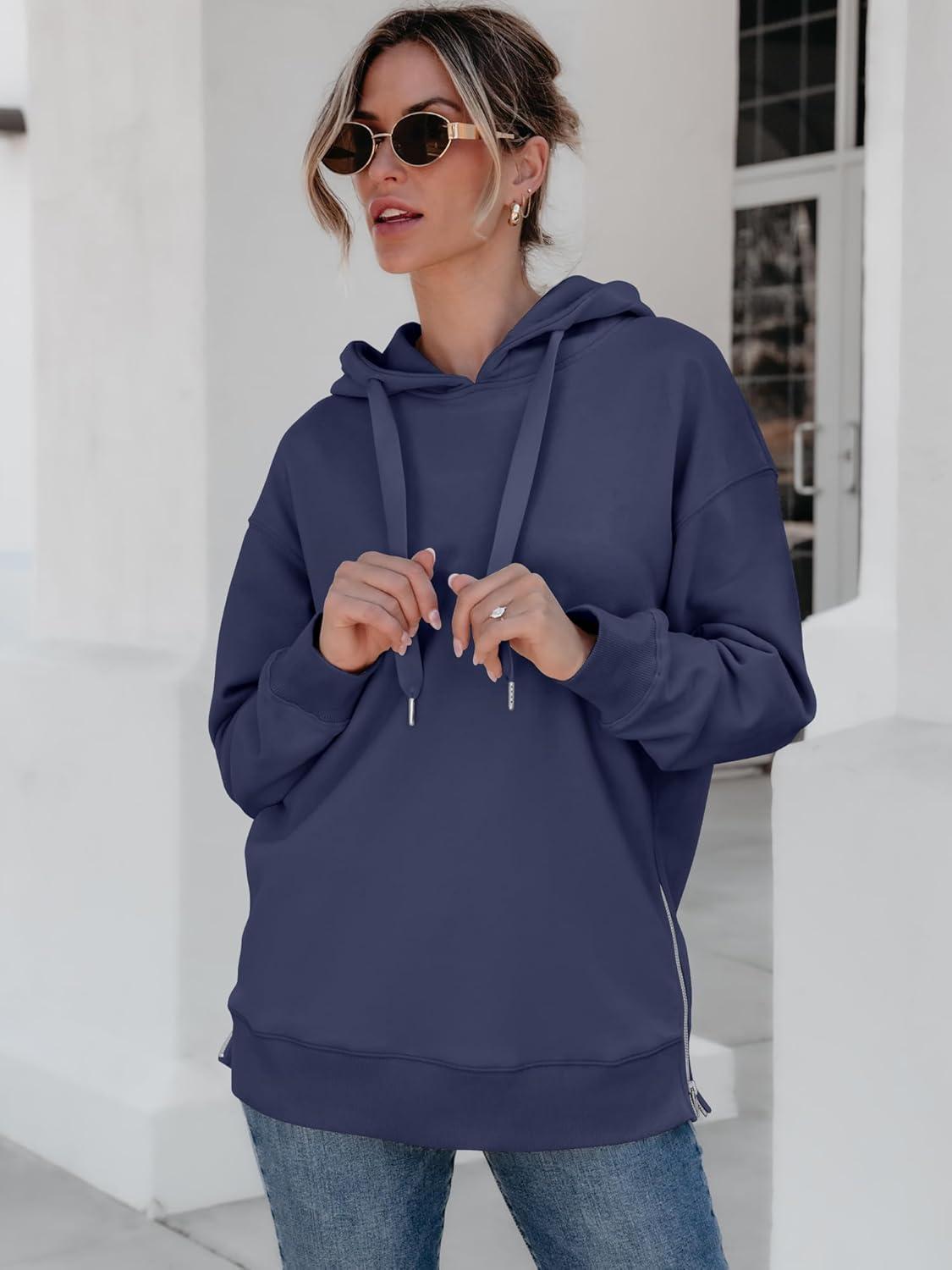 ANRABESS Women Oversized Hoodies Side Zipper Fleece Long Sweatshirts Lightweight Tunic Pullover 2025 Fall Trendy Clothes(Royal Blue)