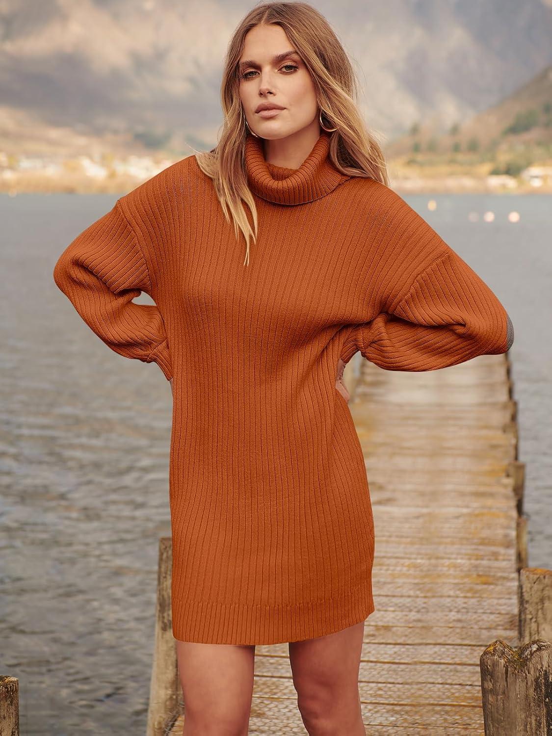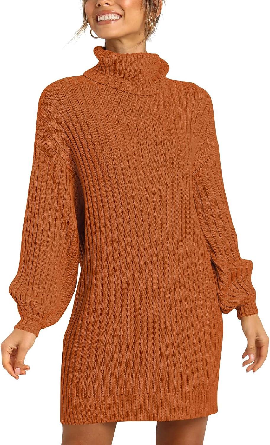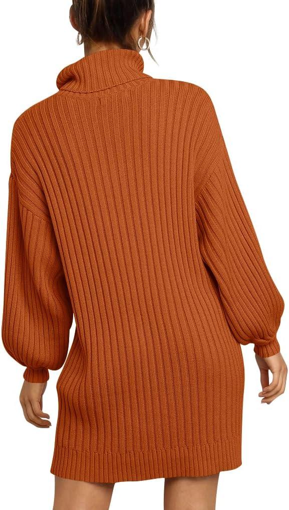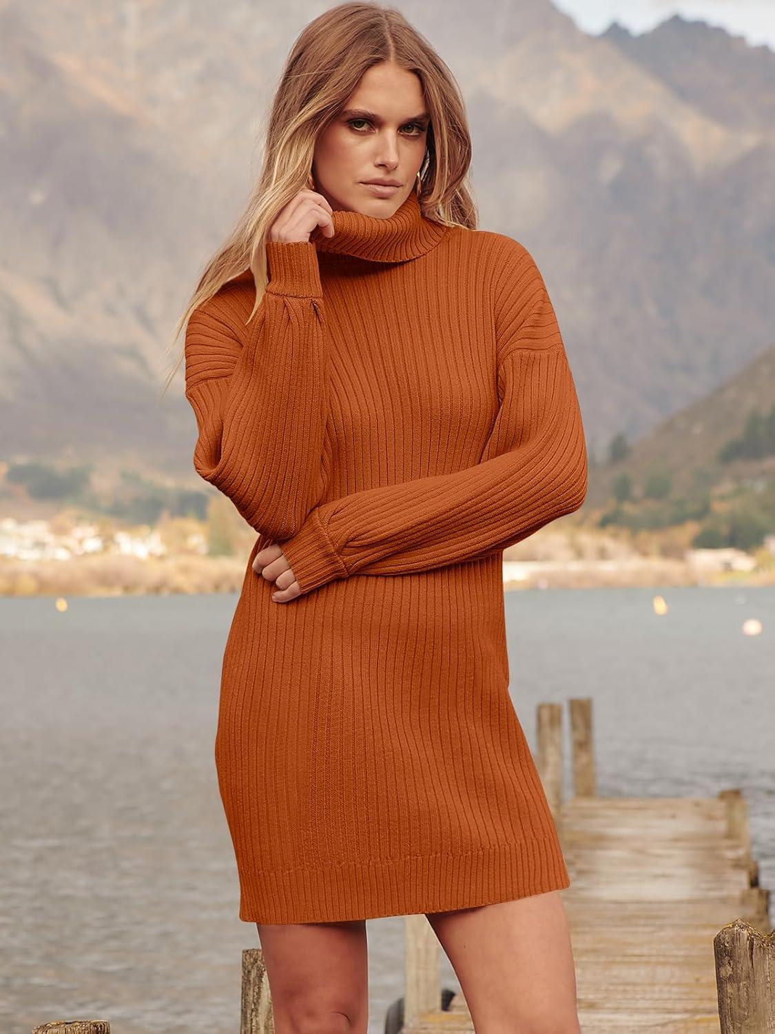 ANRABESS Women Oversized Sweater Dress Turtleneck Batwing Long Sleeve Ribbed Knit Loose 2025 Fall Winter Casual Short Dress(Pumpkin)