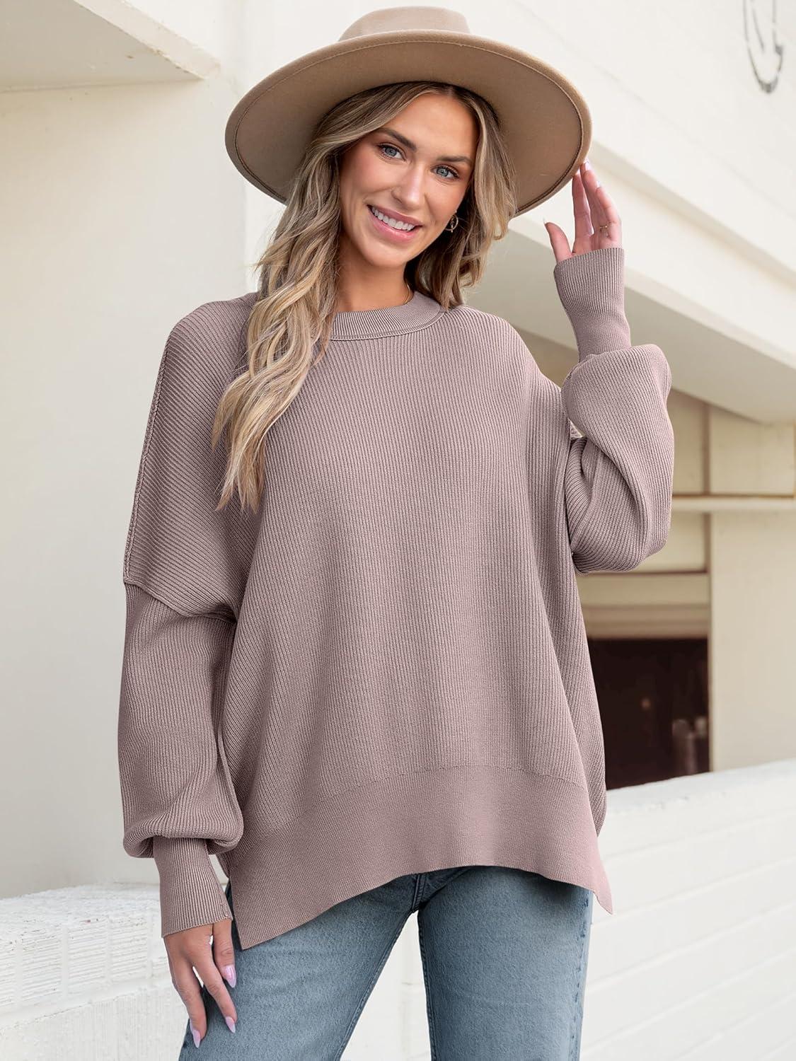 Be the first to review “ANRABESS Women Oversized Sweaters Batwing Long Sleeve 2025 Fall Outfits Crewneck Casual Knit Side Slit Fashion Pullover Top(Pink Apricot)”