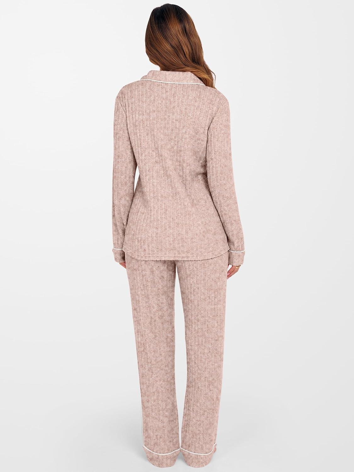 ANRABESS Women Pajama Lounge Sets 2025 Fall 2 Piece Outfits Ribbed Long Sleeve Matching PJ Set Sleepwear Loungewear(Light Brown)