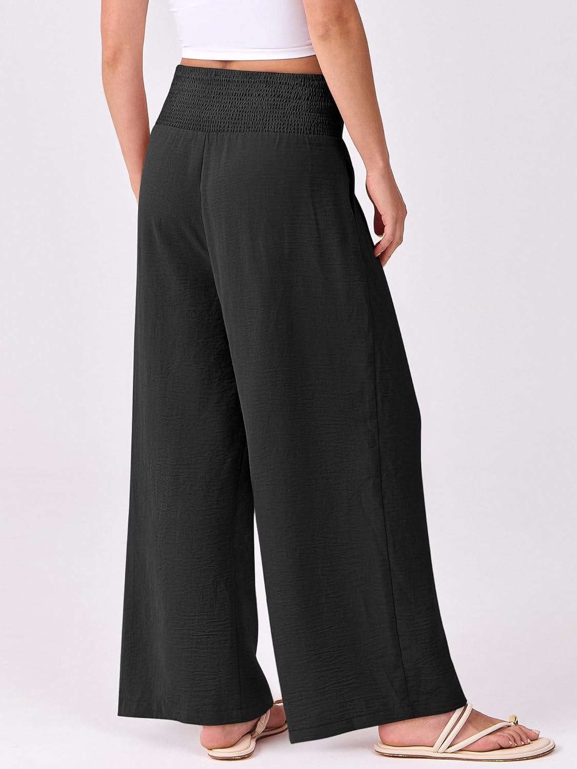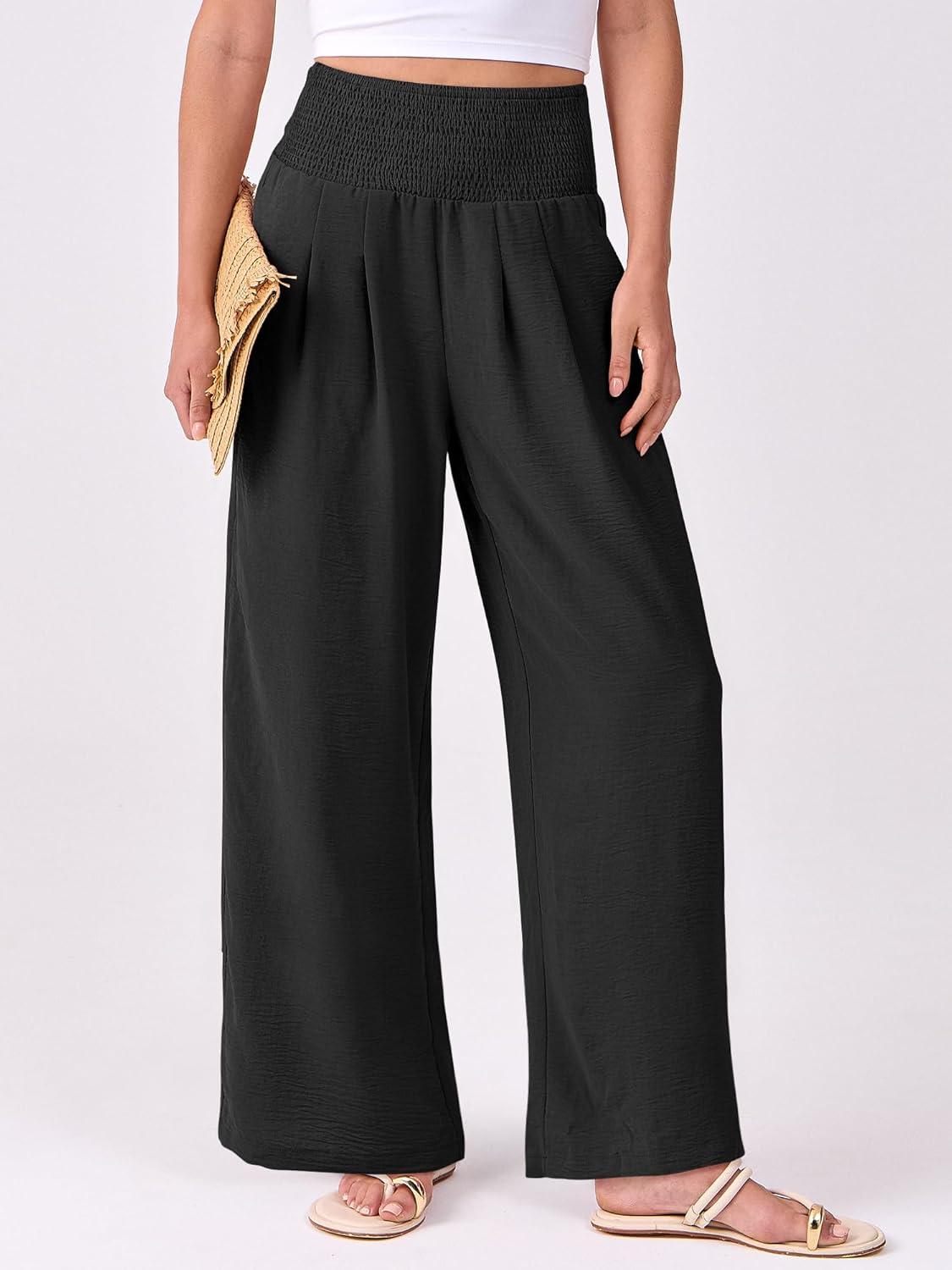 ANRABESS Women Palazzo Pants Summer Flowy Wide Leg High Waist Lounge Trousers with Pockets 2025 Casual Beach Vacation Outfits(Black)