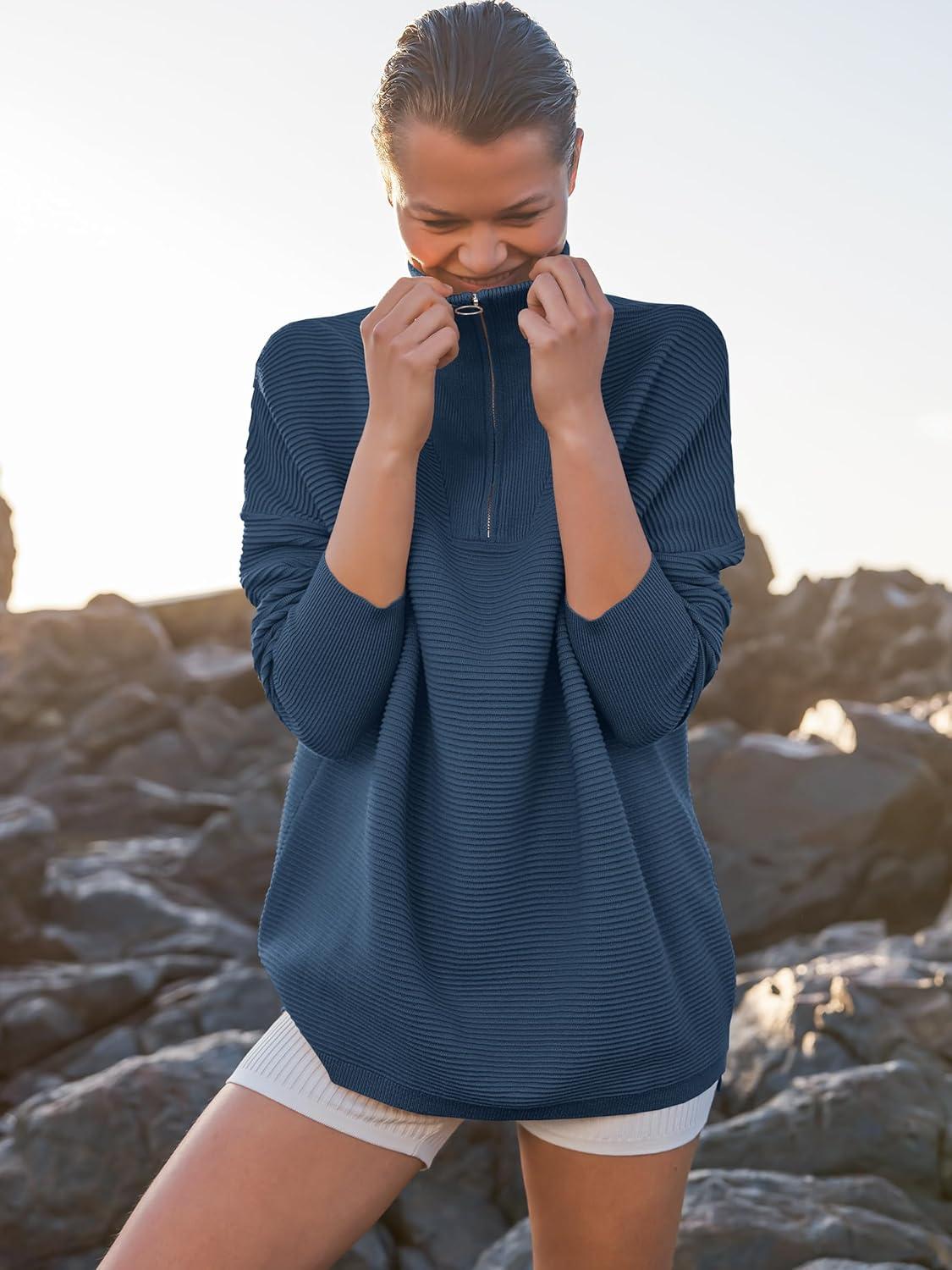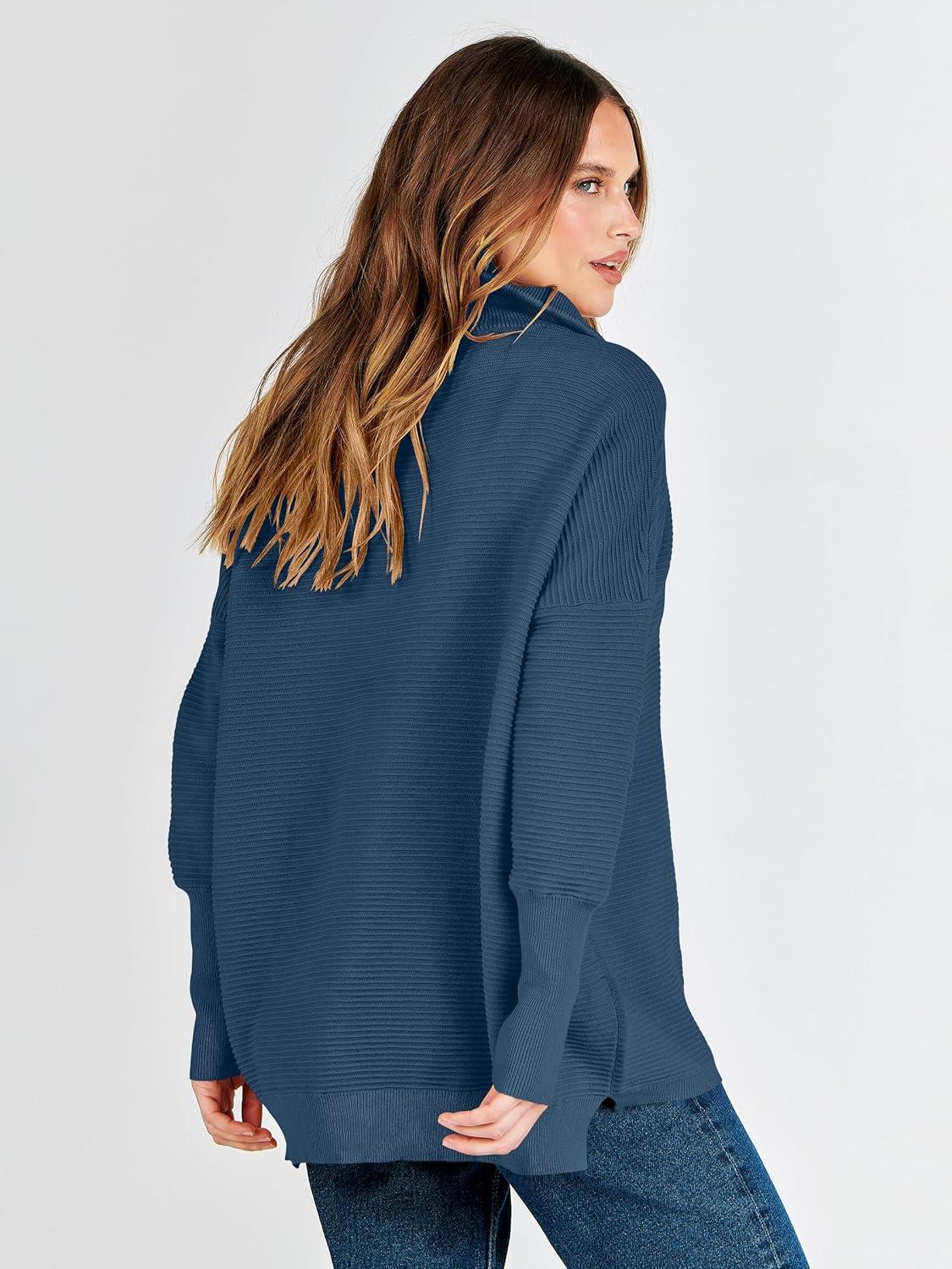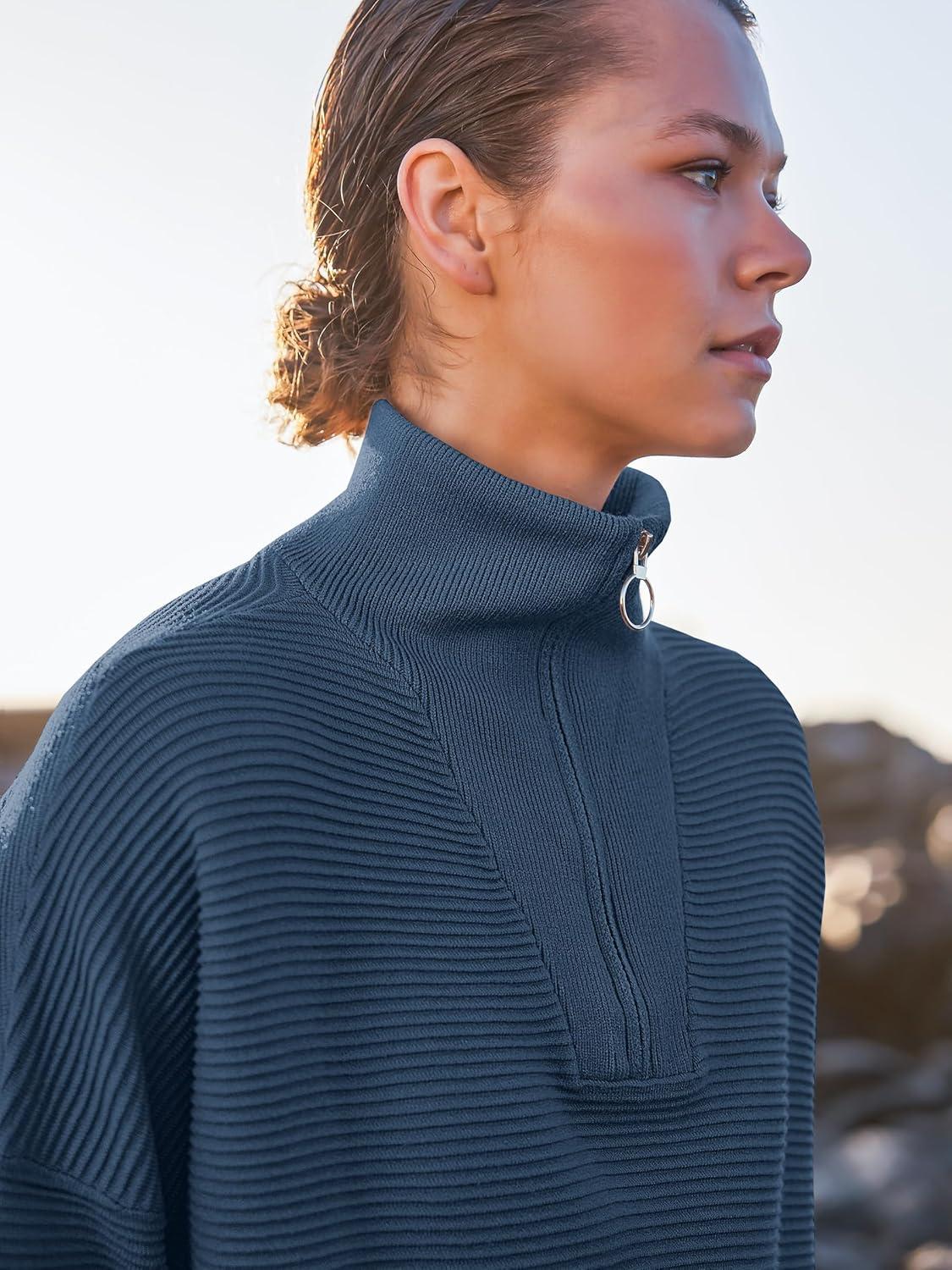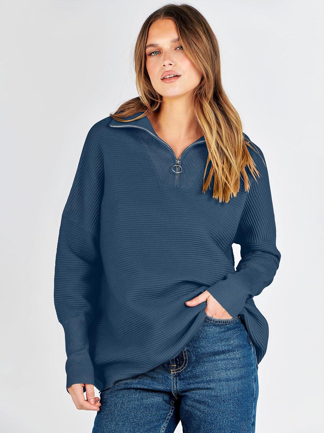 ANRABESS Women Quarter Zip Oversized Casual Loose Rib Knit Cozy Pullover Sweaters Top 2025 Fall Fashion Outfits Clothes(Dusty Deep Blue)