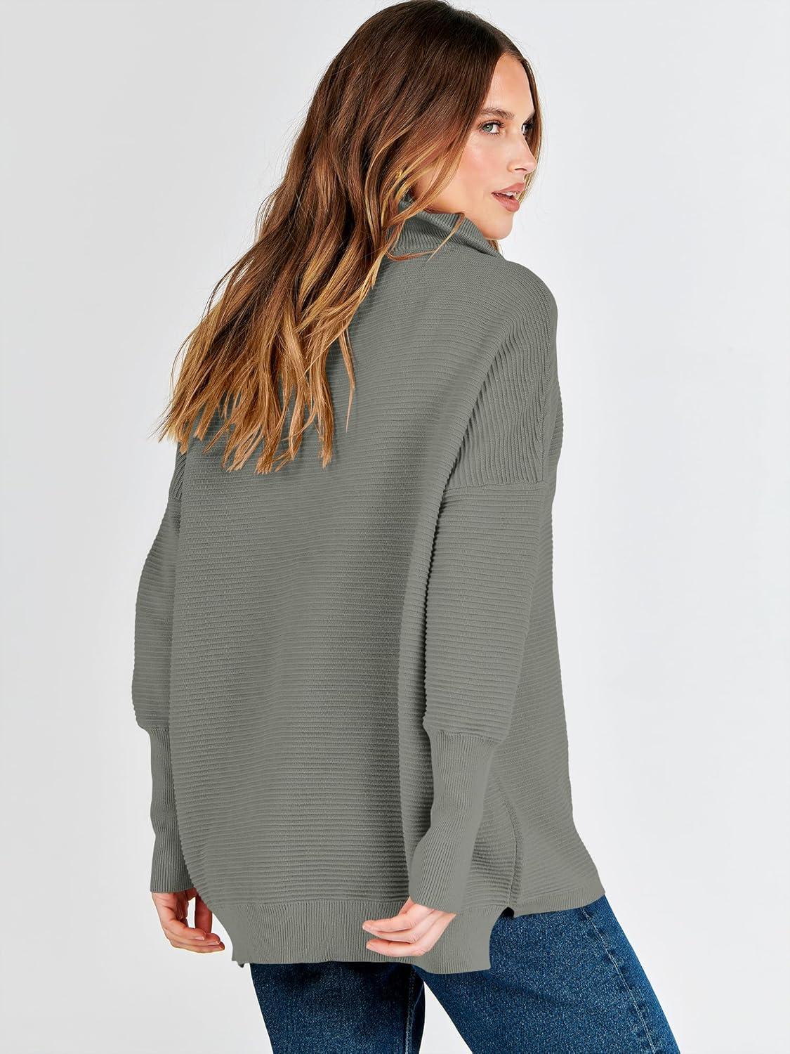 ANRABESS Women Quarter Zip Oversized Casual Loose Rib Knit Cozy Pullover Sweaters Top 2025 Fall Fashion Outfits Clothes(Grass Green)