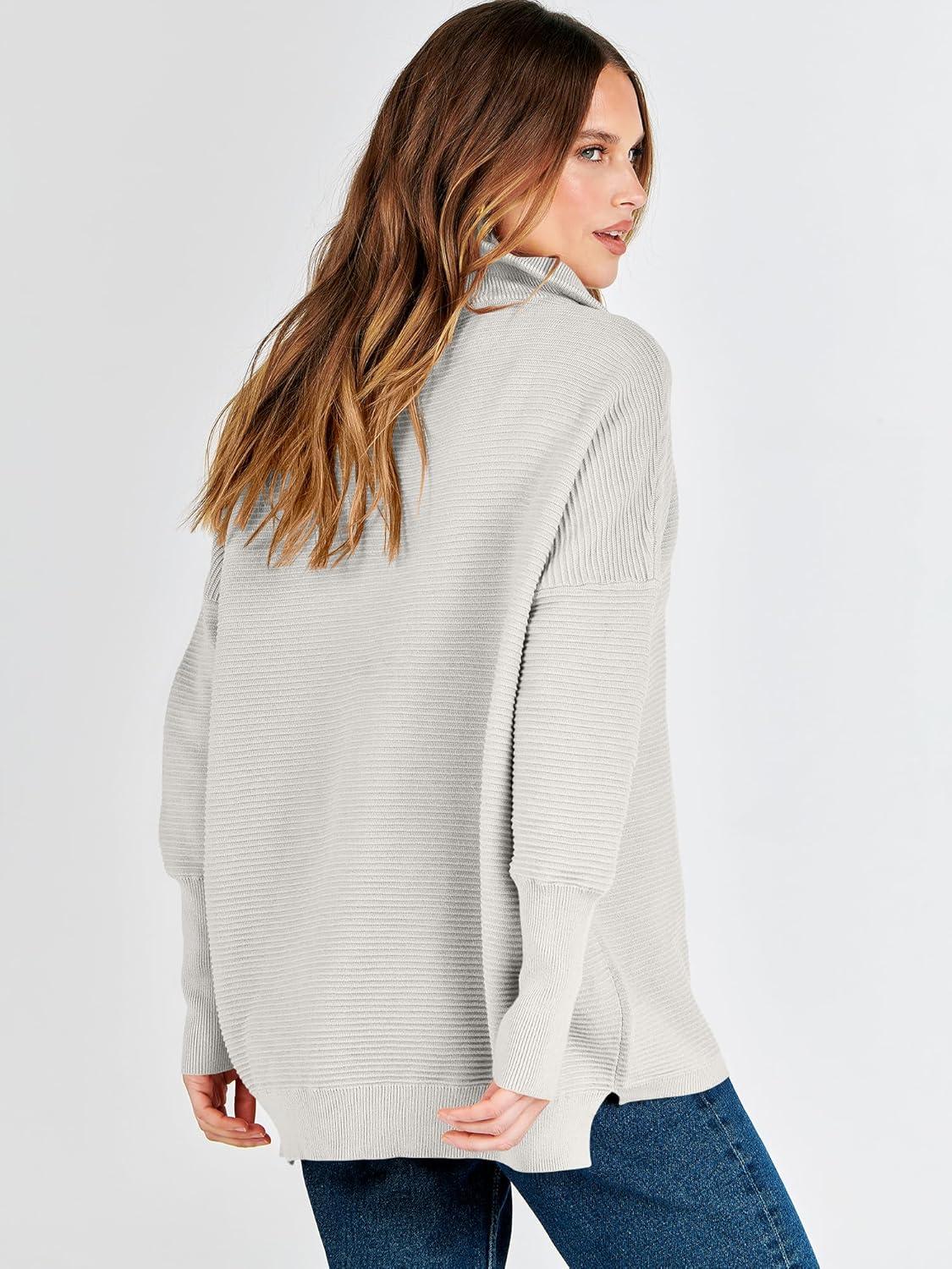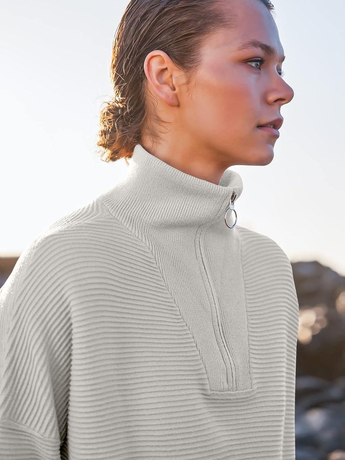 ANRABESS Women Quarter Zip Oversized Casual Loose Rib Knit Cozy Pullover Sweaters Top 2025 Fall Fashion Outfits Clothes(Gray)