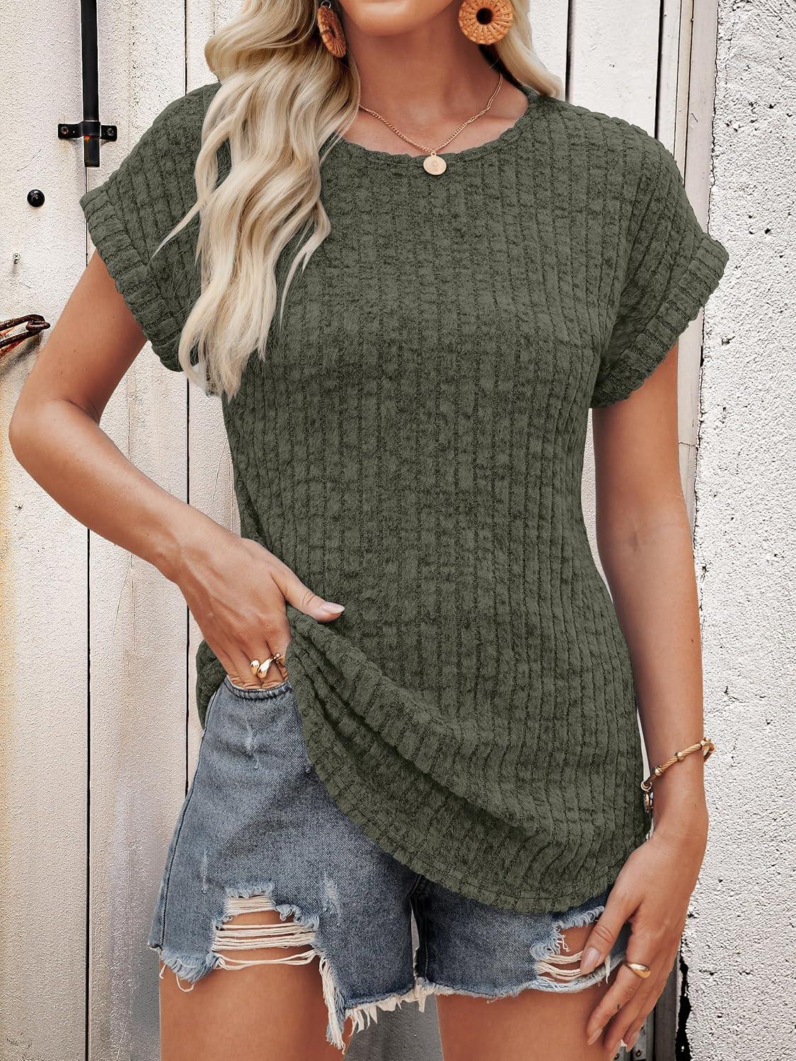 ANRABESS Women Shirts Summer Sweaters Regular Fit Short Sleeve Tunic Tops 2025 Dressy Casual Business Blouses(Deep Green)