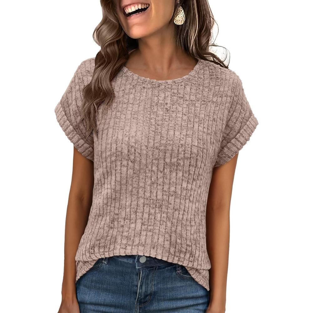 Be the first to review “ANRABESS Women Shirts Summer Sweaters Regular Fit Short Sleeve Tunic Tops 2025 Dressy Casual Business Blouses(Tan)”
