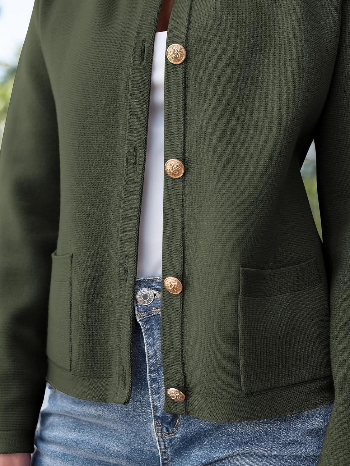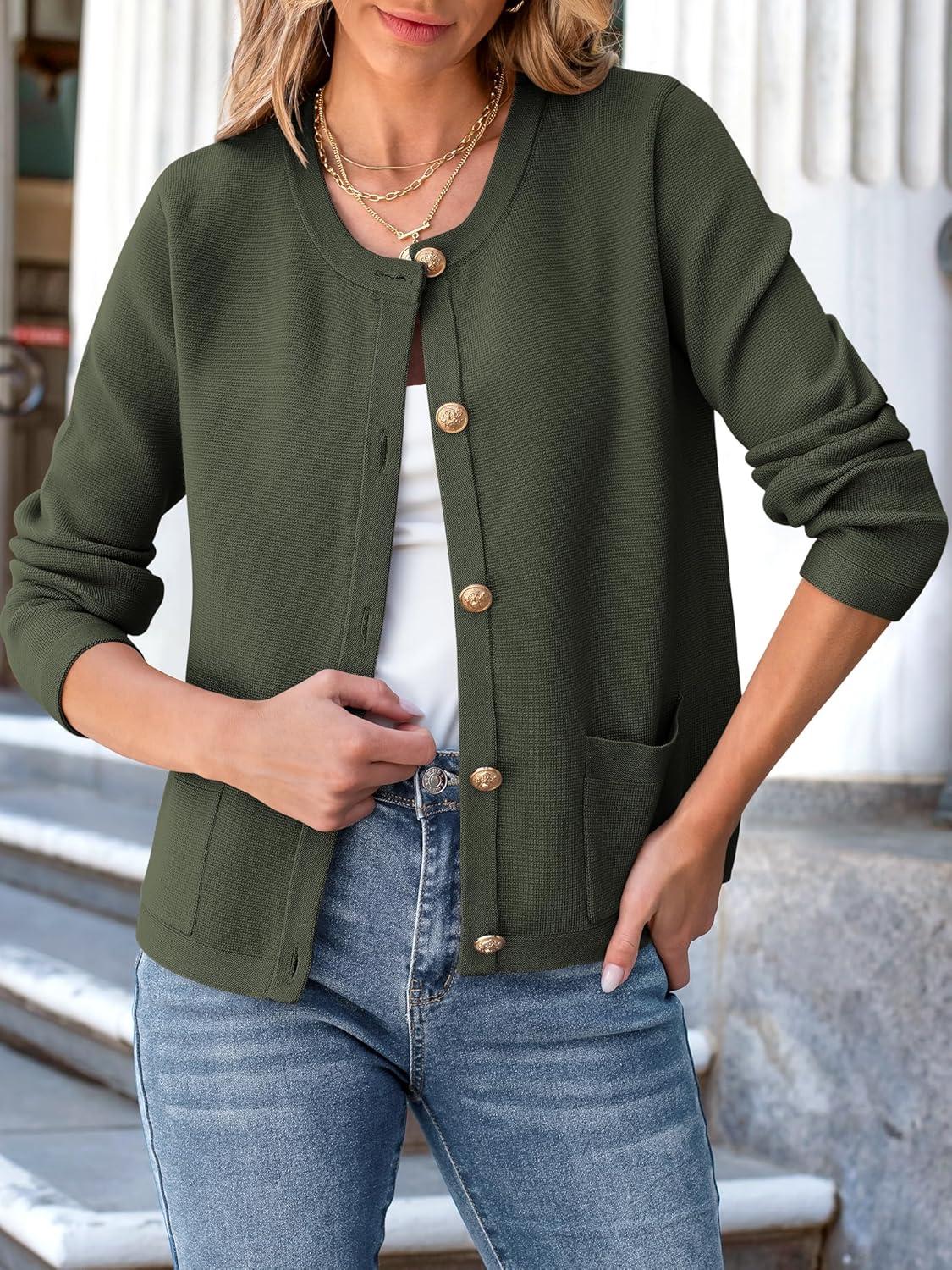 ANRABESS Women Striped Cardigan Sweaters Button Down Cropped Knit Lady Jackets Coat 2025 Fall Outfits Trendy Clothes(Army Green)