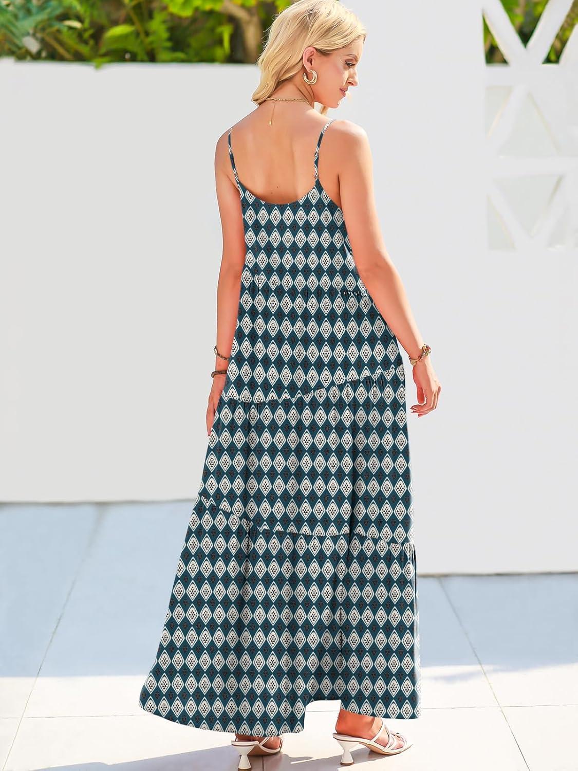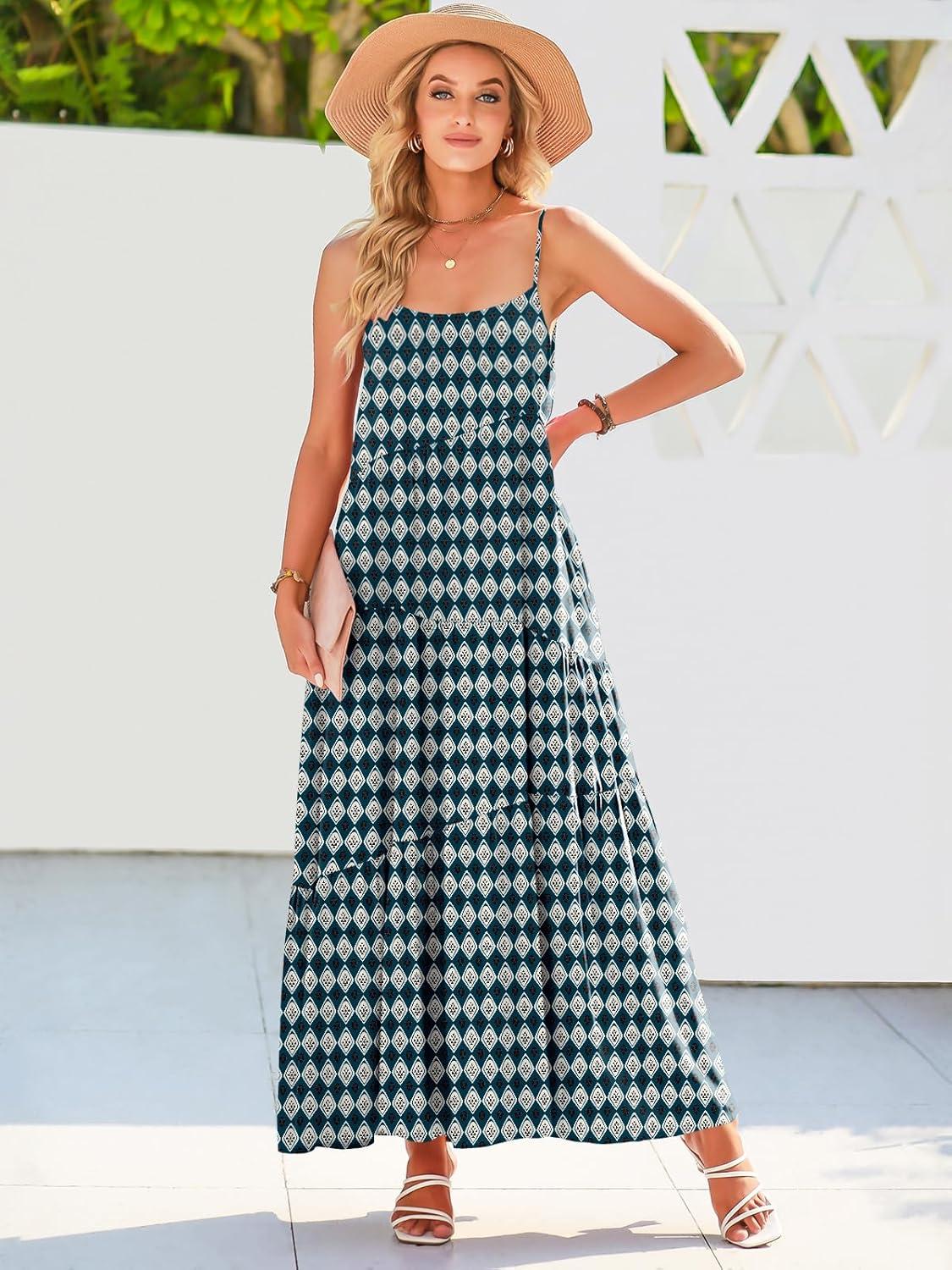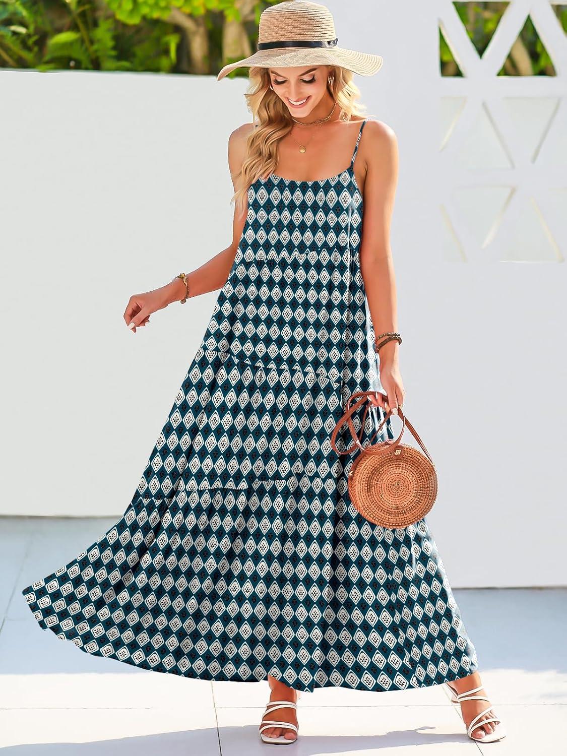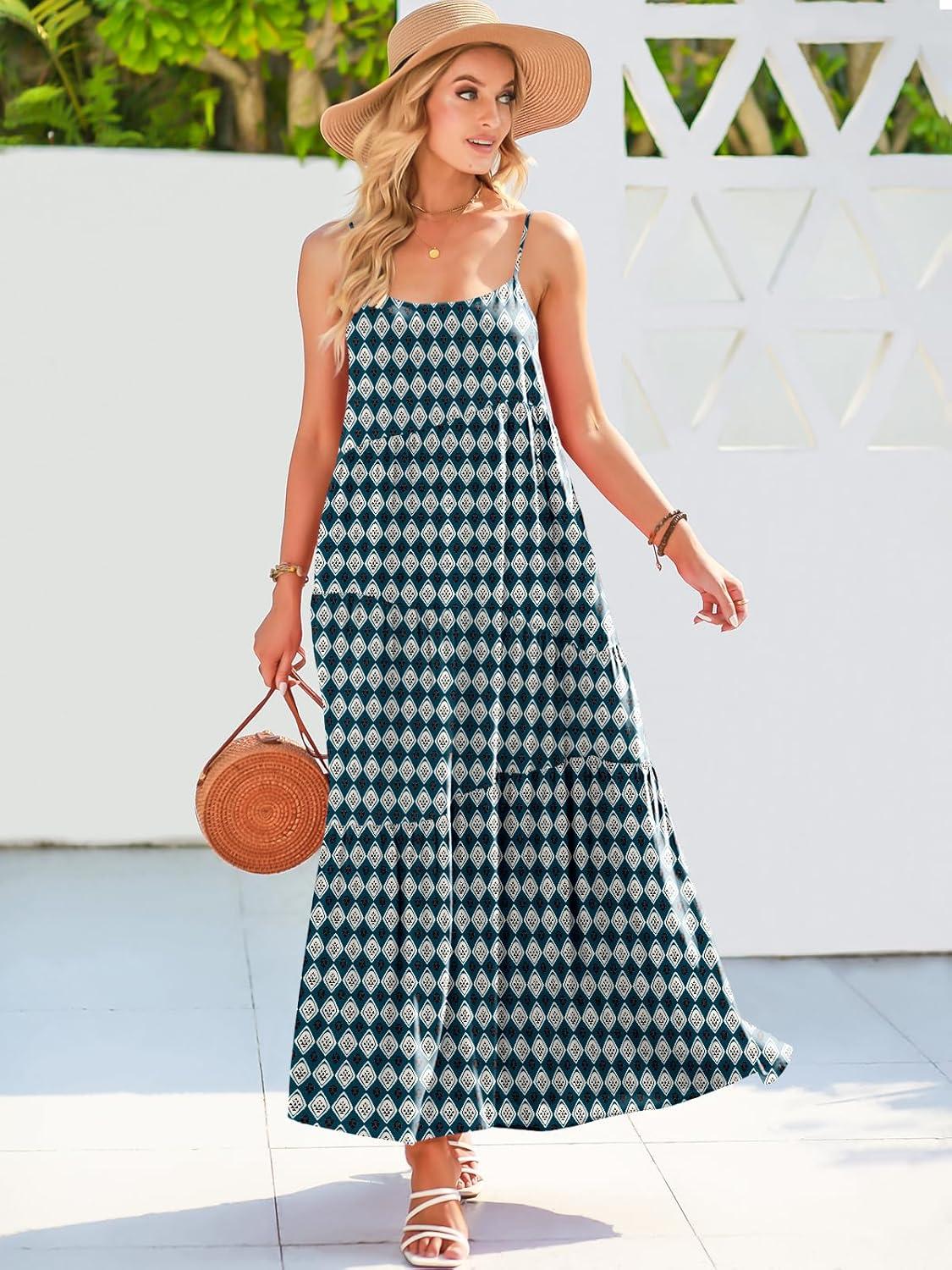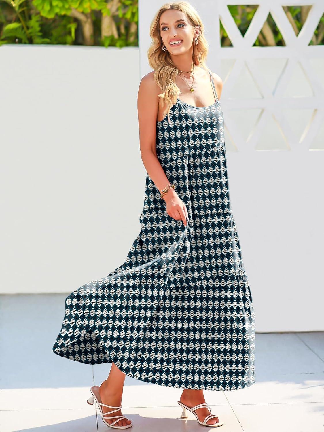 ANRABESS Women Summer Casual Loose Sleeveless Sundress Spaghetti Strap Flowy Boho Linen Beach Vacation Maxi Long Dress(Floral Green)