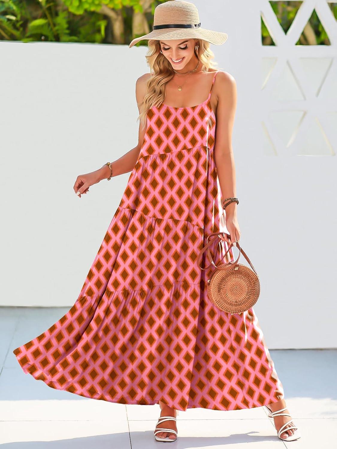 ANRABESS Women Summer Casual Loose Sleeveless Sundress Spaghetti Strap Flowy Boho Linen Beach Vacation Maxi Long Dress(Floral Orange)