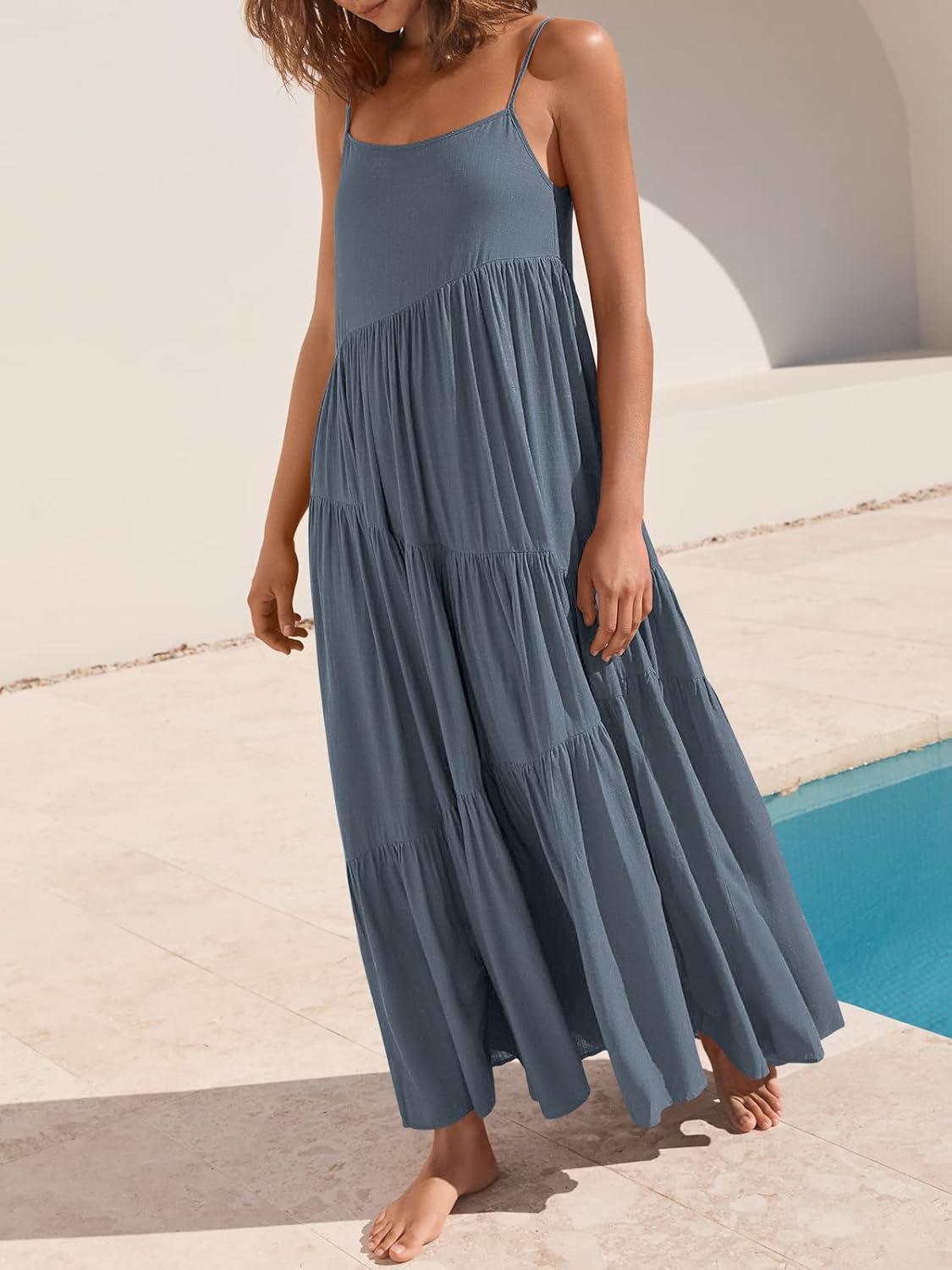 ANRABESS Women Summer Casual Loose Sleeveless Sundress Spaghetti Strap Flowy Boho Linen Beach Vacation Maxi Long Dress(Gray Blue)
