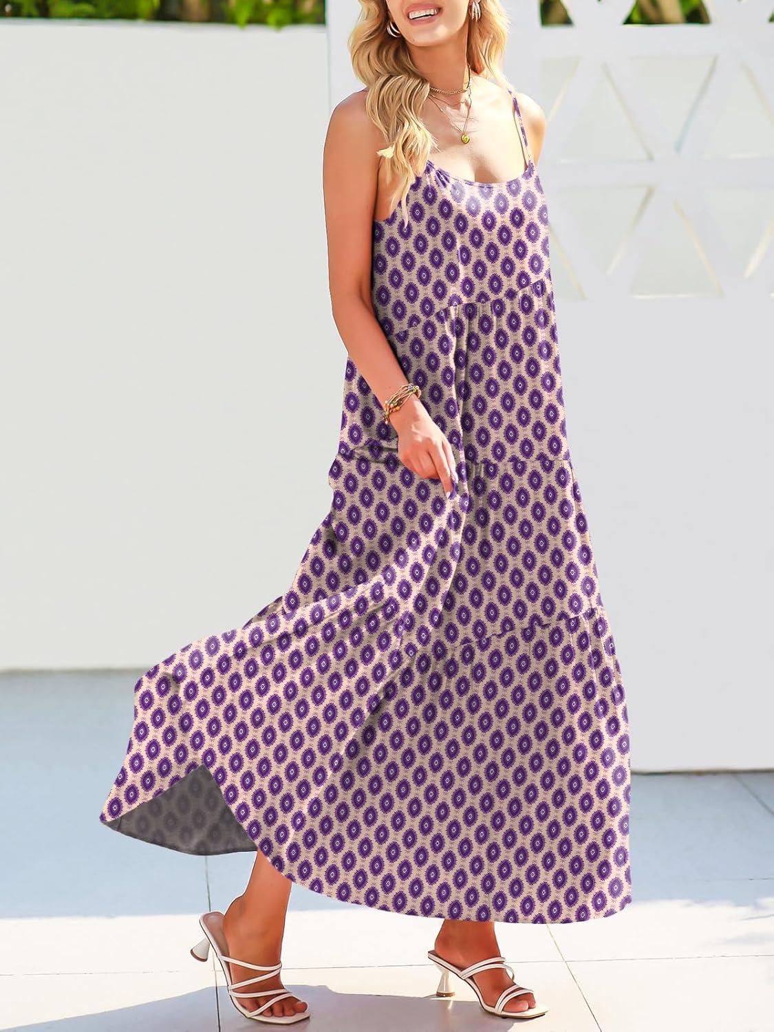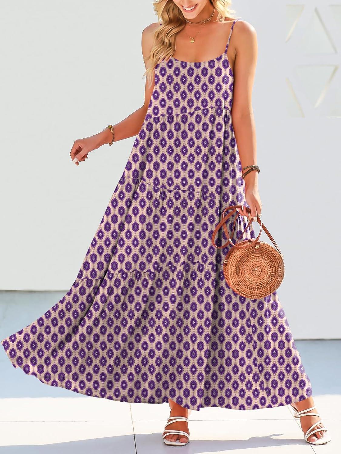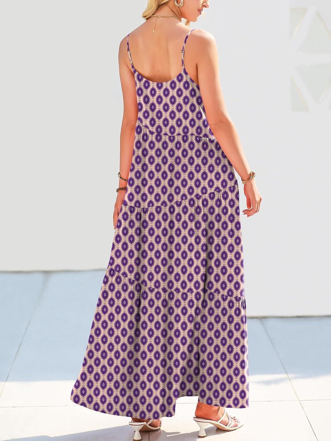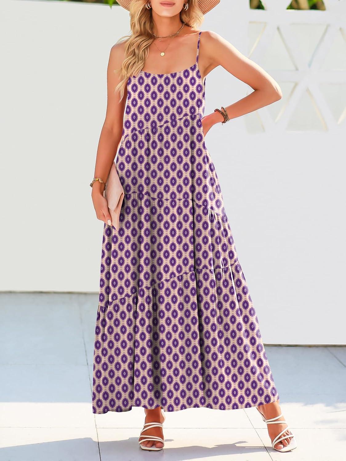 ANRABESS Women Summer Casual Loose Sleeveless Sundress Spaghetti Strap Flowy Boho Linen Beach Vacation Maxi Long Dress(Print Floral Purple)