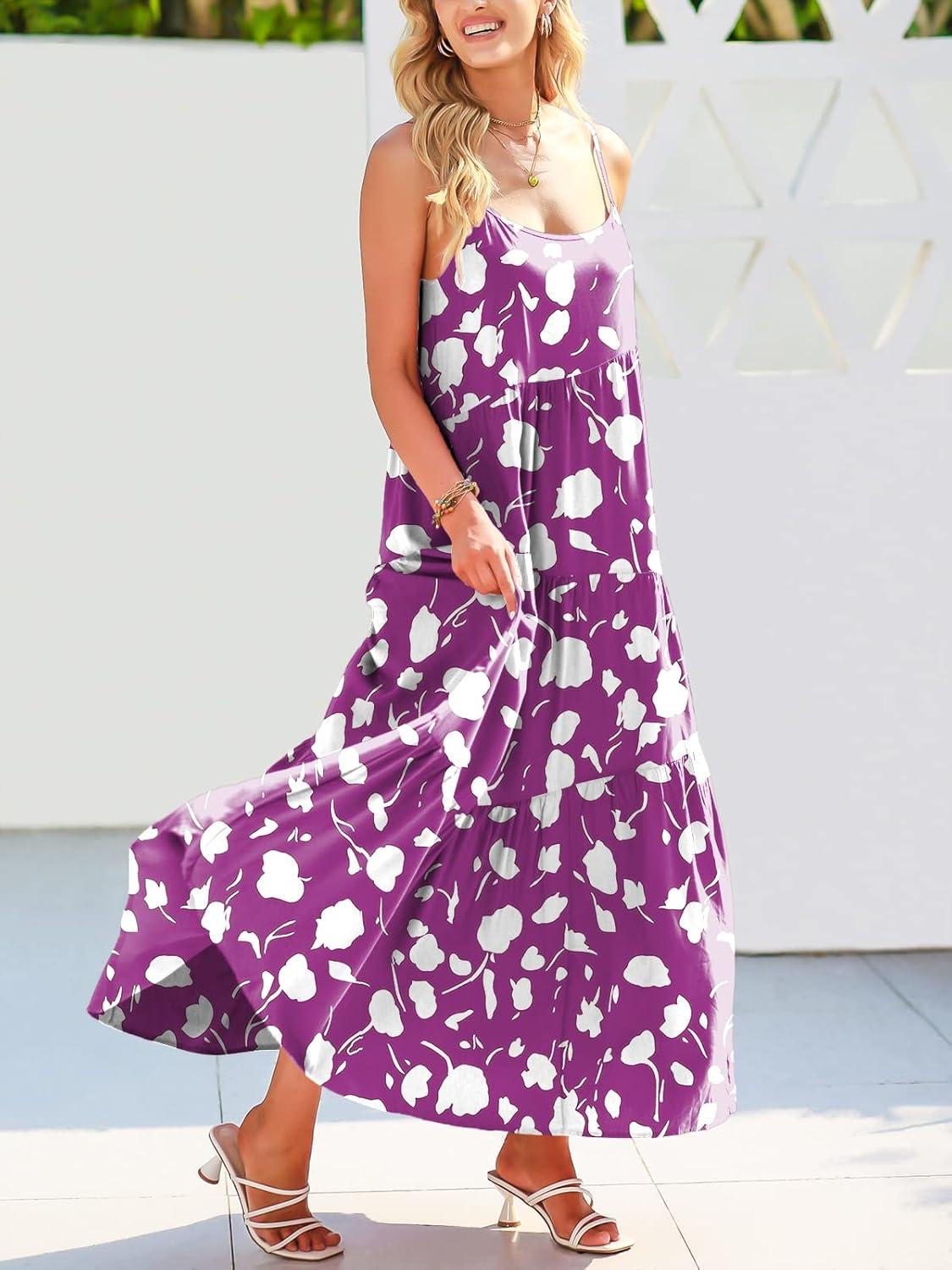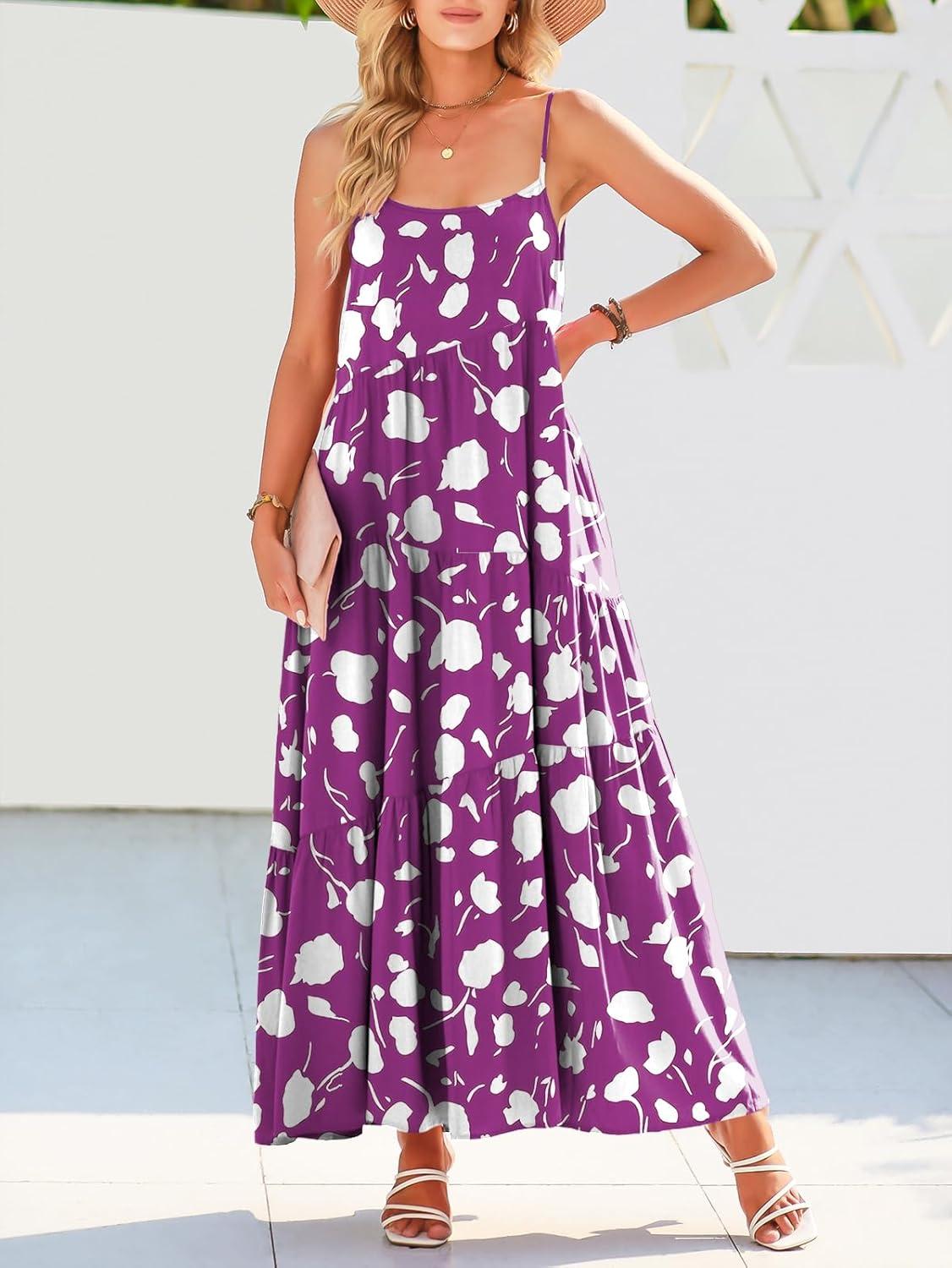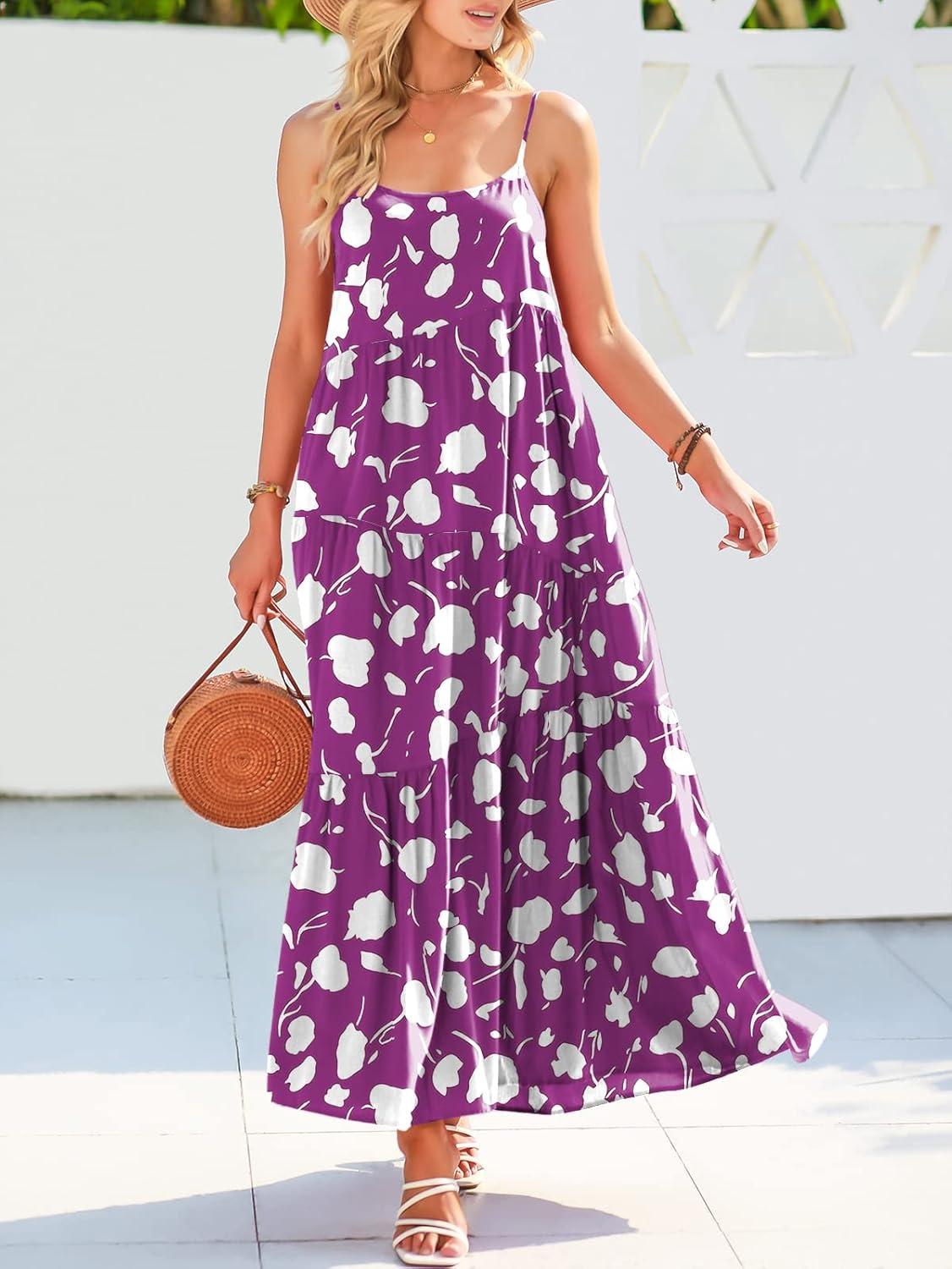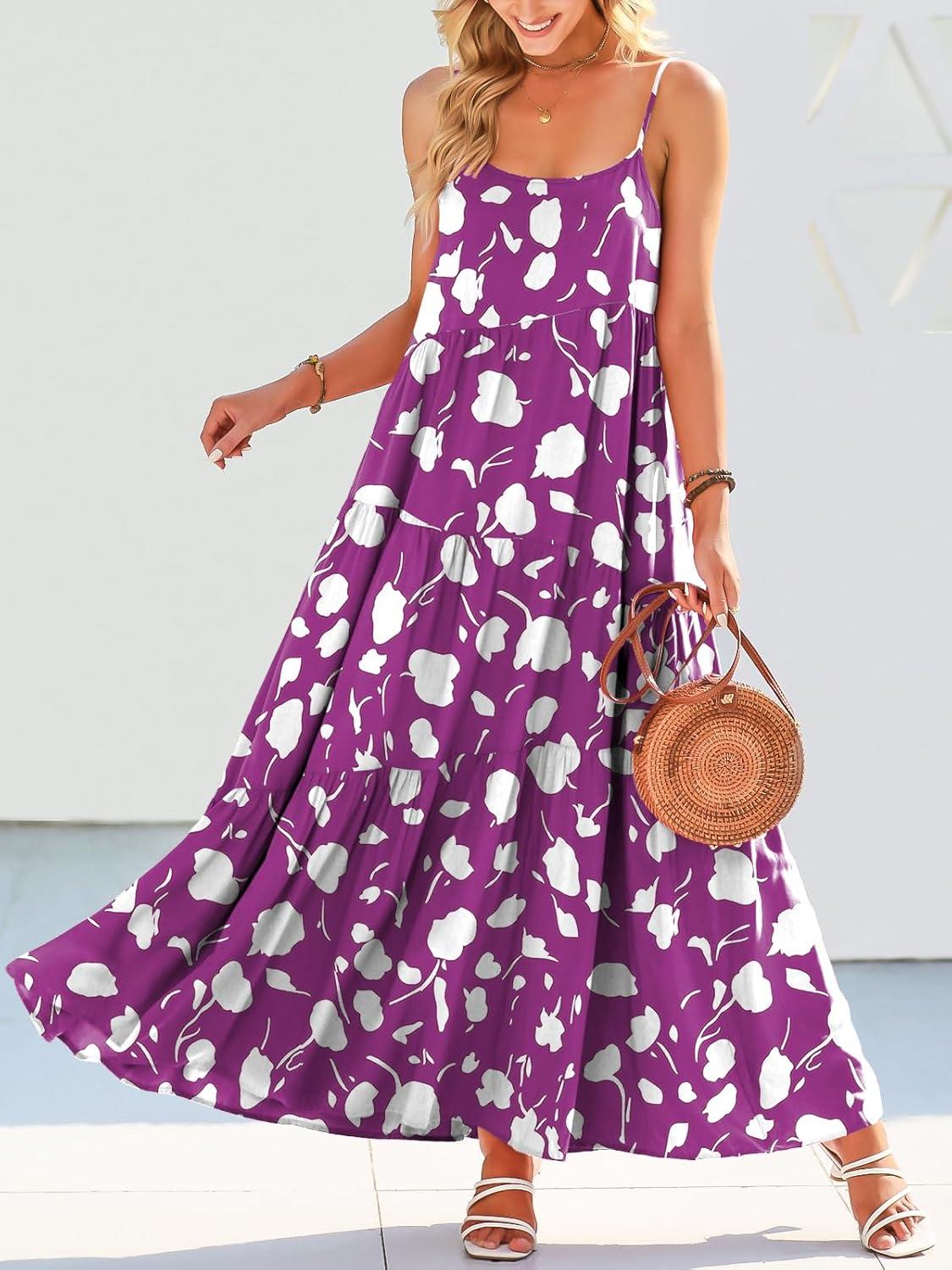 ANRABESS Women Summer Casual Loose Sleeveless Sundress Spaghetti Strap Flowy Boho Linen Beach Vacation Maxi Long Dress(Print Purple)