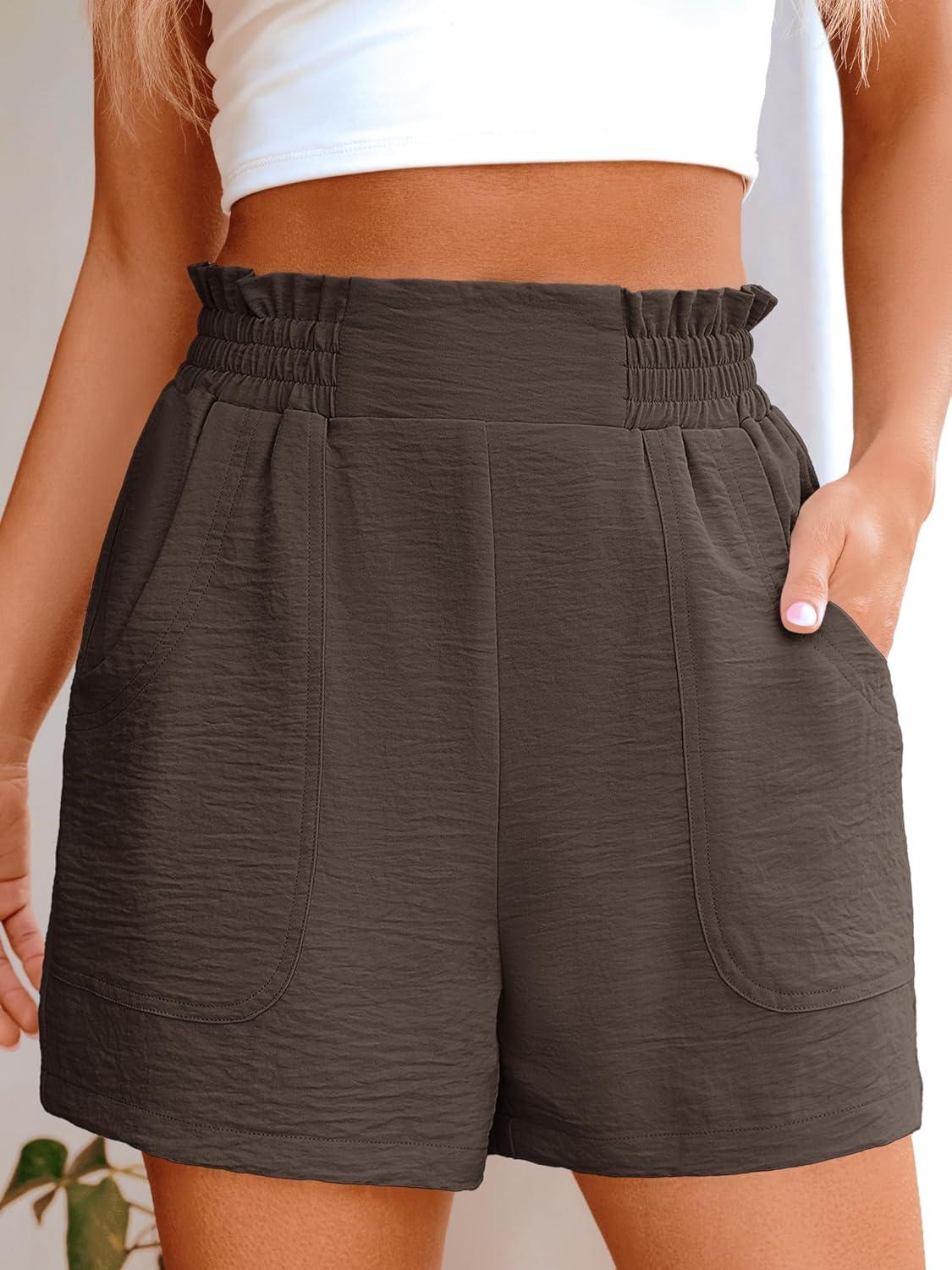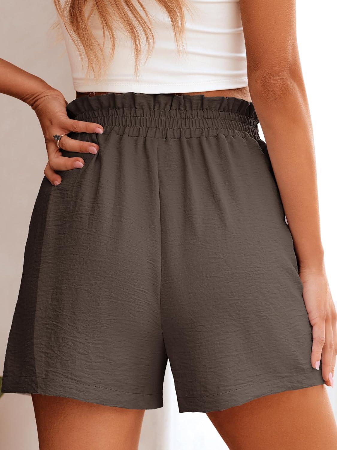 ANRABESS Women Summer Casual Shorts Elastic High Waisted Wide Leg Cute Dressy Beach Shorts 2025 Fashion Vacation Outfits(Coffee)