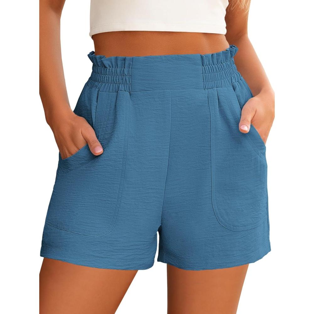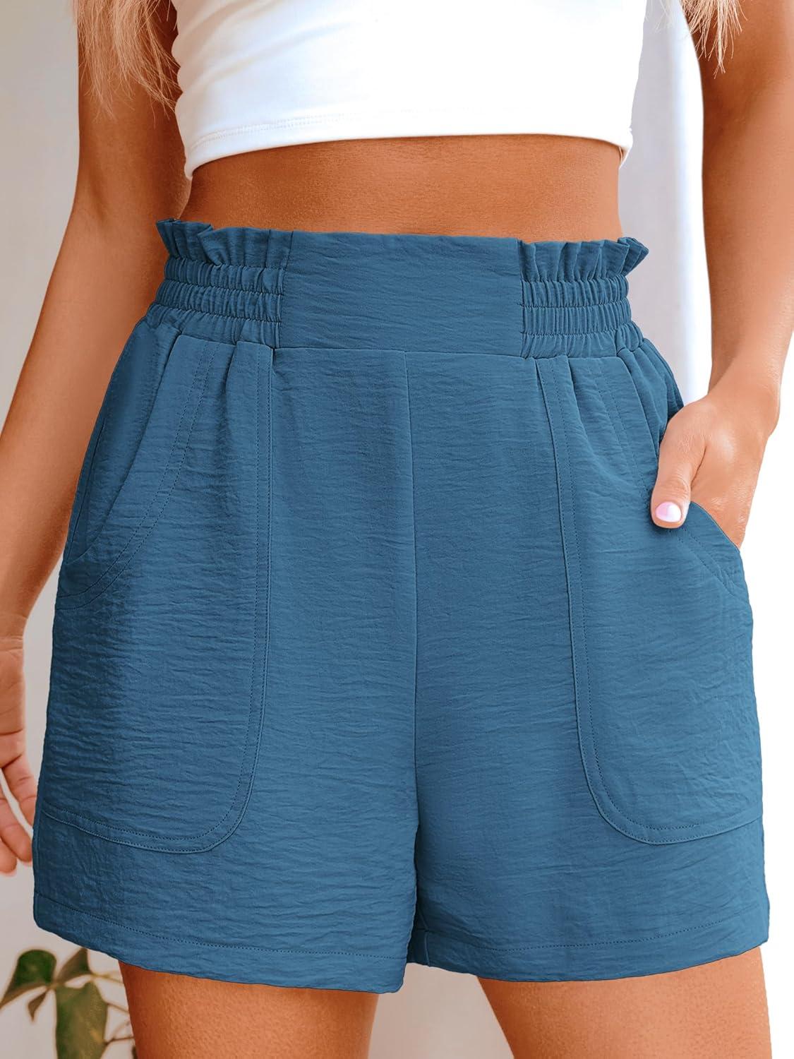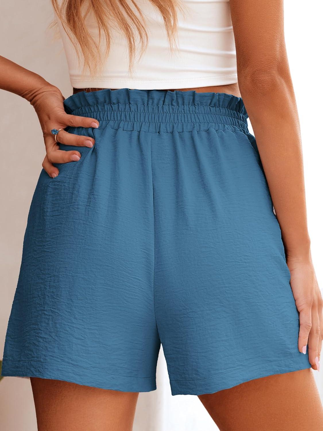 ANRABESS Women Summer Casual Shorts Elastic High Waisted Wide Leg Cute Dressy Beach Shorts 2025 Fashion Vacation Outfits(Lake)