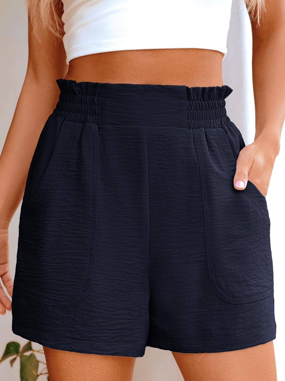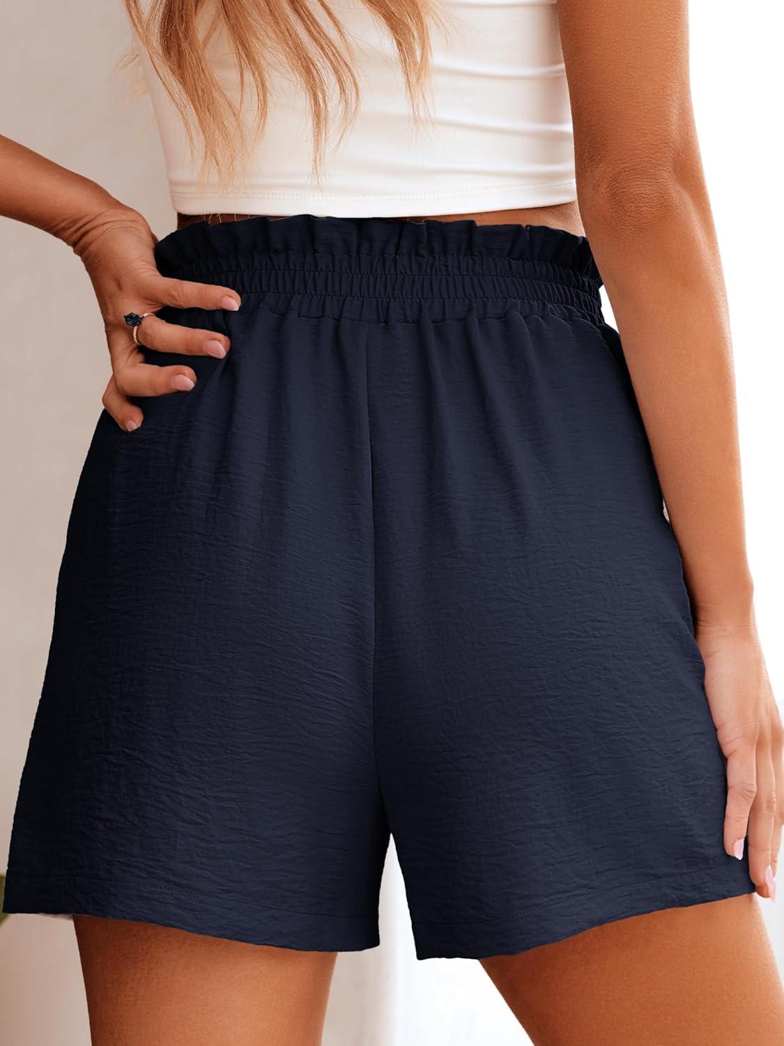 ANRABESS Women Summer Casual Shorts Elastic High Waisted Wide Leg Cute Dressy Beach Shorts 2025 Fashion Vacation Outfits(Navy)
