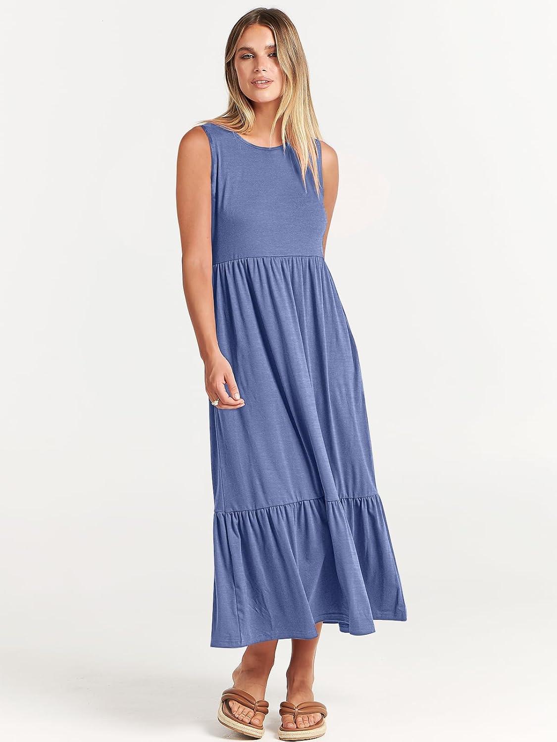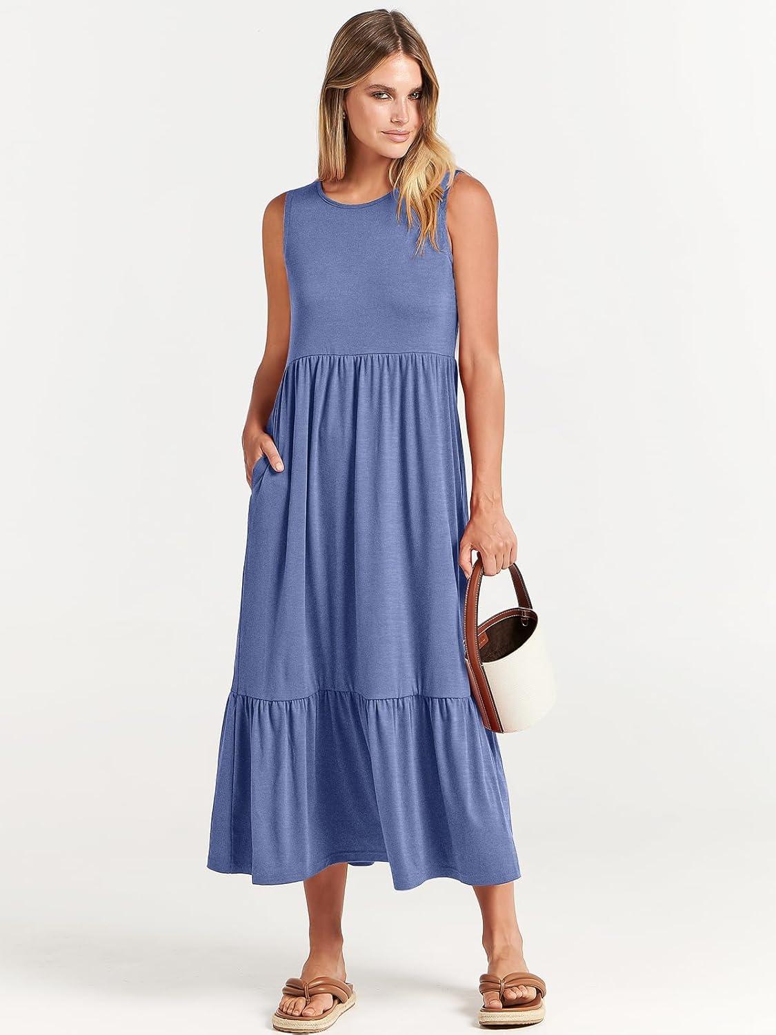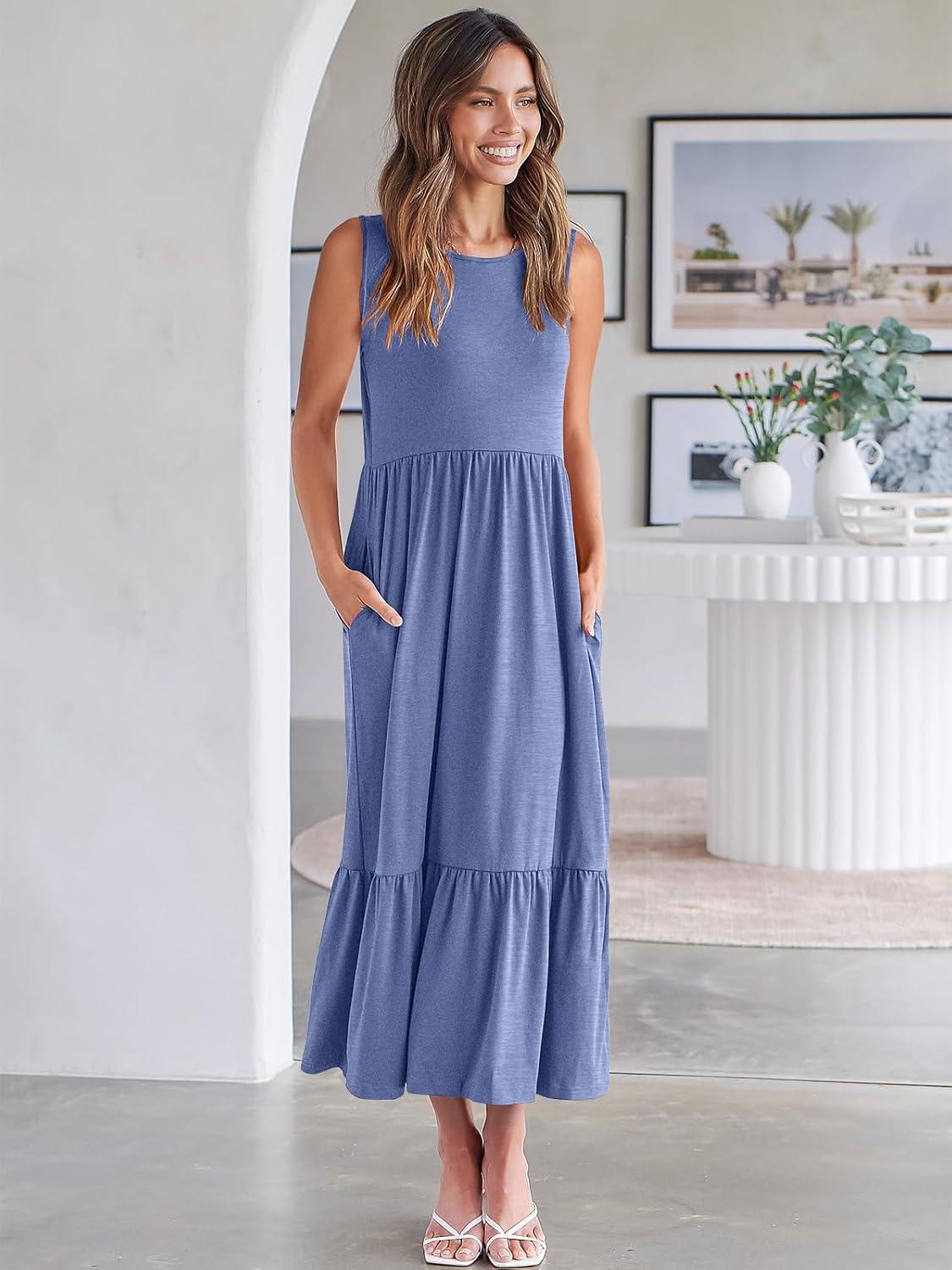 ANRABESS Women Summer Casual Sleeveless Crewneck Sundress Aline Flowy Tiered Maxi Long Beach Dress Vacation Outfits(Grey Blue)