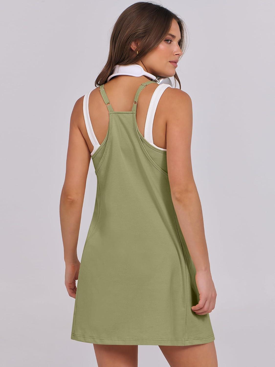 ANRABESS Women Summer Dress 2025 Beach Vacation Outfits Tennis Athletic Workout Romper Dress Built in Shorts Travel Clothes(Army Green)