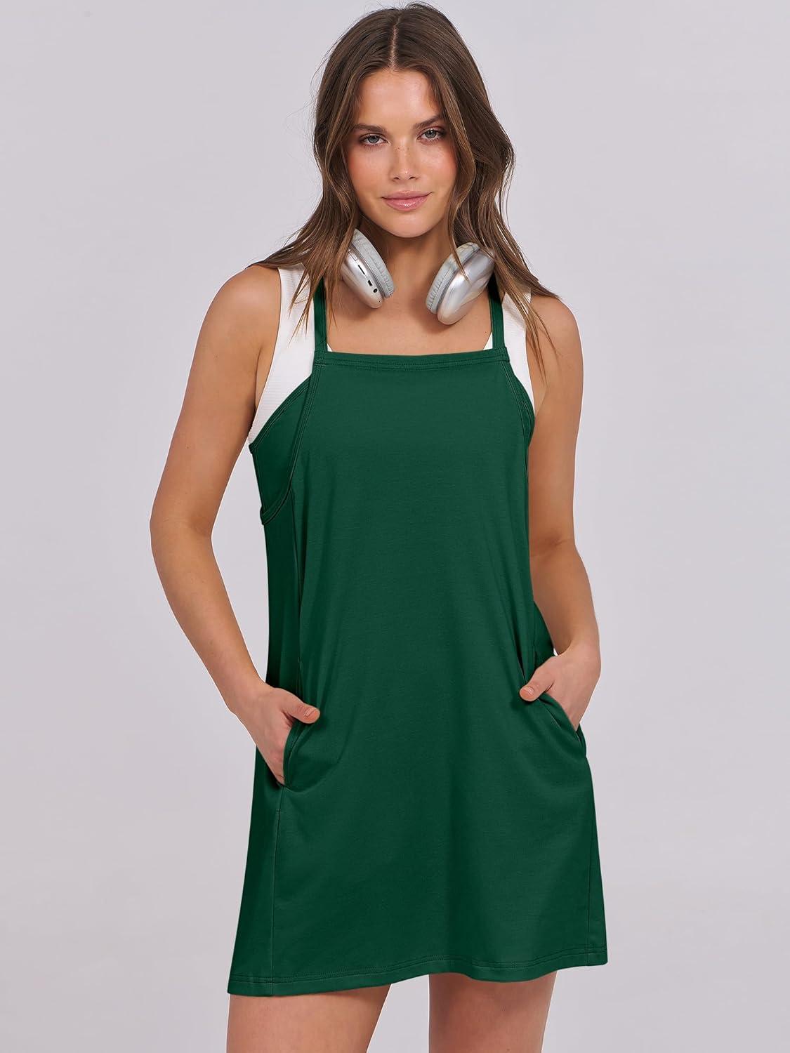 ANRABESS Women Summer Dress 2025 Beach Vacation Outfits Tennis Athletic Workout Romper Dress Built in Shorts Travel Clothes(Deep Green)