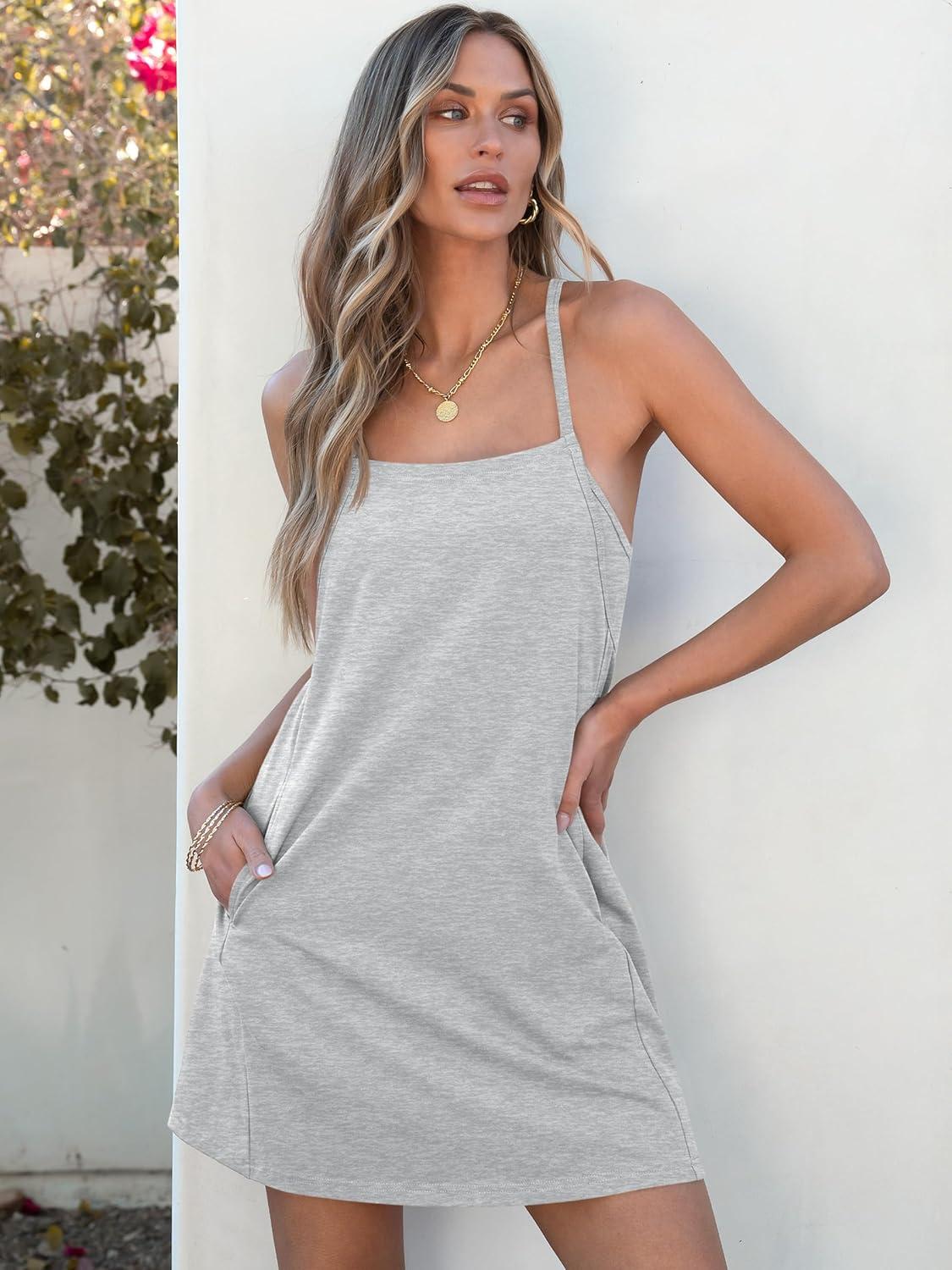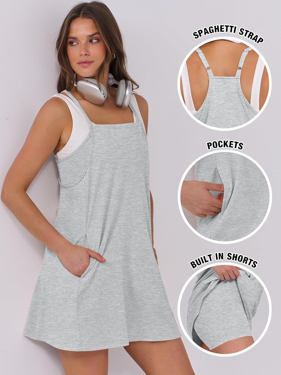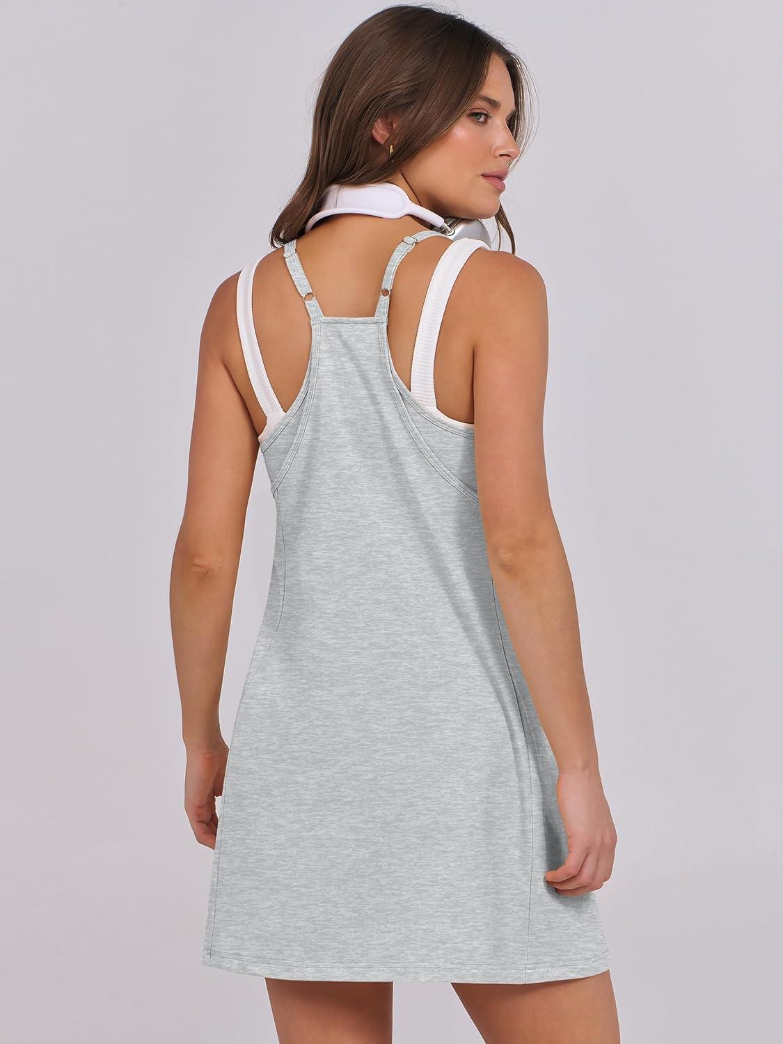 ANRABESS Women Summer Dress 2025 Beach Vacation Outfits Tennis Athletic Workout Romper Dress Built in Shorts Travel Clothes(Heather Grey)