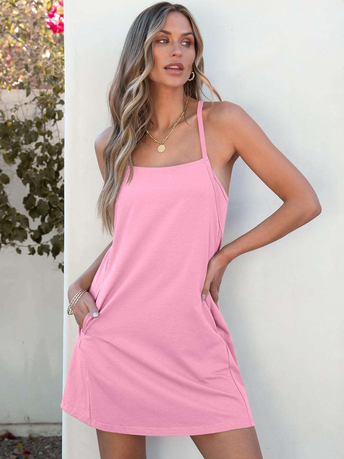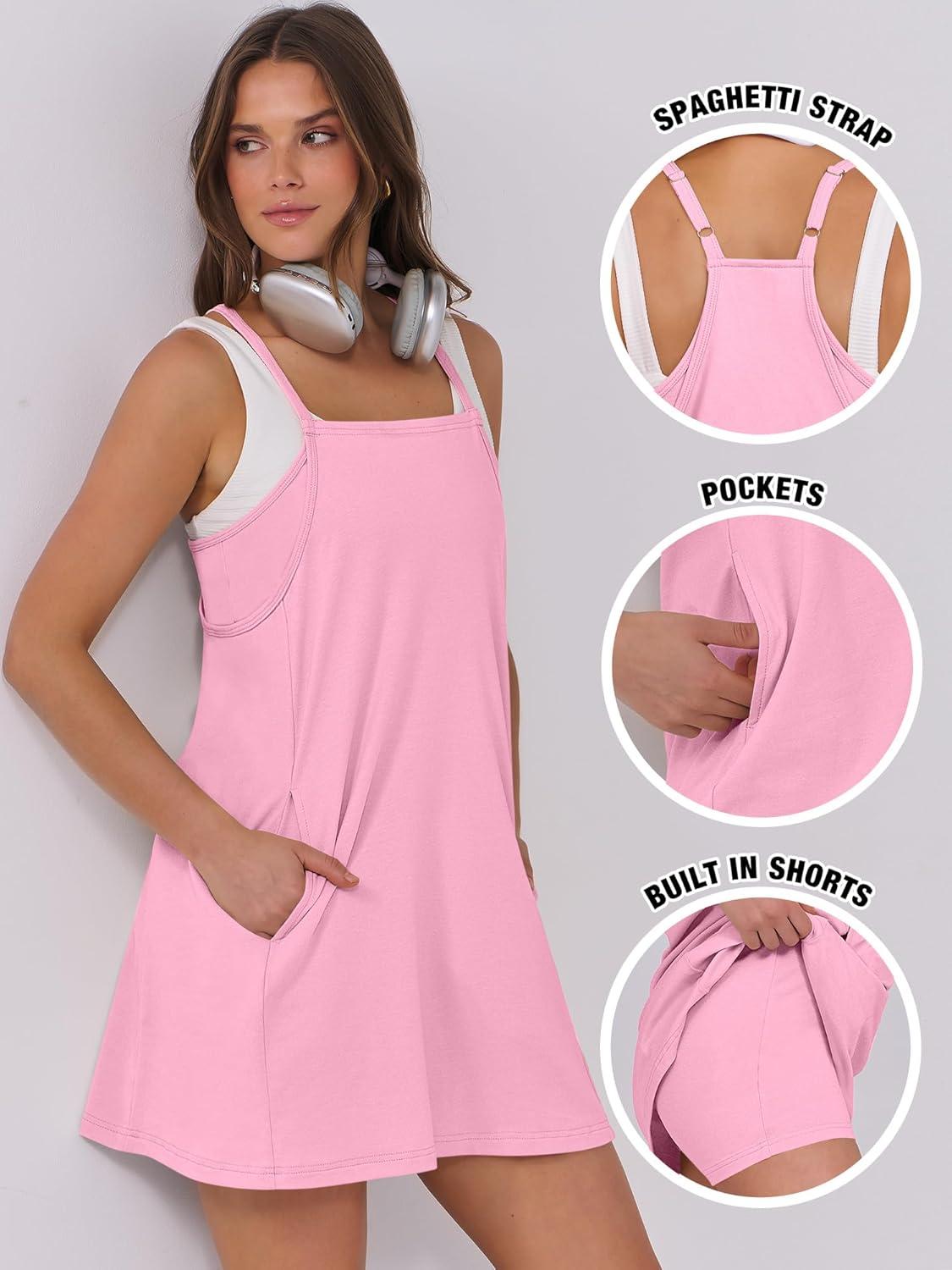 ANRABESS Women Summer Dress 2025 Beach Vacation Outfits Tennis Athletic Workout Romper Dress Built in Shorts Travel Clothes(Light Pink)