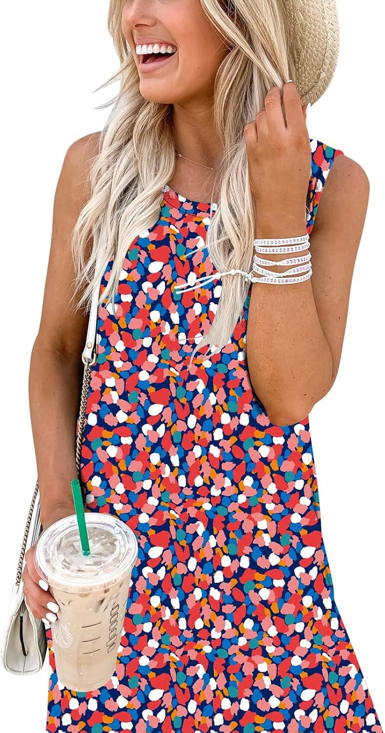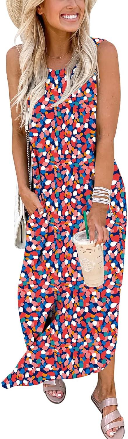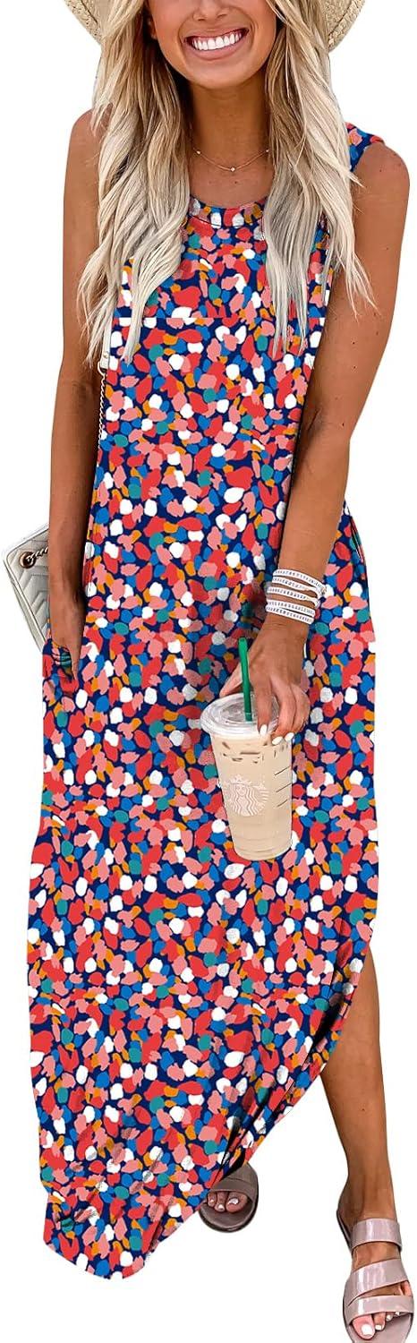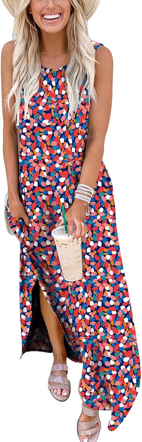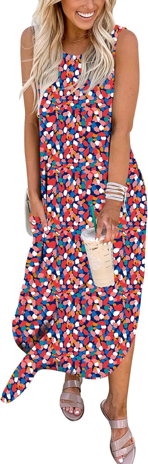 ANRABESS Women Summer Maxi Dress Beach Vacation Sundress Sleeveless Casual Loose Shirt Dresses 2025 Travel Outfits(Floral Rainbow)