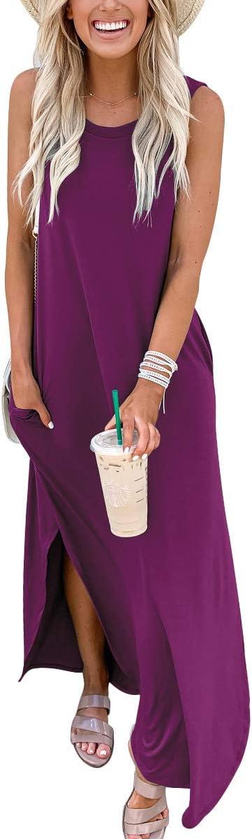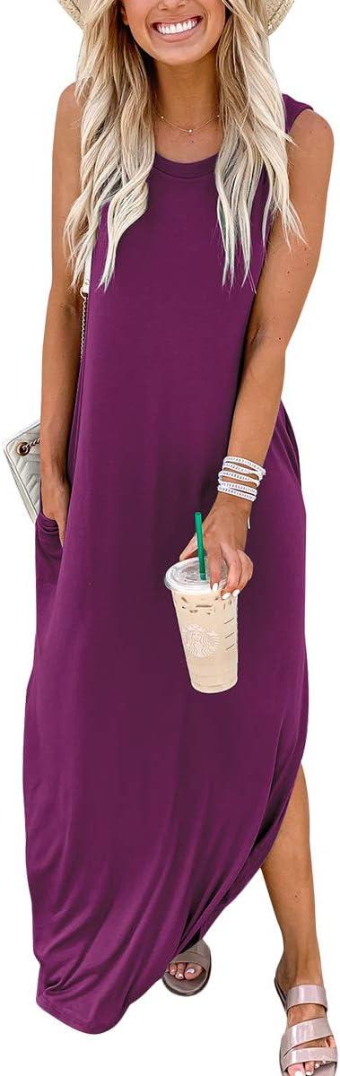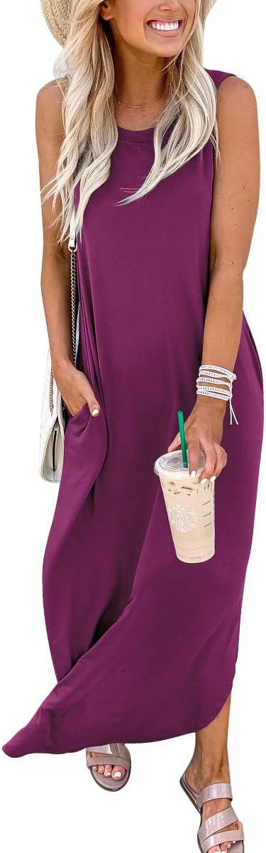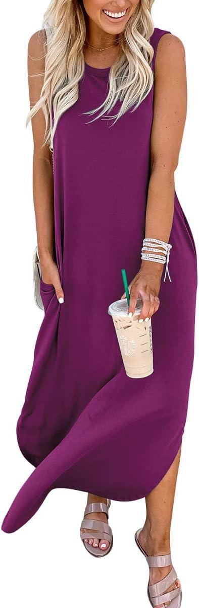 ANRABESS Women Summer Maxi Dress Beach Vacation Sundress Sleeveless Casual Loose Shirt Dresses 2025 Travel Outfits(Fuchsia)
