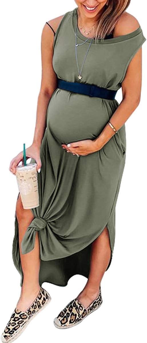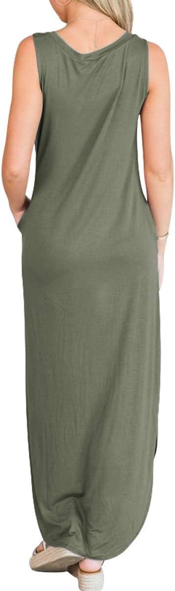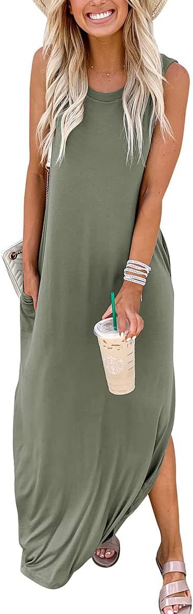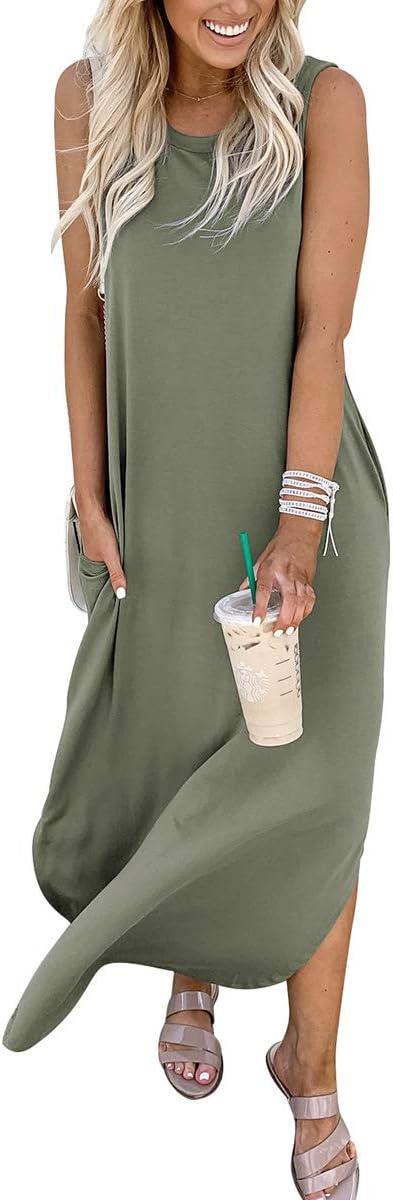ANRABESS Women Summer Maxi Dress Beach Vacation Sundress Sleeveless Casual Loose Shirt Dresses 2025 Travel Outfits(Olive)