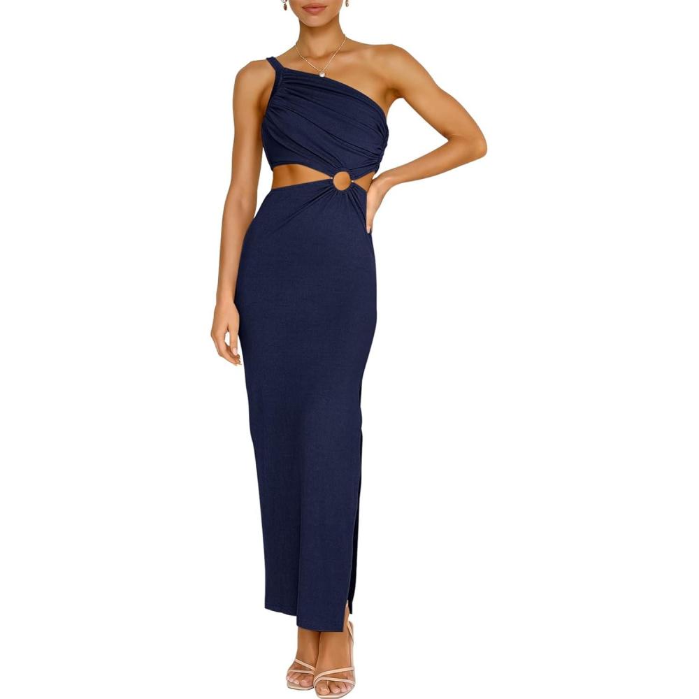 ANRABESS Women Summer One Shoulder Sleeveless Maxi Dress Cutout Sexy Bodycon Semi Formal Dinner Date Vacation Dresses(Navy Blue)