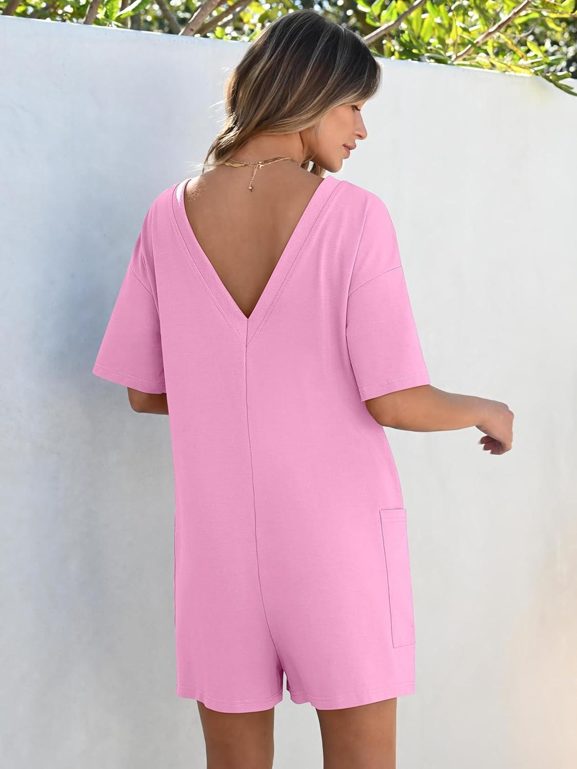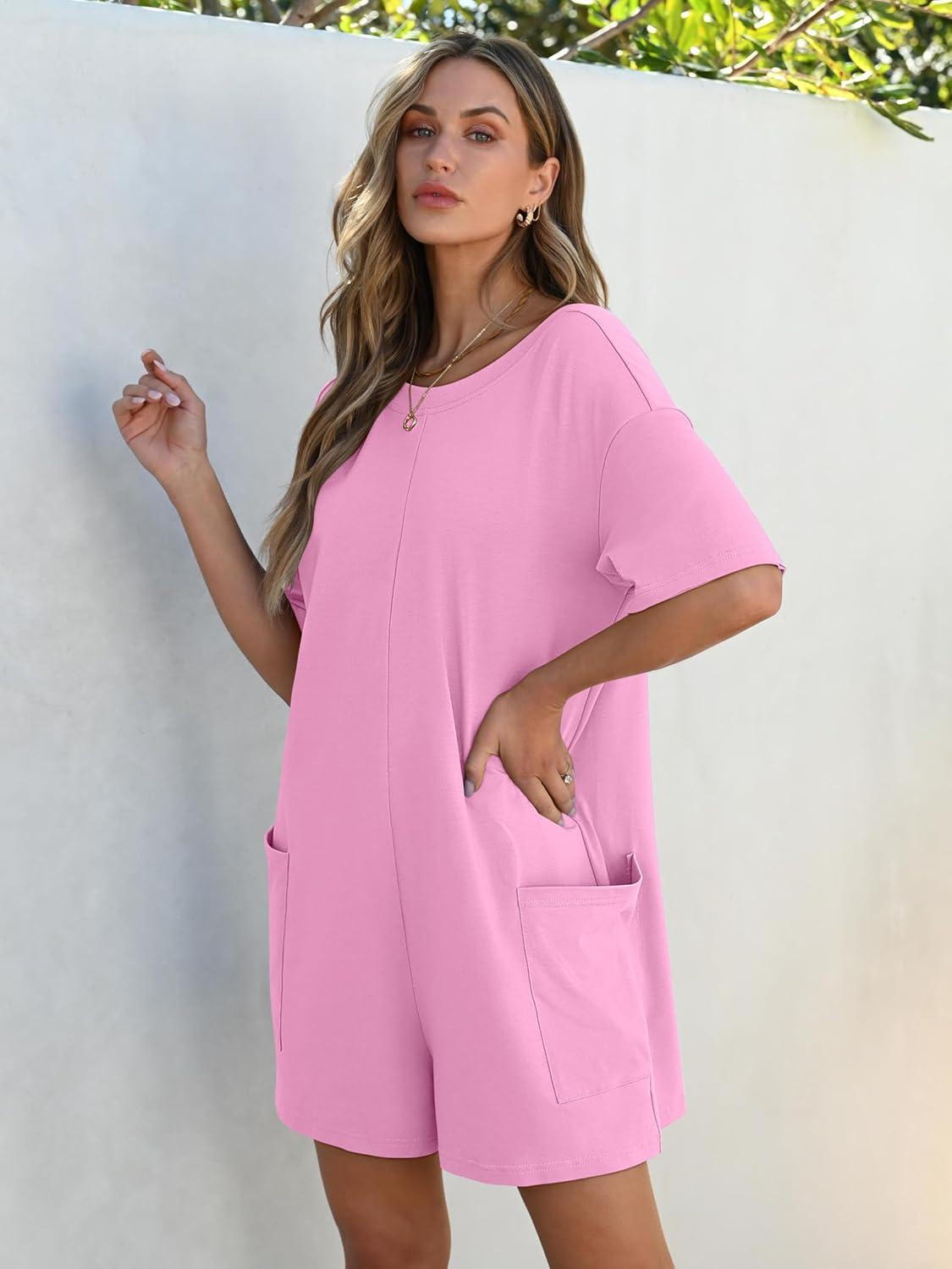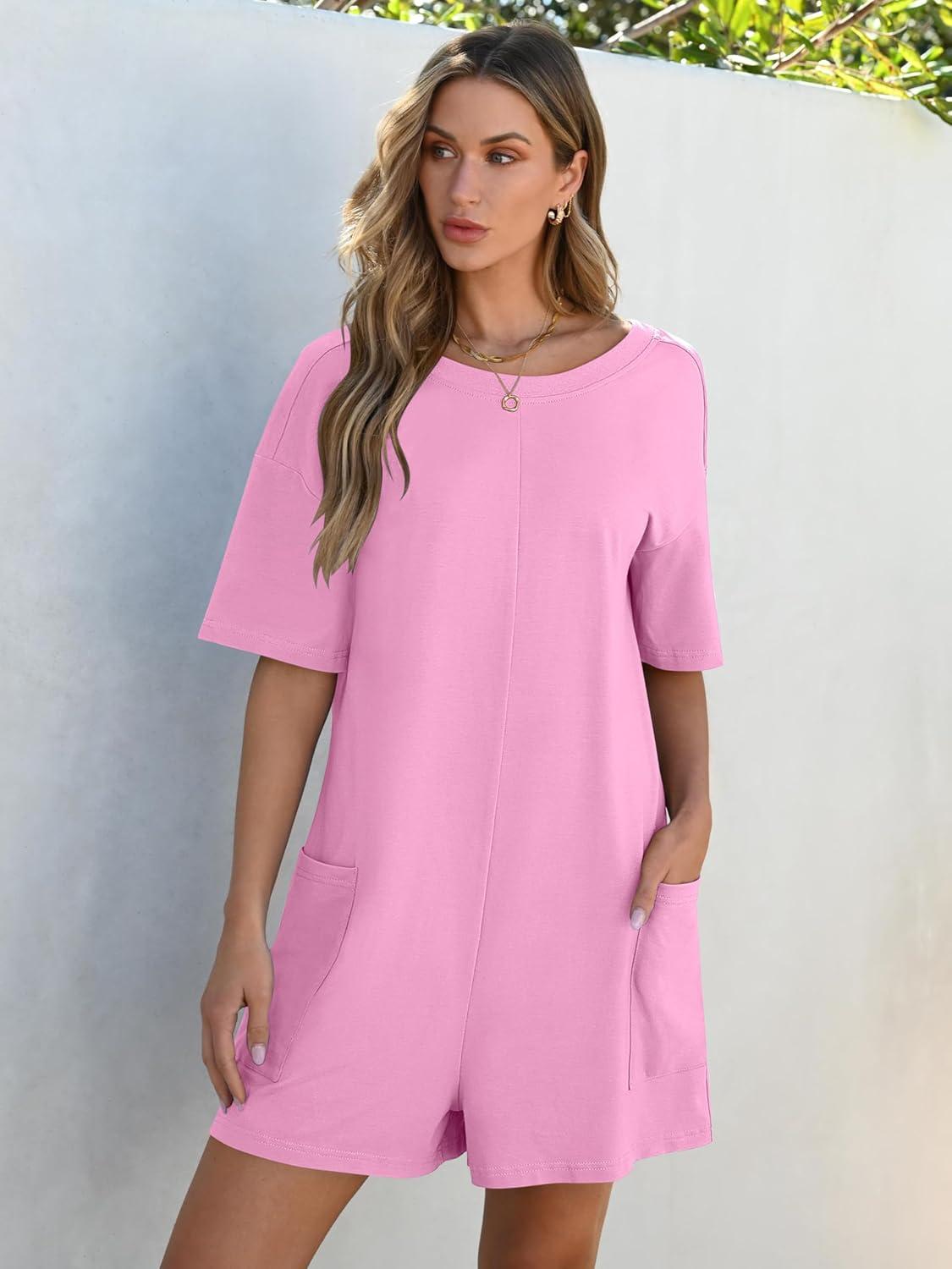 ANRABESS Women Summer Oversized T-Shirt Tee Romper Casual Baggy Short Sleeve Overall Athletic Workout Jumpsuit Trendy Outfits(Light Pink)