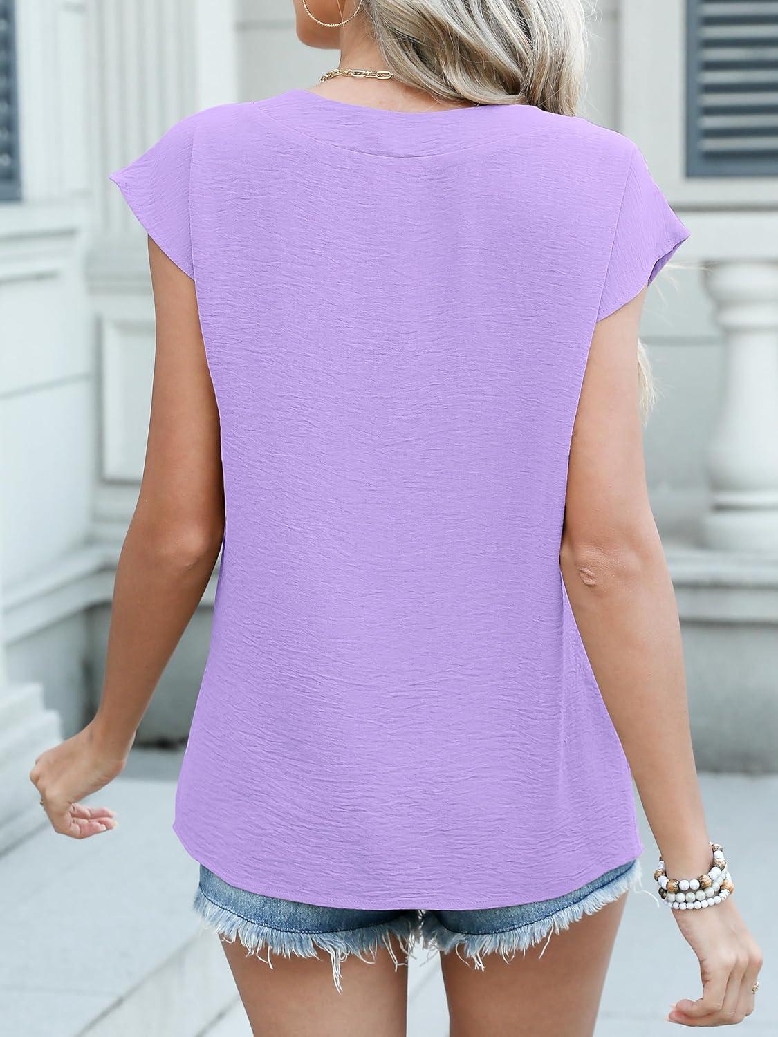 ANRABESS Women Tops Cap Sleeve Textured Dressy Casual V Neck Shirts 2025 Summer Business Work Blouses Outfits(Light Purple)
