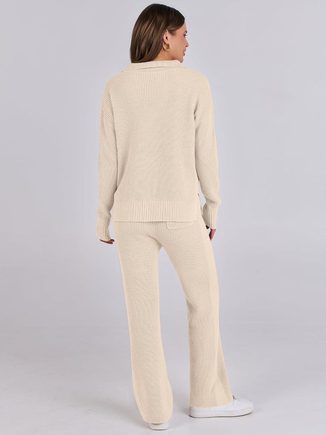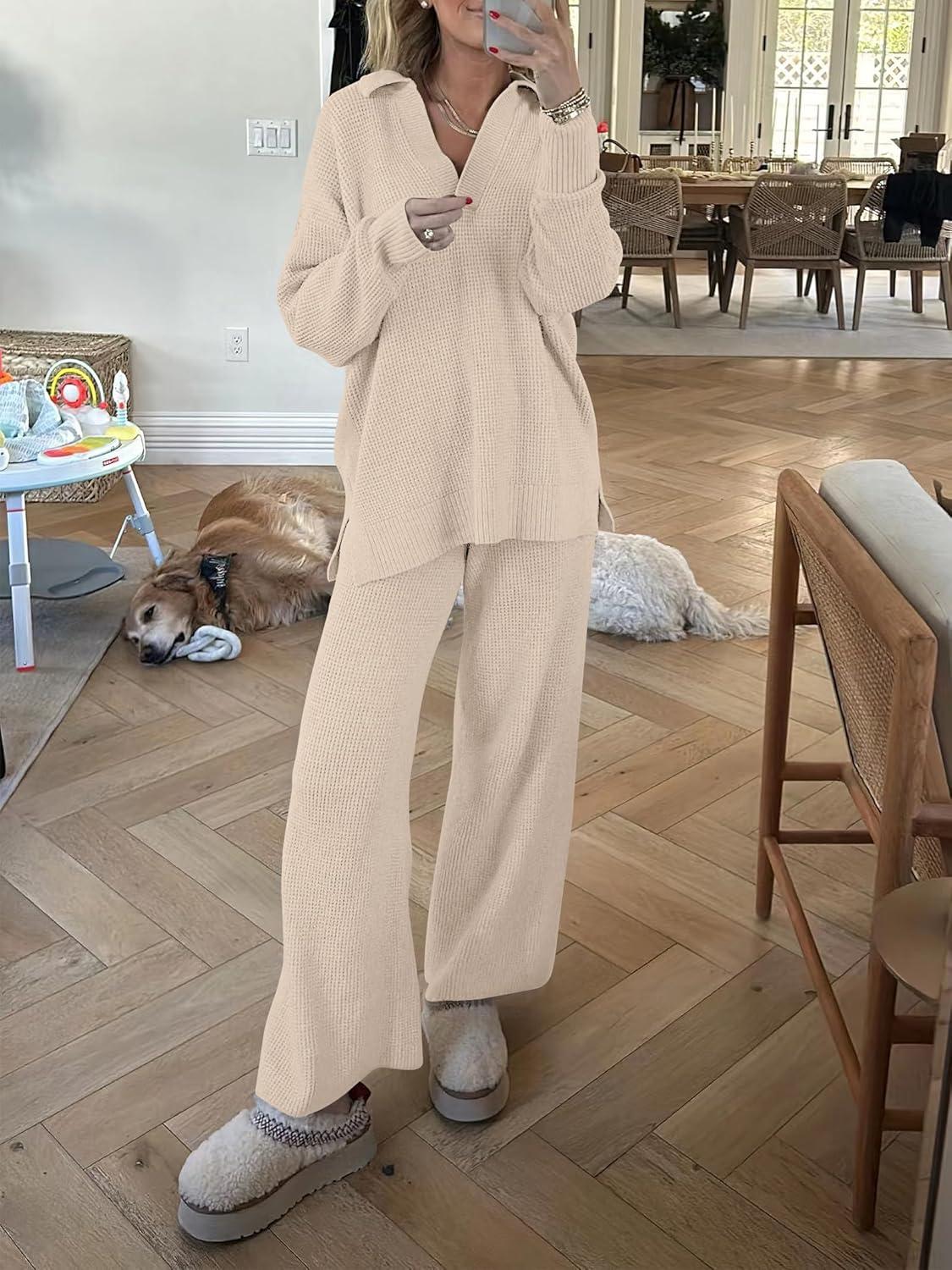 Be the first to review “ANRABESS Women Two Piece Outfits Sweater Sets Lounge Waffle Knit Pullover Matching Wide Leg Pants Tracksuit 2025 Fall Fashion(Apricot)”