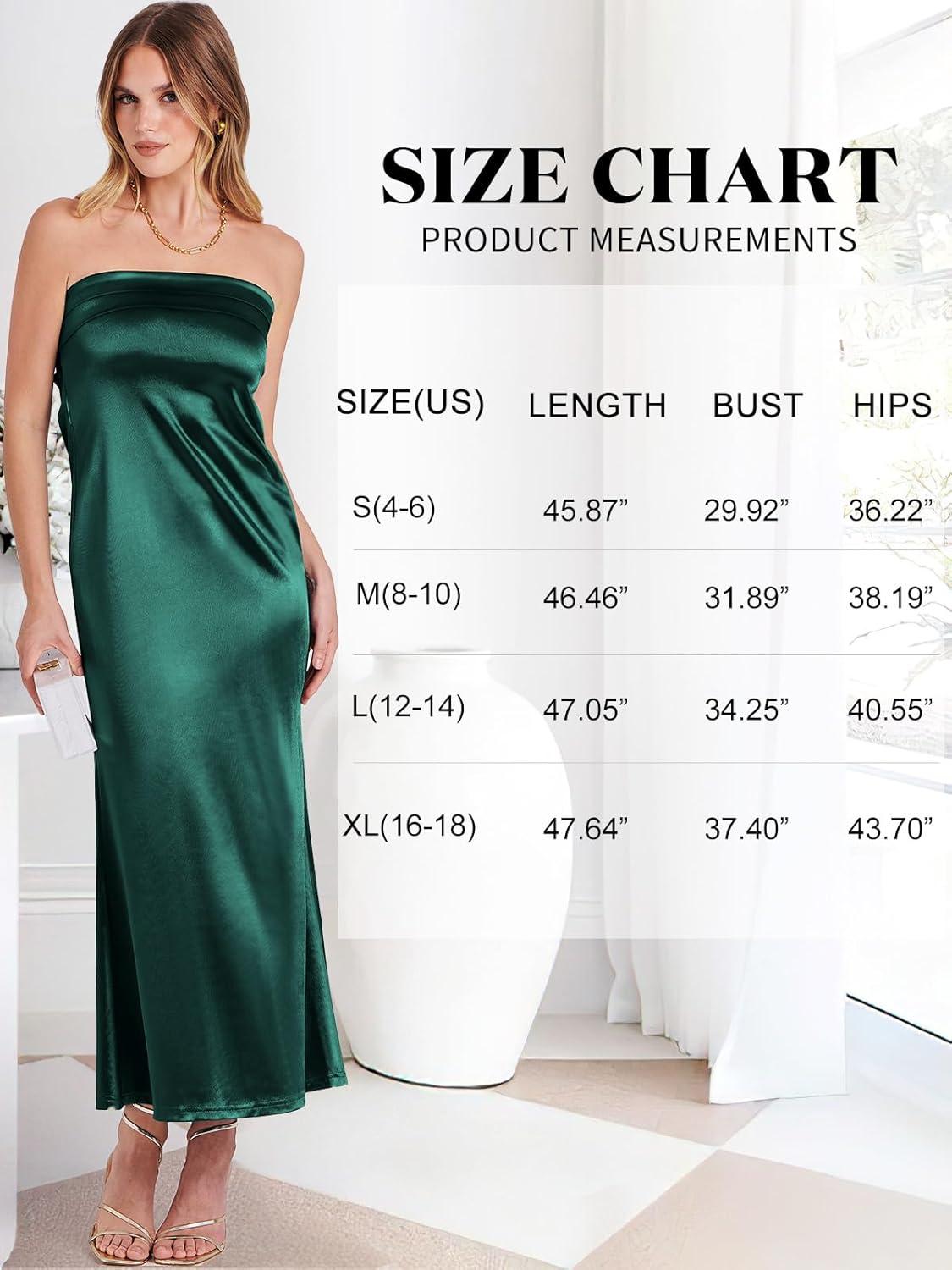 ANRABESS Women Wedding Guest Maxi Dress Strapless Satin Tube Bodycon Backless Cocktail Formal Dresses 2025 Fall(Deep Green)