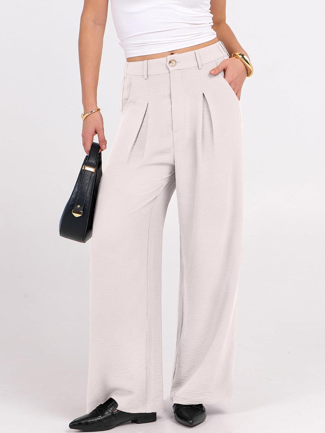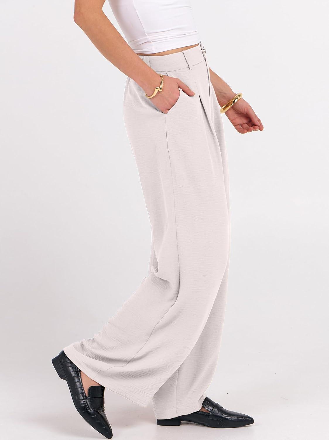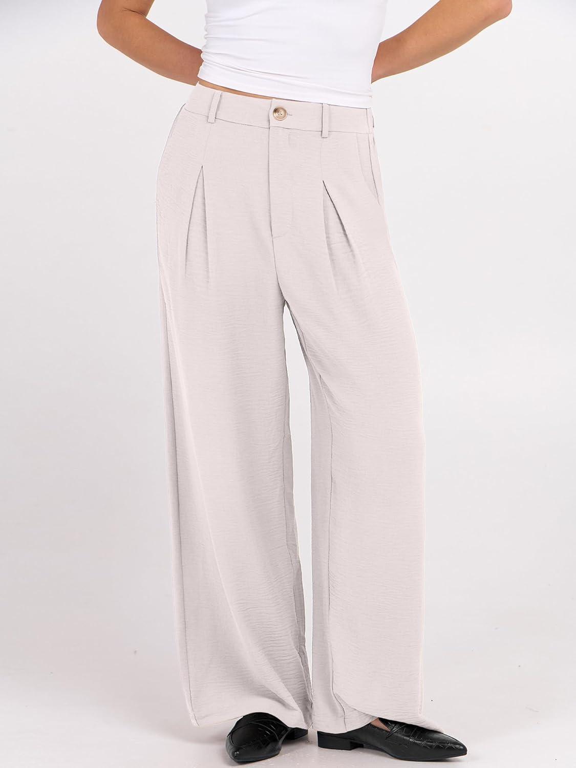 ANRABESS Women Wide Leg Dress Pants Lightweight High Waisted Business Casual Trousers Dressy Office Work Palazzo Pants Slacks(Beige)