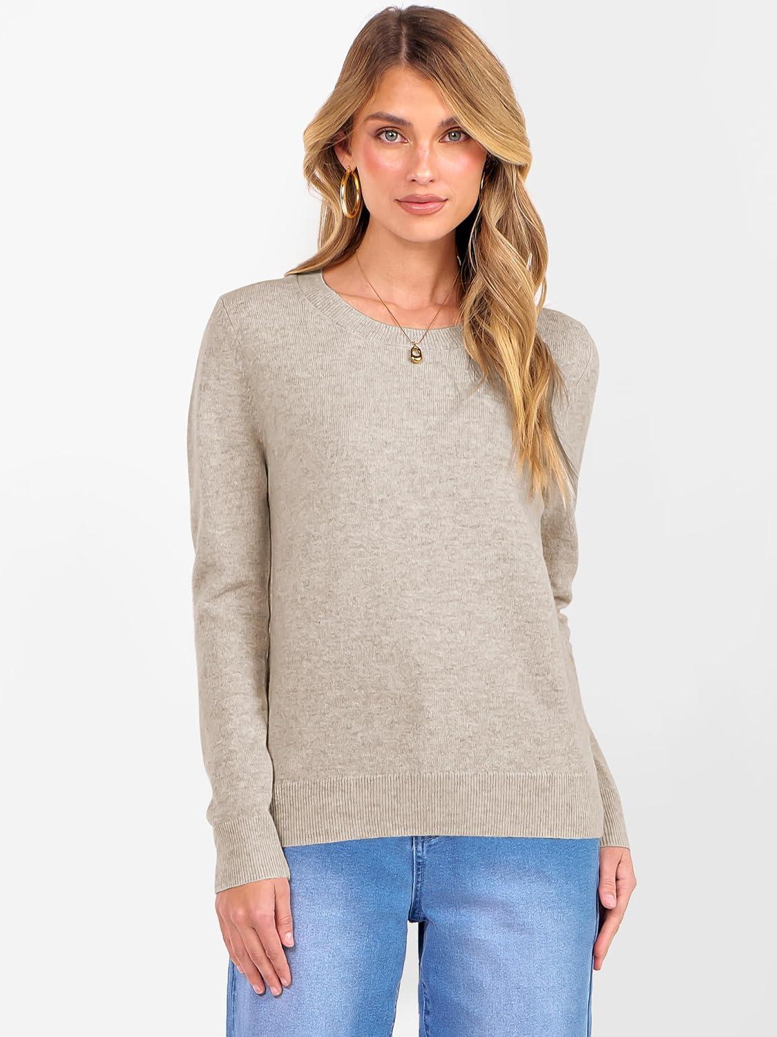 ANRABESS Womens 100% Wool Sweaters Crewneck Long Sleeve Work Business Casual Basic Sweater Tops 2025 Fall Outfits(Apricot)