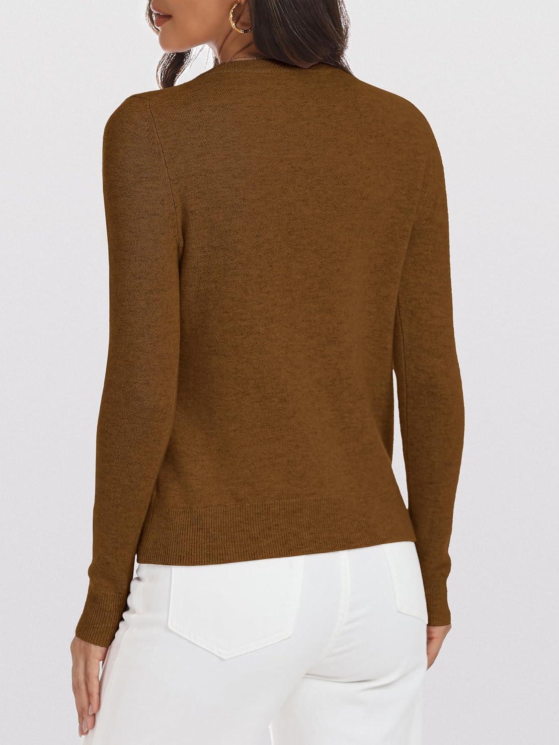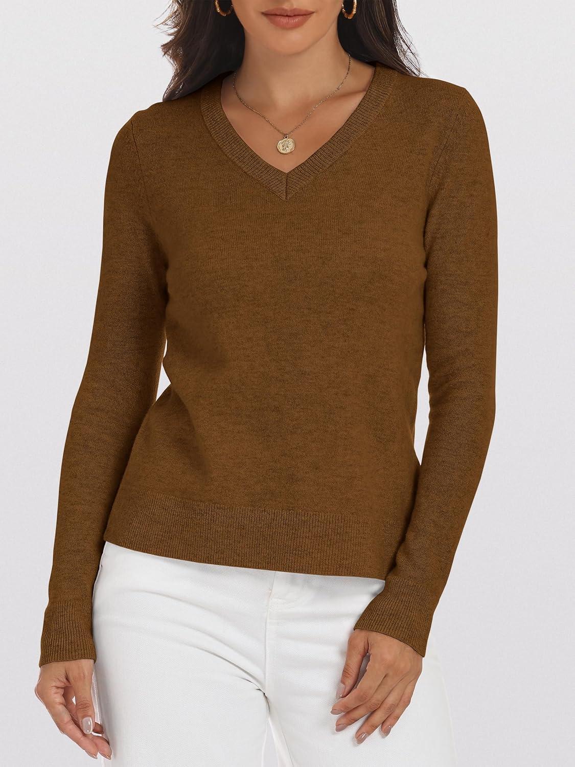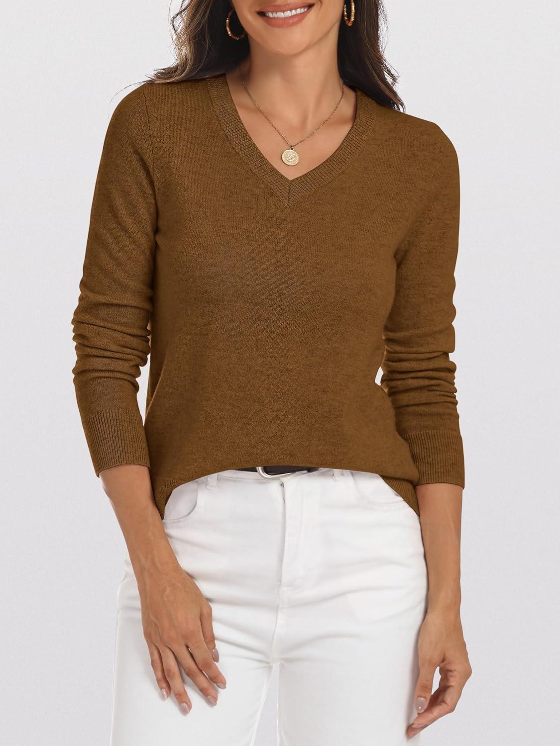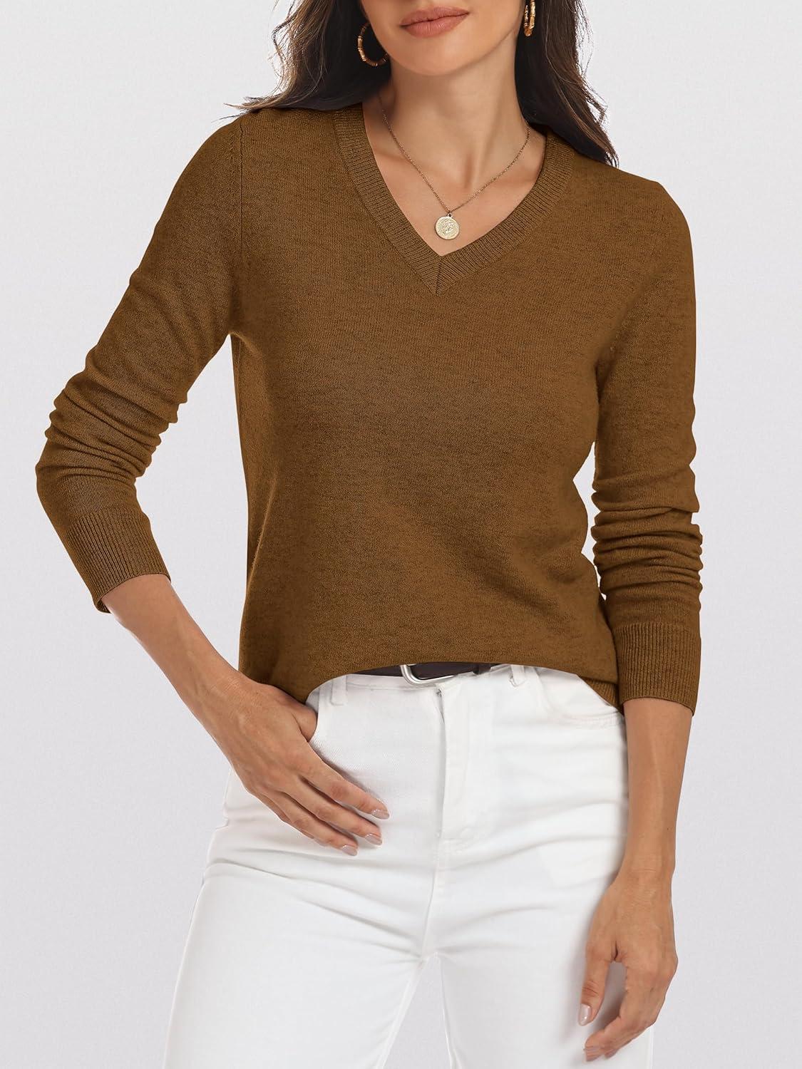 ANRABESS Womens 100% Wool Sweaters V Neck Long Sleeve Work Business Casual Basic Pullover Sweater Tops 2025 Fall Outfits(Caramel)
