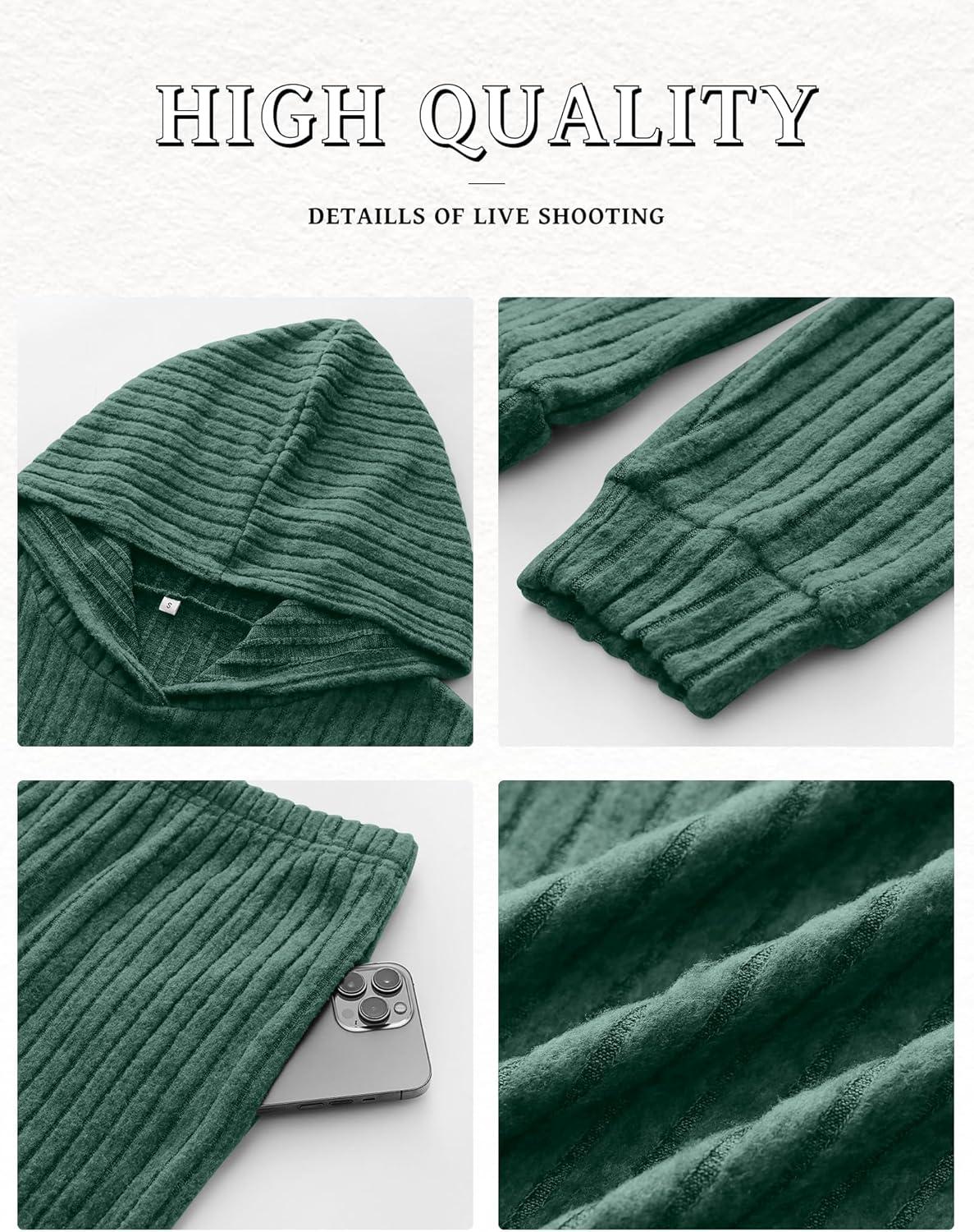 ANRABESS Women’s 2 Piece Lounge Pajama Sets Ribbed Knit Long Sleeve Hoodies Tops Matching Pants Casual Fall Sleepwear Outfits(Green)