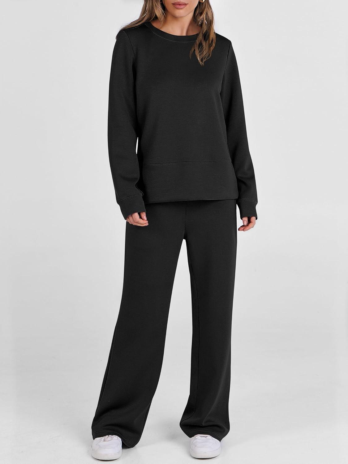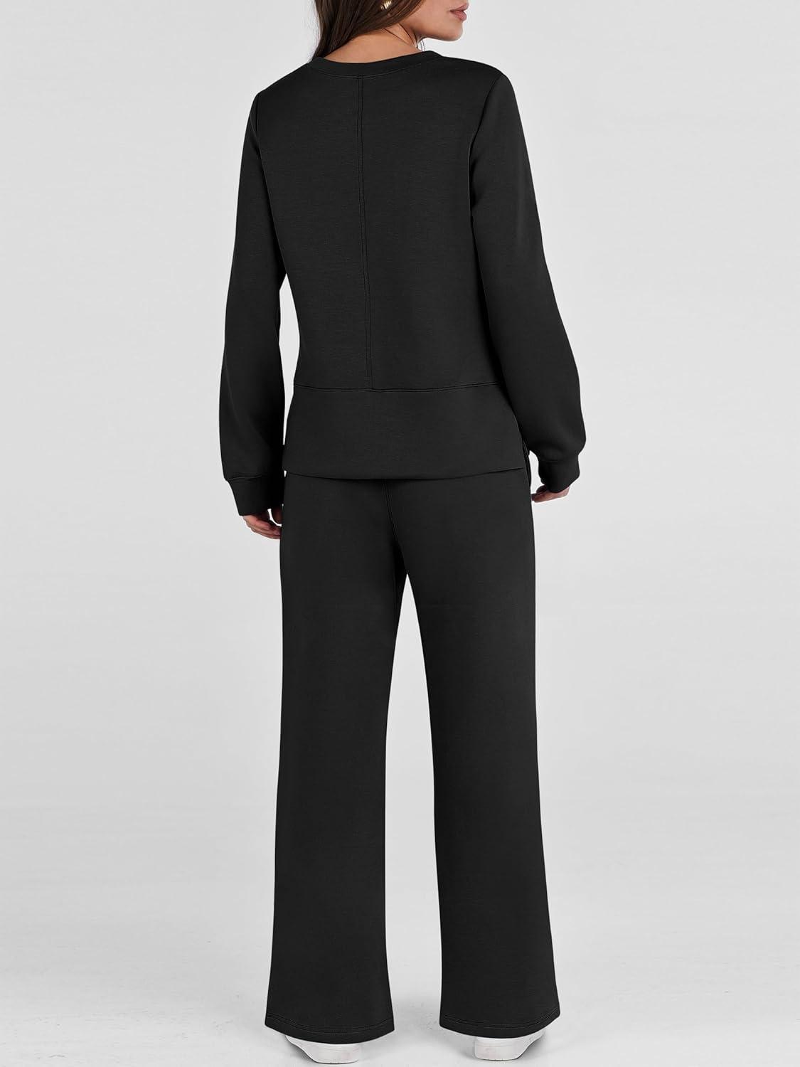 ANRABESS Women’s 2 Piece Lounge Sets Casual Travel Outfits Wide Leg Tracksuit Sweatsuits Matching Set 2025 Fall Clothes(Black)