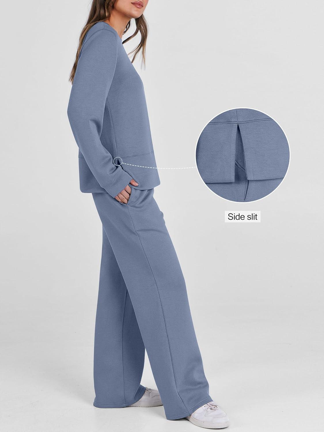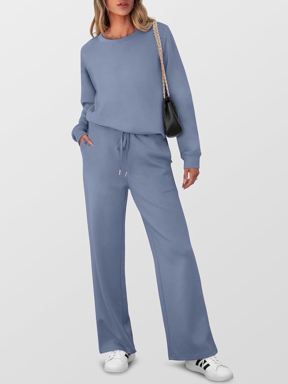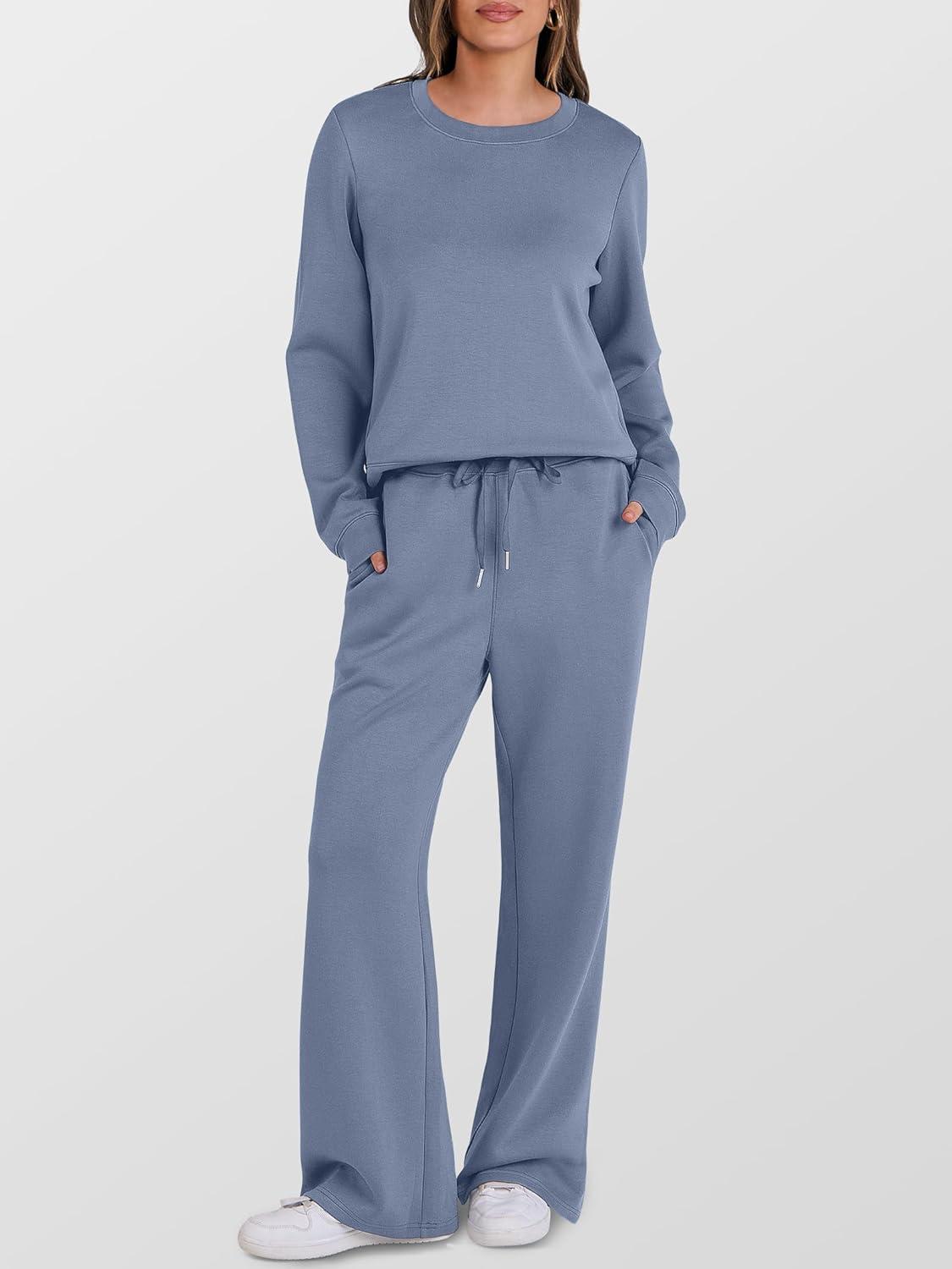 ANRABESS Women’s 2 Piece Lounge Sets Casual Travel Outfits Wide Leg Tracksuit Sweatsuits Matching Set 2025 Fall Clothes(Blue)