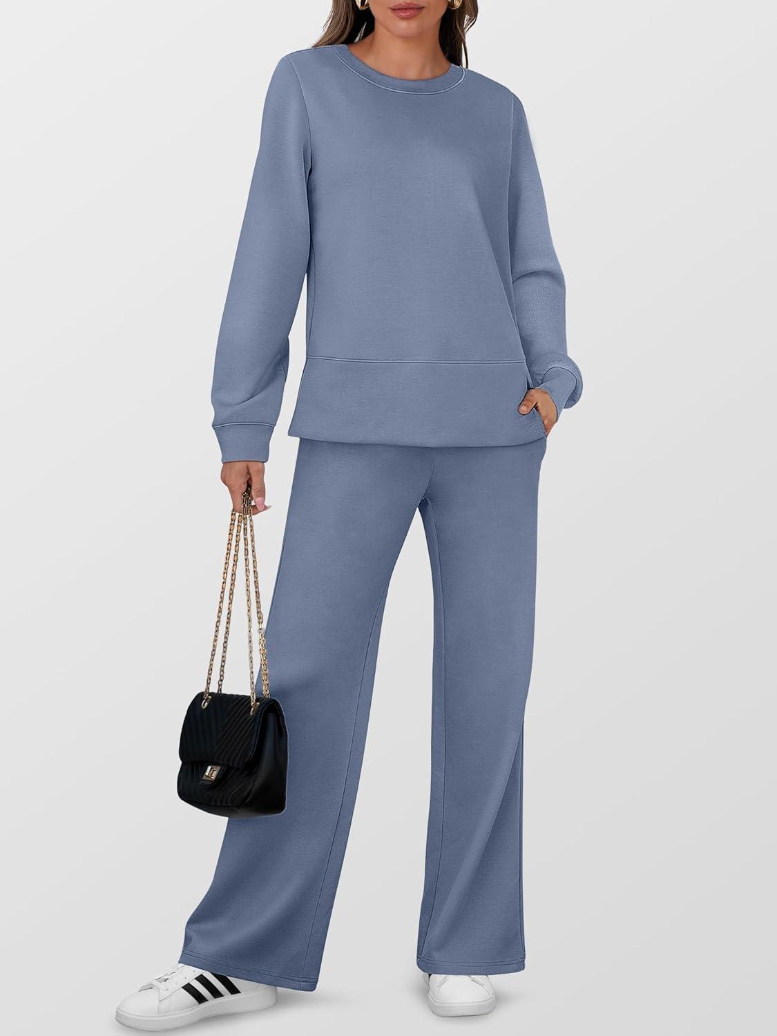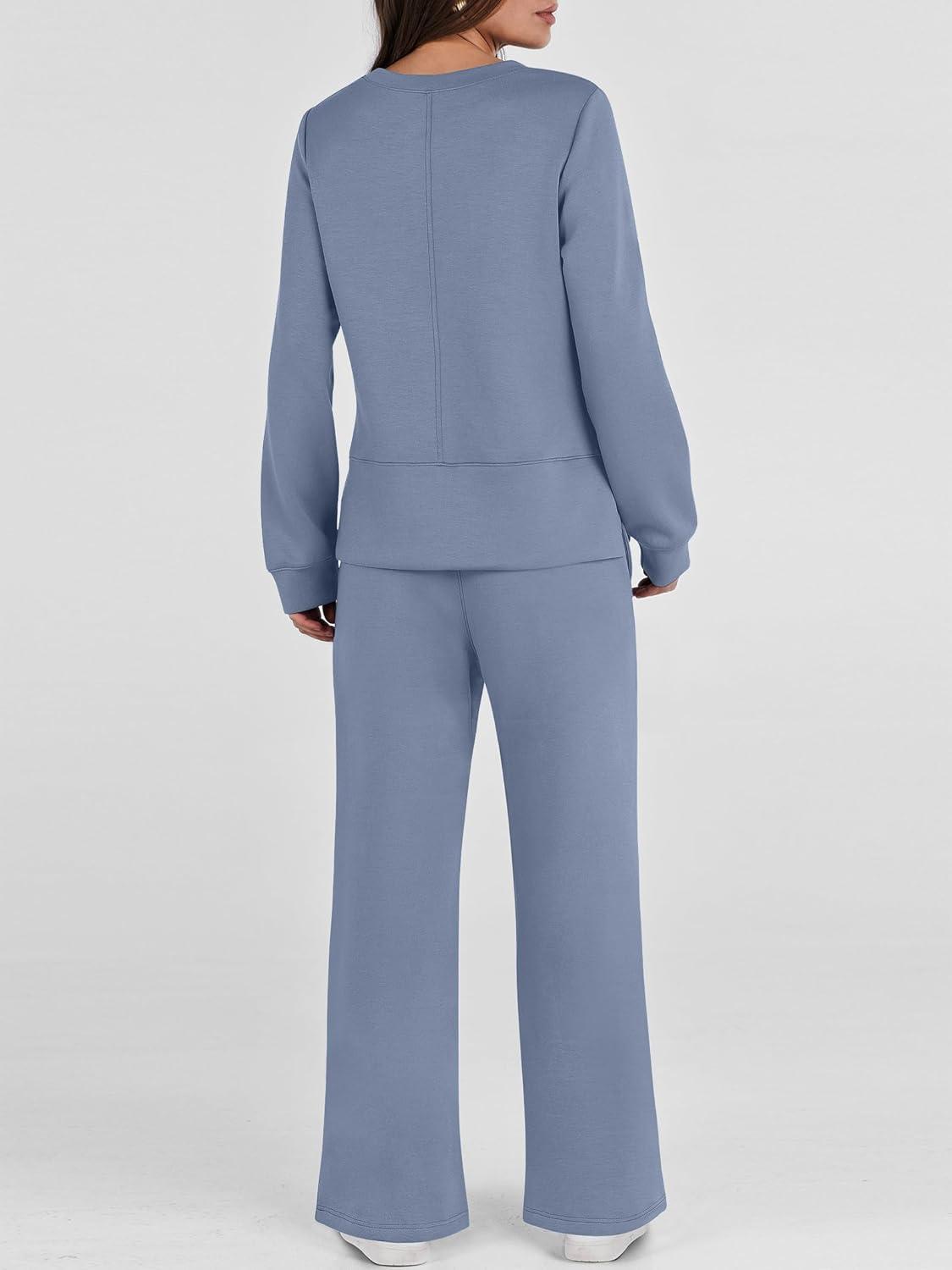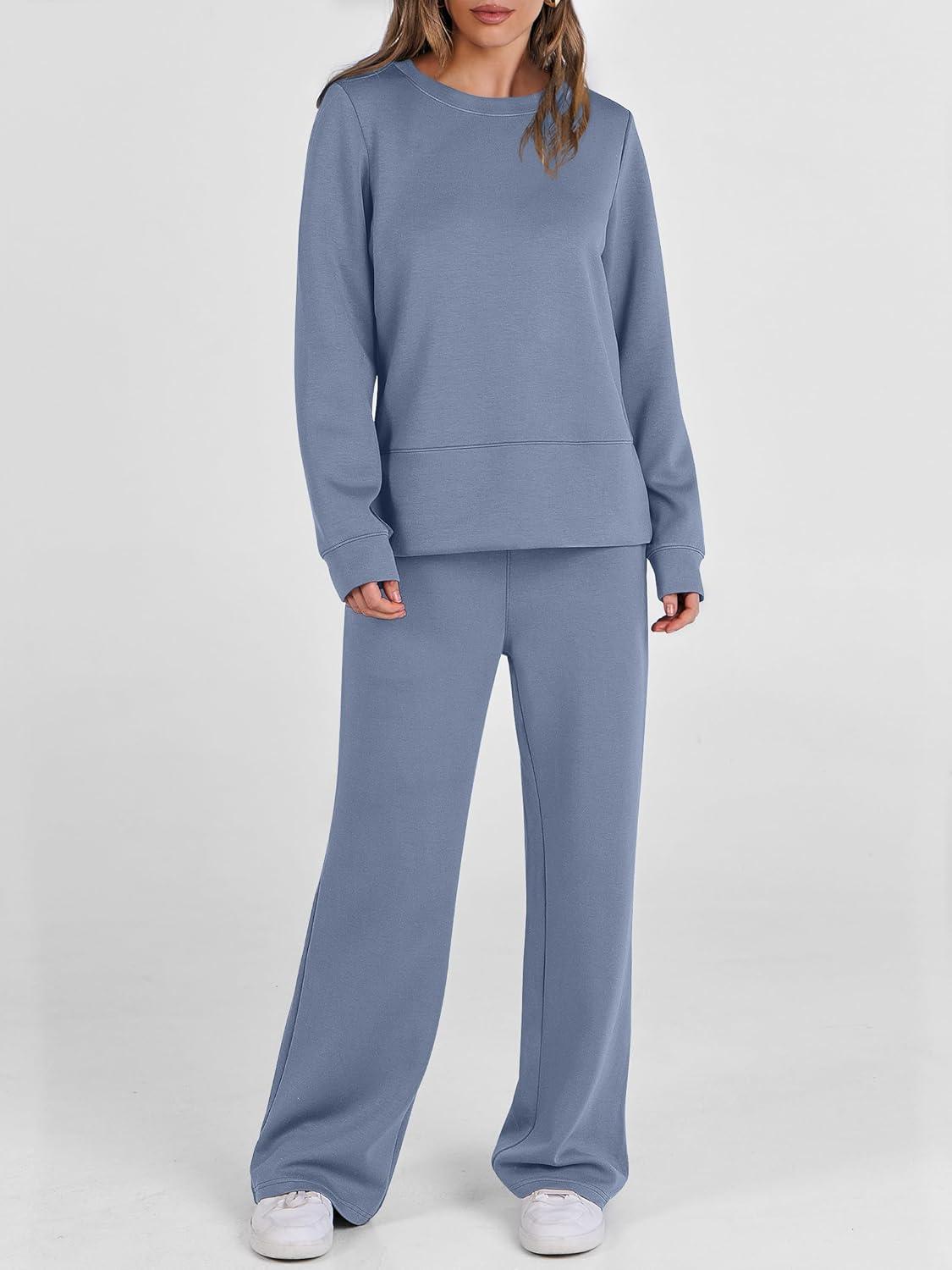 ANRABESS Women’s 2 Piece Lounge Sets Casual Travel Outfits Wide Leg Tracksuit Sweatsuits Matching Set 2025 Fall Clothes(Blue)