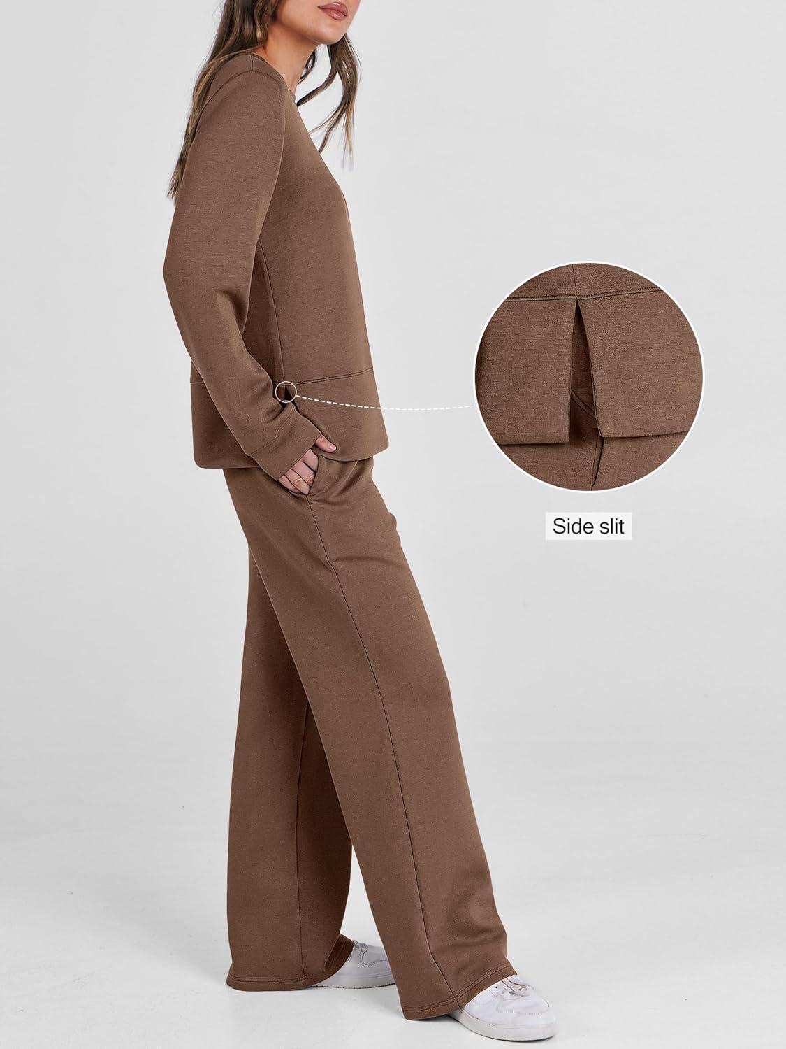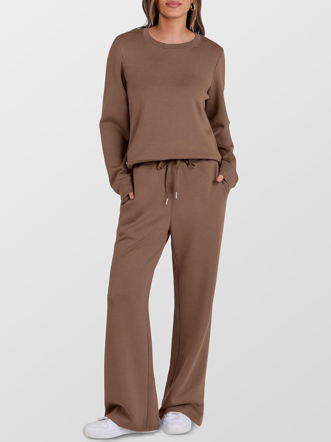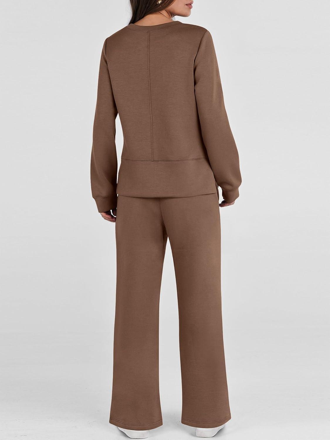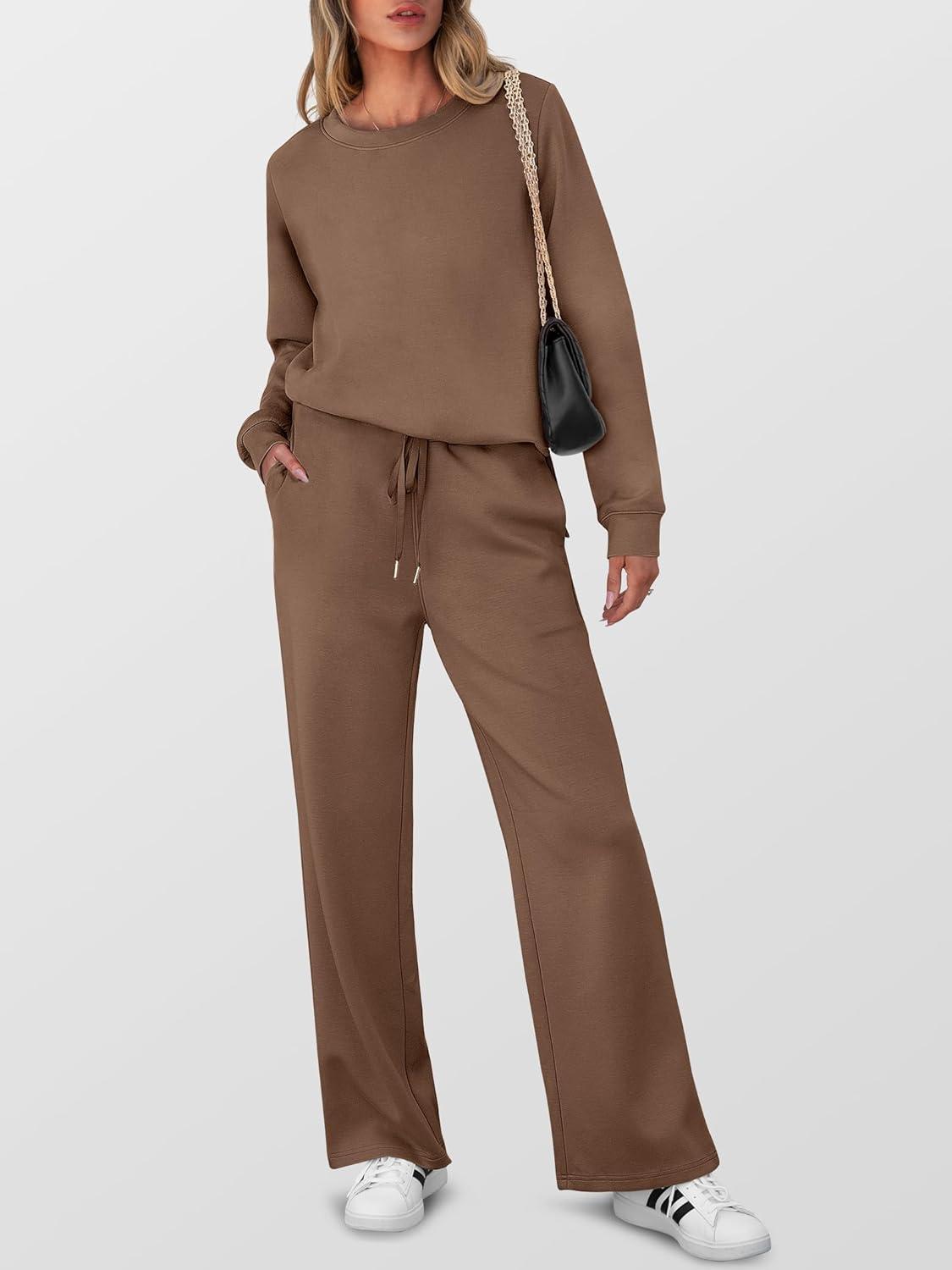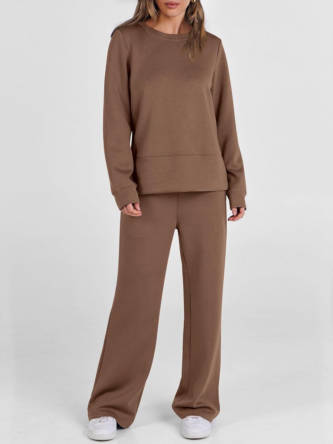 ANRABESS Women’s 2 Piece Lounge Sets Casual Travel Outfits Wide Leg Tracksuit Sweatsuits Matching Set 2025 Fall Clothes(Brown)